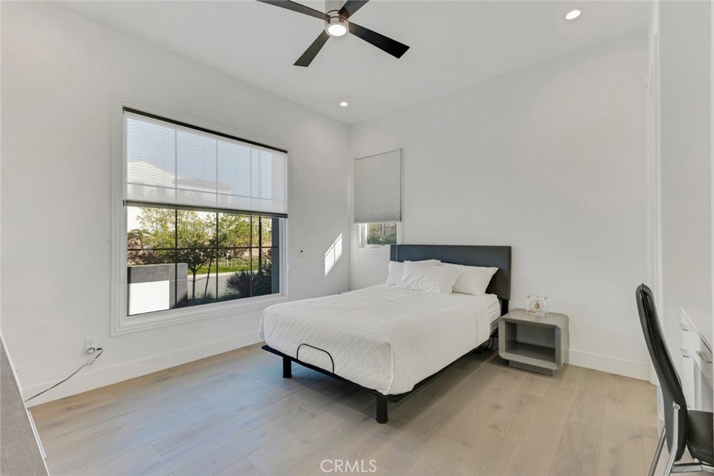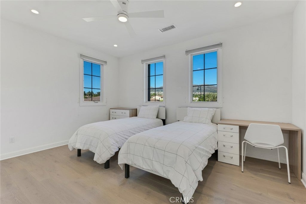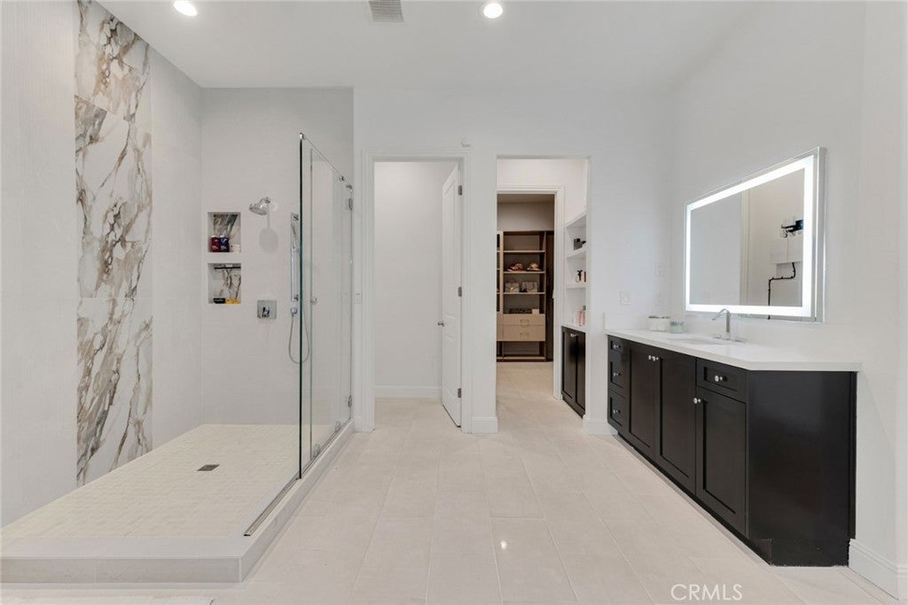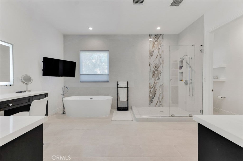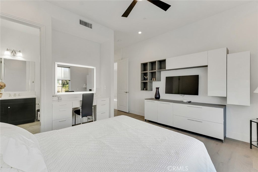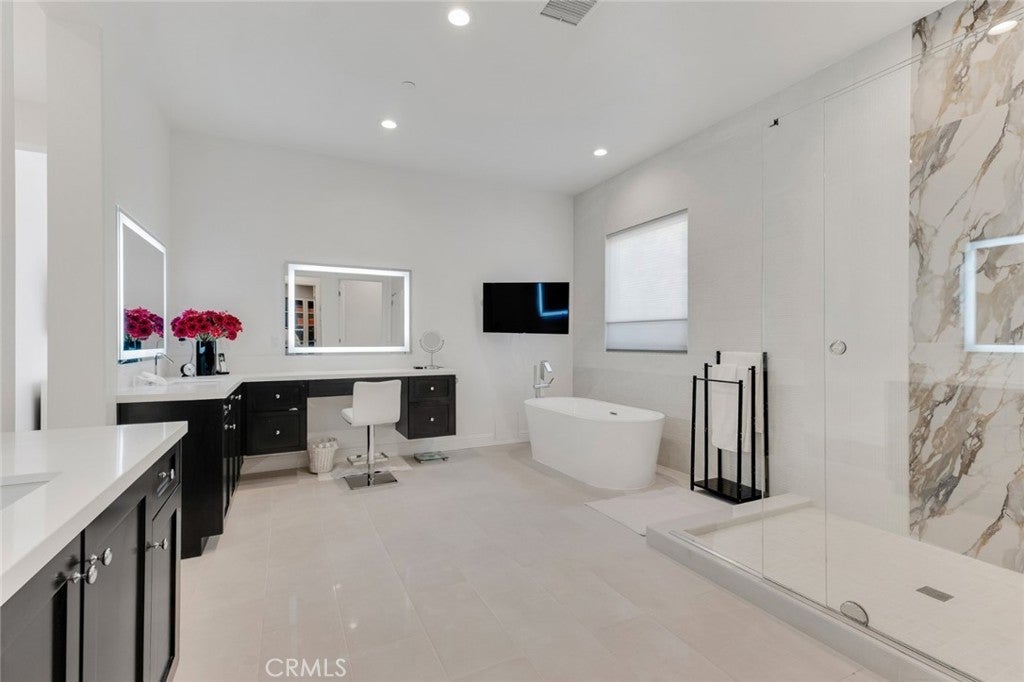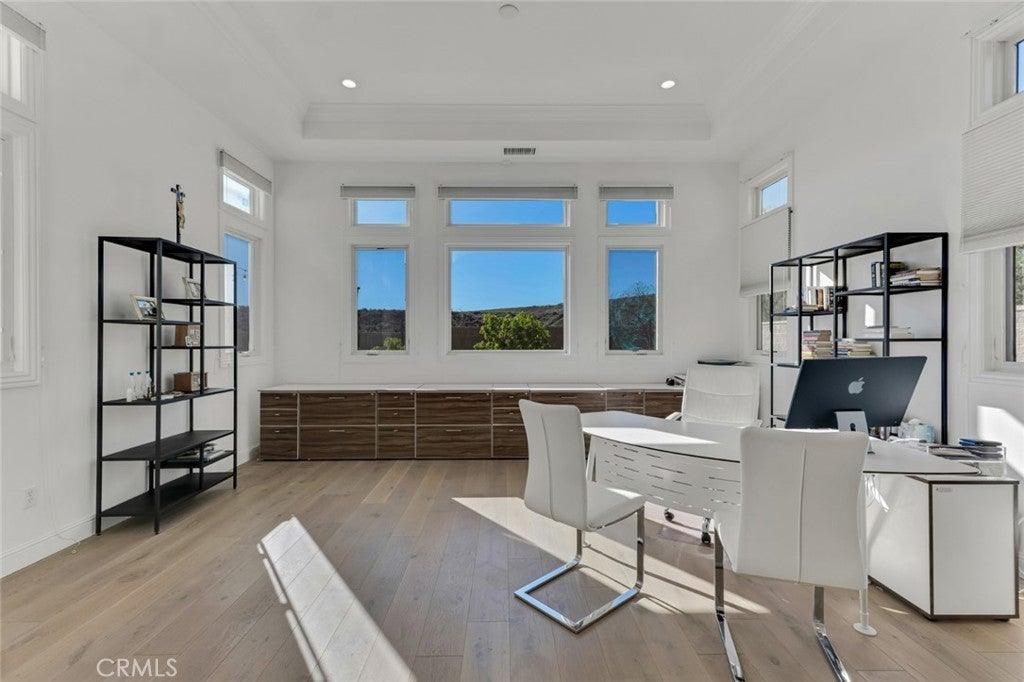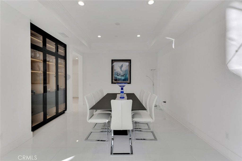 Set within the prestigious gated community of Canyon Oaks in Chatsworth, this stately contemporary estate offers approximately 5,587 square feet of refined living on an expansive lot, partially comprised of protected natural lands, with sweeping views. Designed to impress, the home delivers a clean, modern aesthetic highlighted by soaring ceilings, abundant natural light, recessed lighting throughout, and an open, flowing floorplan ideal for both everyday living and entertaining on a grand scale. A dramatic two-story formal entry leads to an awe-inspiring living room with clerestory windows, custom built-ins, and oversized sliding glass doors that dissolve the boundary between indoors and out. The showpiece kitchen features a striking black-and-white palette, white Corian countertops, automatic blinds, commercial-grade six-burner range with grill, Sub-Zero refrigerator, double ovens, walk-in pantry, and an enormous center island, leading seamlessly to the informal dining area and wet bar, all positioned to capture stunning views. A formal dining room with tray ceiling and built-in buffet adds elegance and storage space. The downstairs primary suite is a luxurious retreat with tray ceiling, crown molding, spa-caliber en-suite bath complete with double sinks, a vanity area, soaking tub, oversized multi-head shower, and expansive walk-in closet. Additional highlights include a downstairs en-suite guest bedroom, a stylish home office with glass barn door, dedicated laundry room, and convenient powder bath. A sweeping curved staircase leads to a spacious loft with wet bar and wine fridge overlooking the living space below. Upstairs, three additional en-suite bedrooms provide comfort and privacy. Designed for true indoor-outdoor living, the Arizona room and patios feature stone tile flooring, fireplace, ceiling fans, built-in seating, outdoor kitchen, water feature, grassy areas, and fruit trees, creating a resort-inspired space for you to enjoy. Additional features include Solar, multi-zone air conditioning, and high-end finishes throughout. Well situated near shopping, dining, entertainment, including the Vinyard, and major transportation thoroughfares. Don’t miss this exceptional offering in one of Chatsworth’s most exclusive​​‌​​​​‌​​‌‌​​‌​​​‌‌​​​​​​‌‌​‌‌​​‌​​​‌‌​ enclaves.