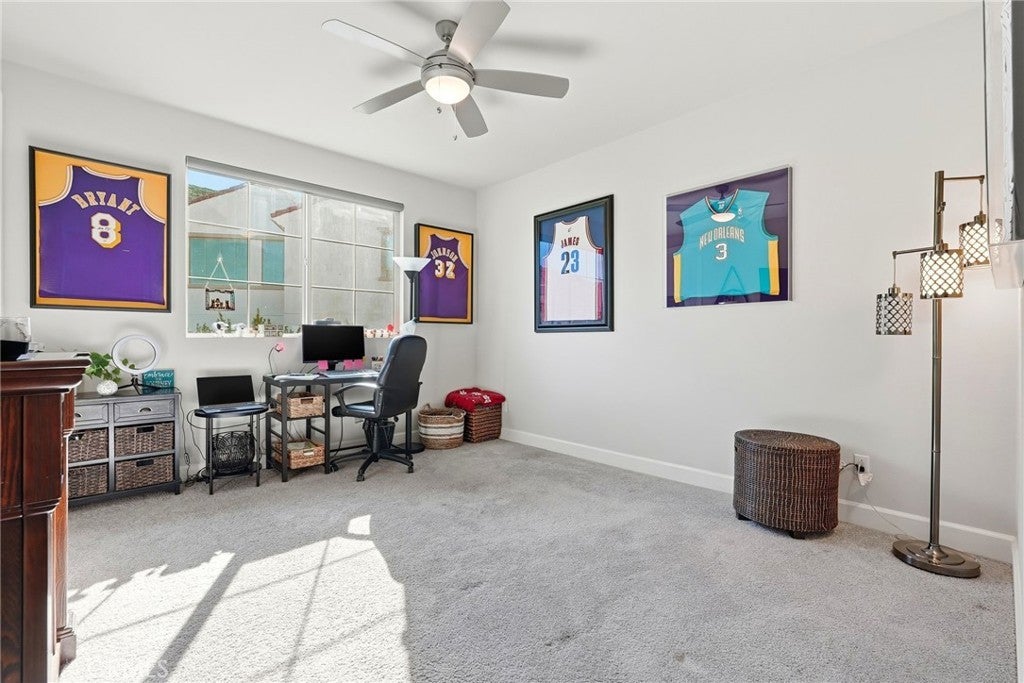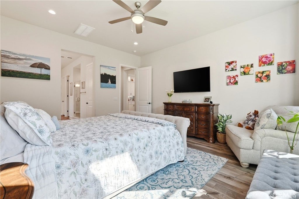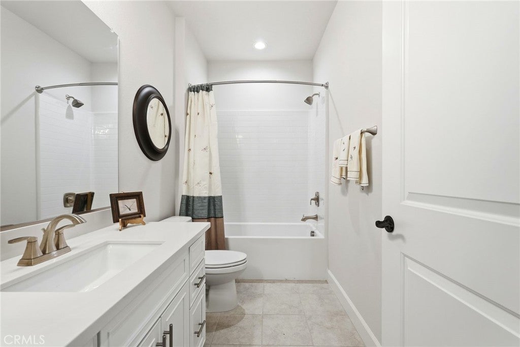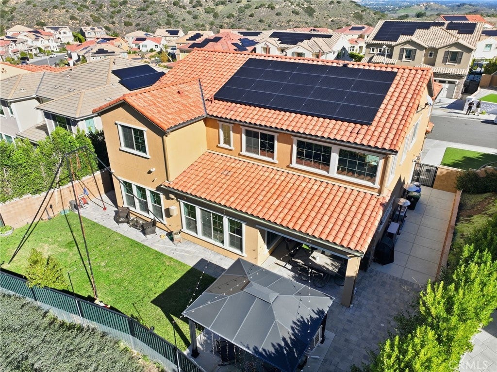 Proud to present this stunning newer construction 5-bedroom, 5.5-bathroom residence located in the highly sought-after Sterling of West Hills neighborhood. This luxurious home, boasting over 4000 square feet of living space, features an open floor plan, tons of closet/storage space and is located on a serene cul-de-sac. The chef's kitchen is a culinary dream, equipped with a spacious center island, wet bar, wine refrigerator, 6-burner stainless steel stove, walk in butlers pantry, and high-end stainless steel appliances. The primary bedroom, conveniently located on the first floor, offers a spa-like en-suite bathroom with dual sinks, dual closets, a soaking tub, and large step-in shower. The cozy living room near the kitchen has an upgraded built in fireplace. Head upstairs where you will find a spacious loft with panoramic views of the surrounding mountains, four generously sized bedrooms each with a walk-in closet & its own private full bathroom. Also conveniently located upstairs is the laundry room with utility sink. Additional features include a spacious 3-car garage with ample storage space and a 240-volt hookup for electric vehicles. The upgraded solar panels are owned, not leased, helping to keep electricity bills at an all-time low. The expansive backyard features a covered patio, large grass area, fruit trees & gated dog run. This property is located within the award-winning El Camino, Hale, and Pomelo school district, and the neighborhood includes a private park plus a roaming security guard after hours.