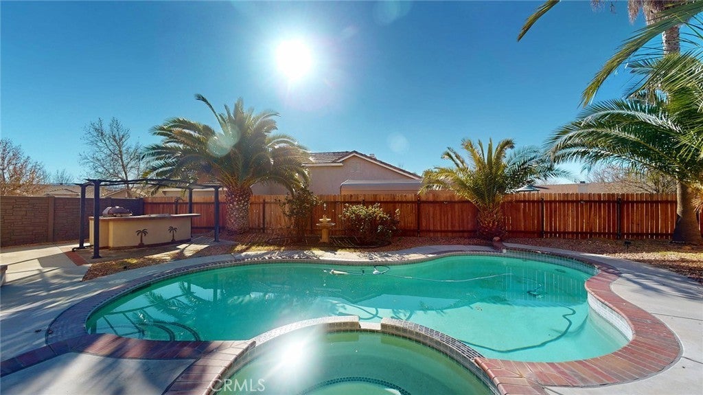 Come check out your new home! This 1.389 sq ft, 3 bedroom, 2 bathroom home sits on a large 7691 lot. The open design creates the feel of a much larger home. Generous Master Bedroom includes an exit to the patio and an updated bathroom with luxury faucet, modern lighting and a glass sink! Hall bath sports a Mediterranean look with updated lighting, cabinet, faucet and beautiful colored glass sink. Ample laundry room with shelves and cabinets. Large back yard with large in-ground pool and spa! Grab an afternoon meal at your built in barbeque! Nearby to elementary school and parks! Welcome home!