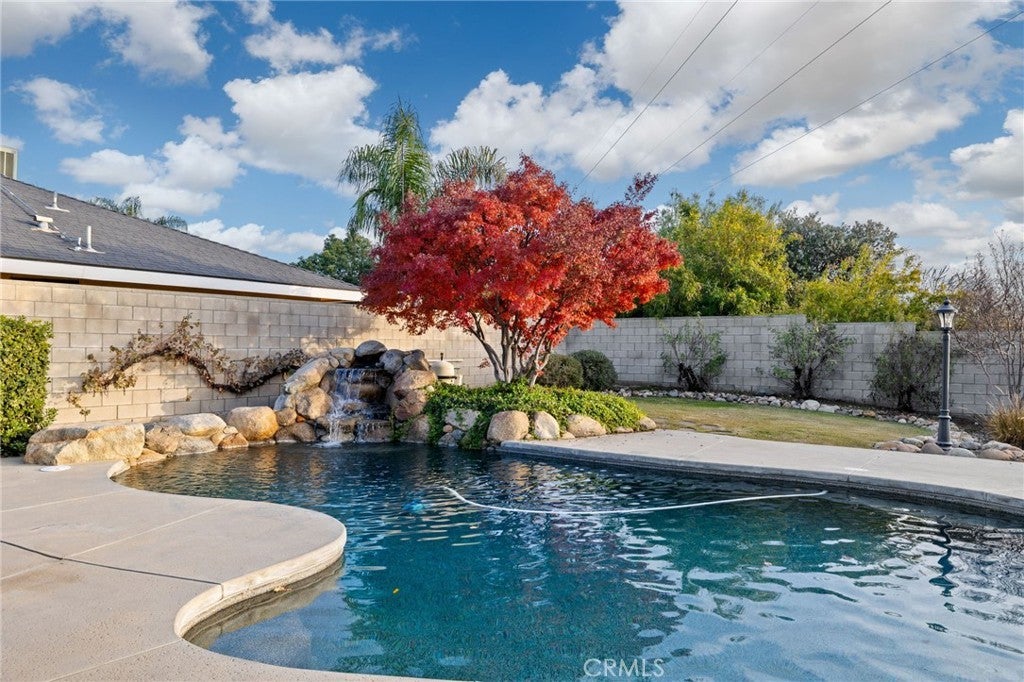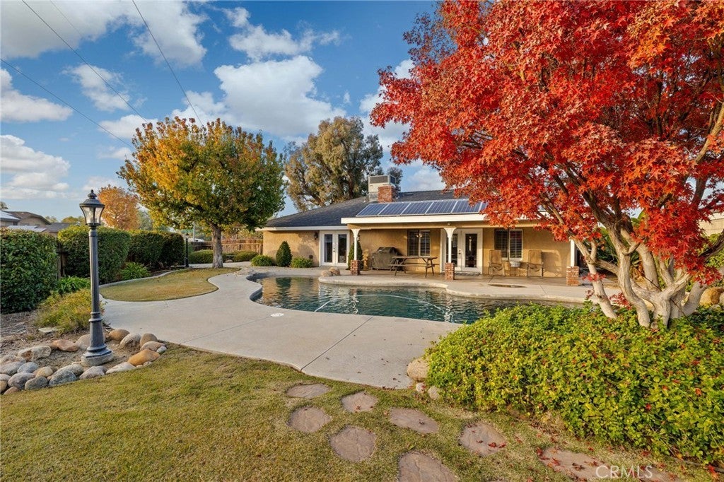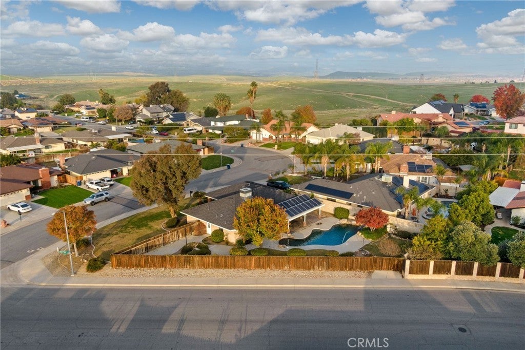 Fully paid solar and a resort-style pool make this home an exceptional find. Situated on a large corner lot, this property offers fully owned solar installed in 2015, a major perk that delivers immediate value and lower utility costs. Inside, hardwood flooring throughout creates a seamless, elevated look, while the living room is anchored by a sleek fireplace, adding warmth and a modern focal point. Plantation shutters in the living room, kitchen, and dining area enhance natural light and privacy. Major system upgrades include a new roof and HVAC installed in 2013, providing added confidence and comfort. Step outside to your private backyard retreat featuring a Pebble Tech pool with beach entry and waterfall, designed for both entertaining and everyday enjoyment. The large covered patio spaces extends the living area outdoors offering year-round use. Two sides of the backyard have block walls for durability and added privacy. Seller states home is closer to 1700 sqft. This home is truly move-in ready!