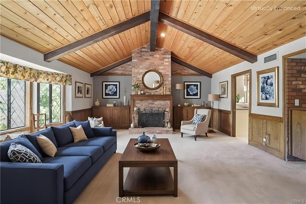 An absolutely stunning 4050 square foot estate, nestled on a large lush half acre lot, at the end of a quiet cul-de-sac in the highly covenant Roy Rogers estates. Home has 9 expansive rooms including a small wine cellar. This timeless storybook Tudor Revival is tucked into the Chatsworth foothills, close to award-winning schools, popular restaurants, entertainment and shopping. Minutes to 118 freeway. This tranquil Oasis was built with architectural elegance and craftsmanship on a scale that simply cannot be replicated today. With 4 bedrooms and 5 bathrooms, soaring ceilings and rich architectural design, this warm home is perfect for raising a family and entertaining guests alike. Large, upgraded chef’s kitchen with lots of windows and natural light, features top of the line newer appliances and a family eating area. A step away is a beautiful formal dining room with beam ceilings and attached wet bar that leads into a huge cozy family room, with a commanding stone fireplace and vaulted wood ceilings. Step down from here into your formal living room with balcony and marble fireplace, ideal for any gathering. Across the hall is a wood panel, beamed ceiling parlor, perfect for your pool table or grand piano. Primary bedroom is oversized with a private balcony, large closet and dressing area. Located in this primary suite is a spa style bathroom, it is spacious and open with his and her sinks, soaking tub and large glass shower. Across the hall from the primary bedroom is another spacious bedroom that opens to the backyard and spa, through sliding French Doors. Also features a large closet and full bath. The third bedroom is light and bright with a full bath. Fourth bedroom has its own private staircase, a large living area with walk-in closets and three-quarter bath. It is a versatile room and can be used for whatever your heart desires. Use your imagination! This home is thoughtfully laid out on a 1 story design with the loft. There is a 3-car garage, 2 patios, large grass area, and an amazing private spa. The yard is lush and mature with lots of trees and a viewing deck that has unobstructed 180 degree views of the valley and beyond. This unique estate is One-of-a-Kind, Country Charm and Classic Elegance. Book your private showing, this is a must see.