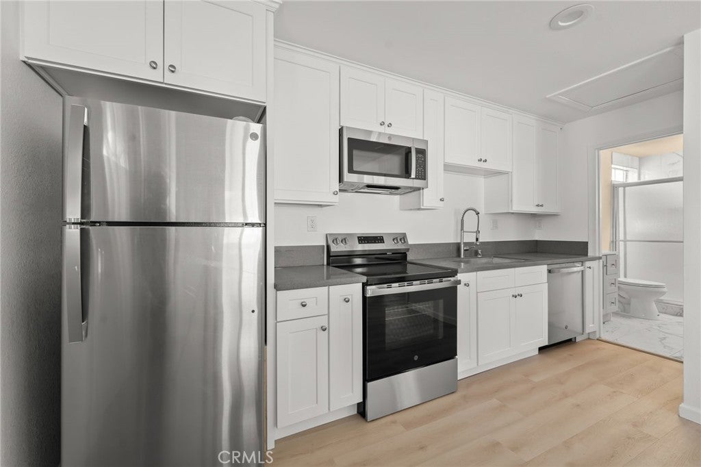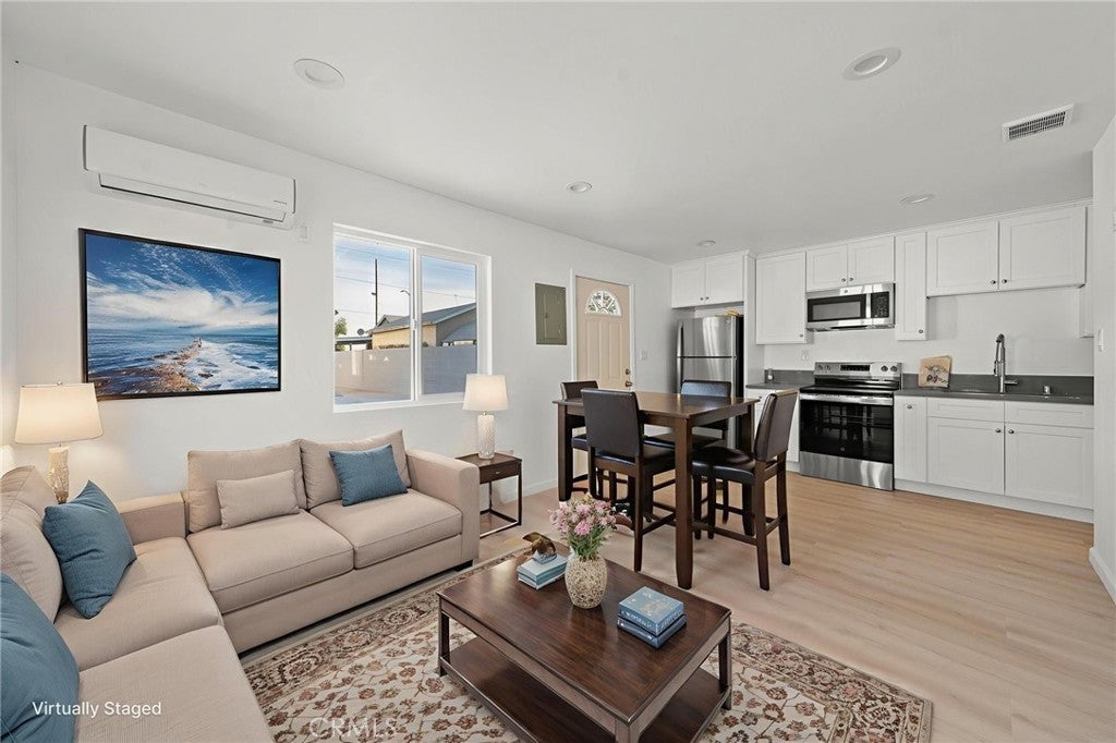 Beautifully upgraded for over 2400 sq ft including detached ADU SF home featuring 2 addresses: 13533 with 5 bedrooms /4.5 bathrooms; and 13535 1bedroom/1 bathroom designed for modern and multi-generational living. The open kitchen offers a quartz island with breakfast bar, brand-new cabinetry, large-format quartz backsplash, and new appliances including gas range, microwave hood, dishwasher, disposal, and new roof. Dedicated laundry room with new washer/dryer, folding space, and walk-in pantry. Living room includes wide-screen TV and furniture. All bathrooms feature tiled walk-in showers, quartz slab finishes, designer glass doors, modern vanities, and mirrors. New central A/C and heating, luxury vinyl flooring throughout, and white plantation shutters. Spacious primary suite with walk-in closet and private bath. Adjacent bedroom with its own bath ideal for in-law suite or future JADU. Landscaped front yard with covered entry porch, gated parking for multiple vehicles, circular driveway access, and outdoor entertaining area. Garage converted to a new detached ADU with bedroom, bath, full kitchen, new appliances, stackable washer/dryer, and mini-split A/C. Potential for additional ADU or unit under CA SB 9 (buyer to verify). Convenient access to the 5 Freeway, schools, shopping, and dining.