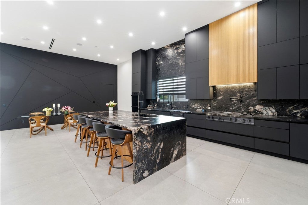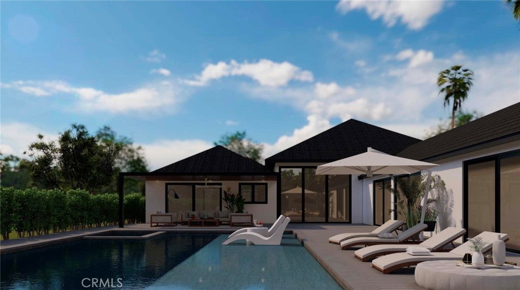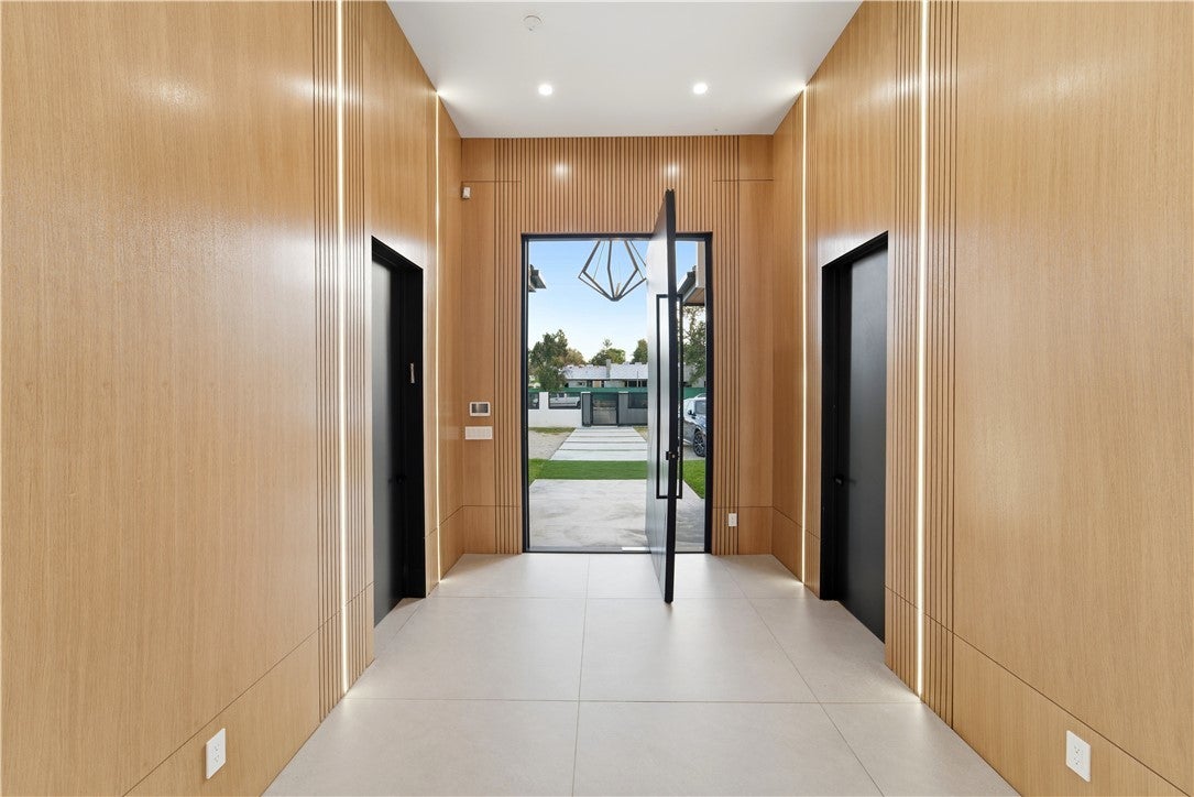 Unveiling a remarkable single story compound estate nestled in Woodland Hills’ coveted Walnut Acres enclave. On a 21,000 SF lot, this 5,000 SF home includes 5 bedrooms all loaded with en suite bathrooms and ample sized closets. Setback far from the street and behind a double gate entry is a massive parking area for up to 9 cars and future improvements will be made for a portion of the driveway to be covered from above. As shown in the renders, this house is on its way to completion and will include a dream entertainers yard- the heated pool and spa is in. Next up will be a half sports court with a net, a luxurious outdoor pavilion, and a fire pit with integrated seating. The pavilion will include a full outdoor kitchen, fireplace and lots of seating area. Inside of the home, a giant pivot door opens up to 13 foot high ceilings, lined by custom panel walls complimented with LED lighting, and natural porcelain floors. This is a fully integrated Control4 smart home with camera, lighting, surround sound, and AC control all from your phone and 2 built in tablets. The home includes a theatre room, giant walk in pantry, laundry room, an additional powder bathroom room for guests, wine wall, and so much more. The master bedroom has direct access to the dream yard and the Jr master also has access to the outdoors. This floorpan is perfectly situated for big families and every bedroom has significant space in between each other. Located minutes from award-winning El Camino Charter High School, the Topanga Mall and The Village, and the premier boutiques and dining along Ventura Boulevard. Modern sophistication and unmatched convenience in one of Woodland Hills' most sought-after neighborhoods.