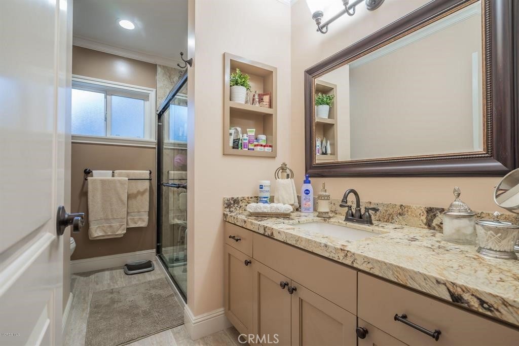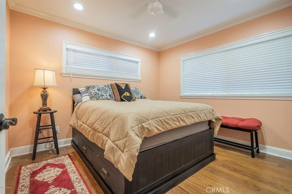 Tucked into a highly desirable and central location, this inviting residence offers both comfort and convenience, with easy access to the 118 and 405 freeways and just minutes from Knollwood Country Club, Porter Valley Country Club, and the Vineyards upscale shopping and entertainment at Porter Ranch. From the moment you step inside, the home reveals a thoughtfully updated interior that blends timeless charm with modern finishes. Engineered wood flooring flow throughout, complemented by smooth ceilings, recessed lighting, and ceiling fans in every room for year-round comfort. Elegant crown molding, detailed baseboards, and classic wainscoting in the dining room add architectural character, while contemporary touches create a polished, move-in-ready feel. This property also produces power through the fully paid off solar panels. There is also an electric car charger for the eco-friendly buyer. The heart of the home is the open-concept family and dining areas - perfectly designed for entertaining, family gatherings, or simply staying connected while meals are prepared. The kitchen is both stylish and functional, featuring upgraded cabinetry with brushed nickel hardware, breakfast bar, a stainless-steel sink, tiled walls, and a bonus stainless steel appliance package that includes a side-by-side refrigerator, dishwasher, stove, and vent hood. Move-in ready from day one. Additional upgrades enhance both comfort and efficiency, including central air and heat, dual-pane windows throughout, plantation shutters, upgraded bathroom countertops, and a cozy fireplace that anchors the dining space with warmth and ambiance. Step outside to a private backyard retreat where mature fruit trees frame a welcoming outdoor living space. A covered patio, family-sized gazebo, and fire pit create the perfect setting for relaxing evenings or hosting memorable gatherings with friends and family. With its blend of charm, modern upgrades, and an unbeatable location, this home delivers exceptional value and lifestyle appeal - just in time for the holidays. Homes like this don’t stay on the market long. Schedule your private showing today and experience it for yourself.