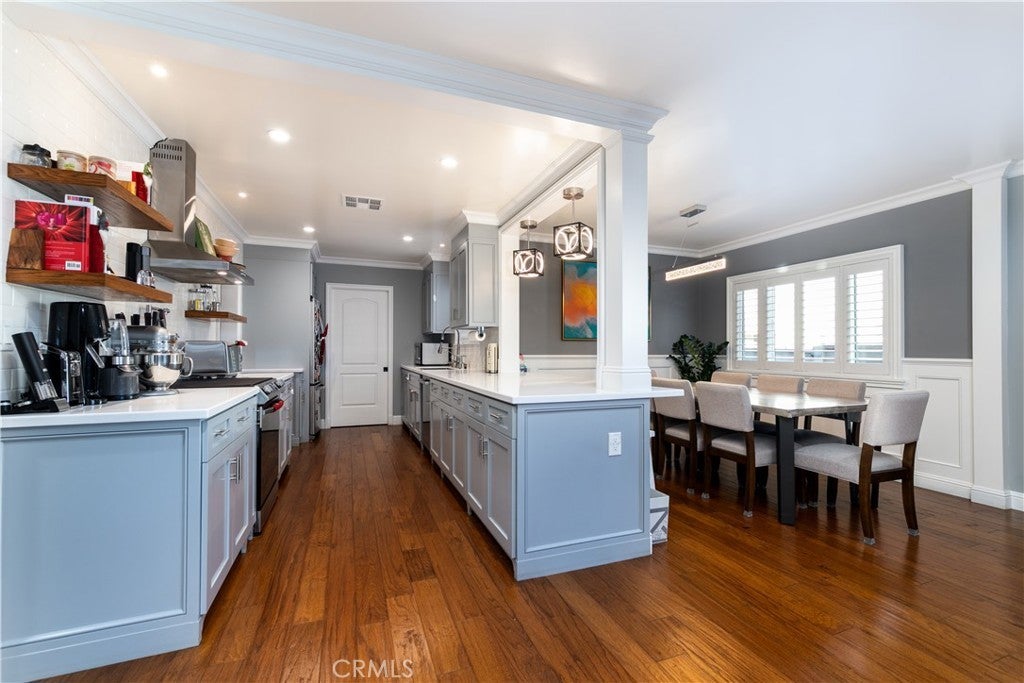 • Interior FeaturesSeparate/Formal Dining Room, Recessed Lighting, All Bedrooms Down, Entrance Foyer, Walk-In Closet(s), Breakfast Bar, Ceiling Fan(s), Crown Molding, Paneling/Wainscoting, Wired for Data