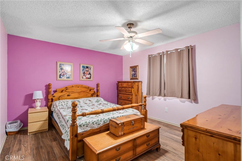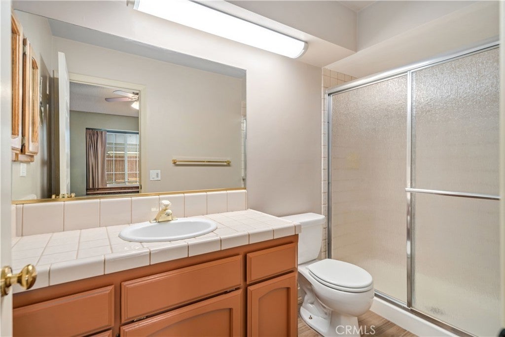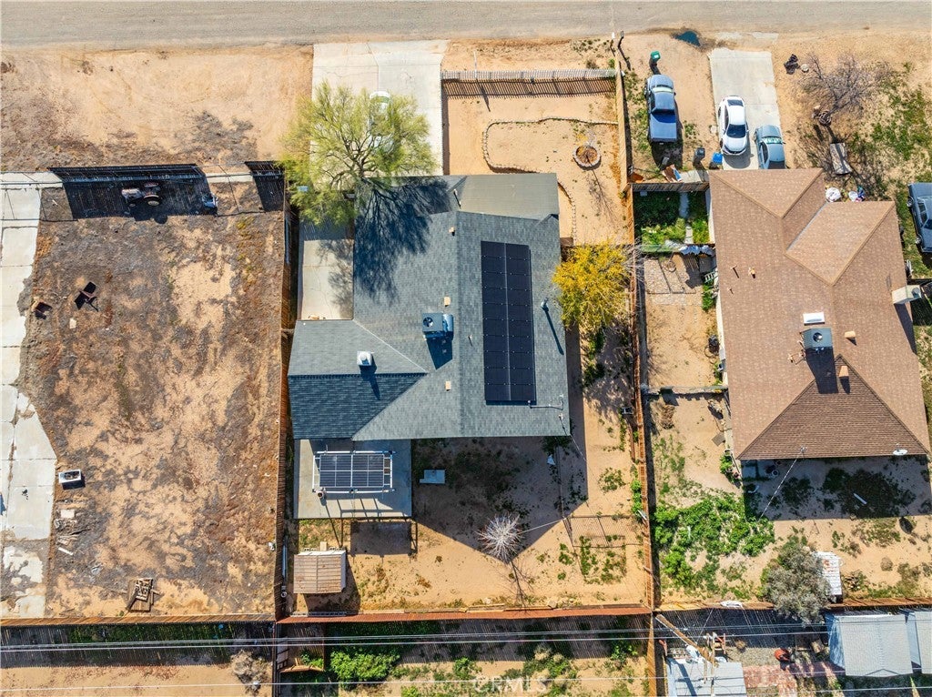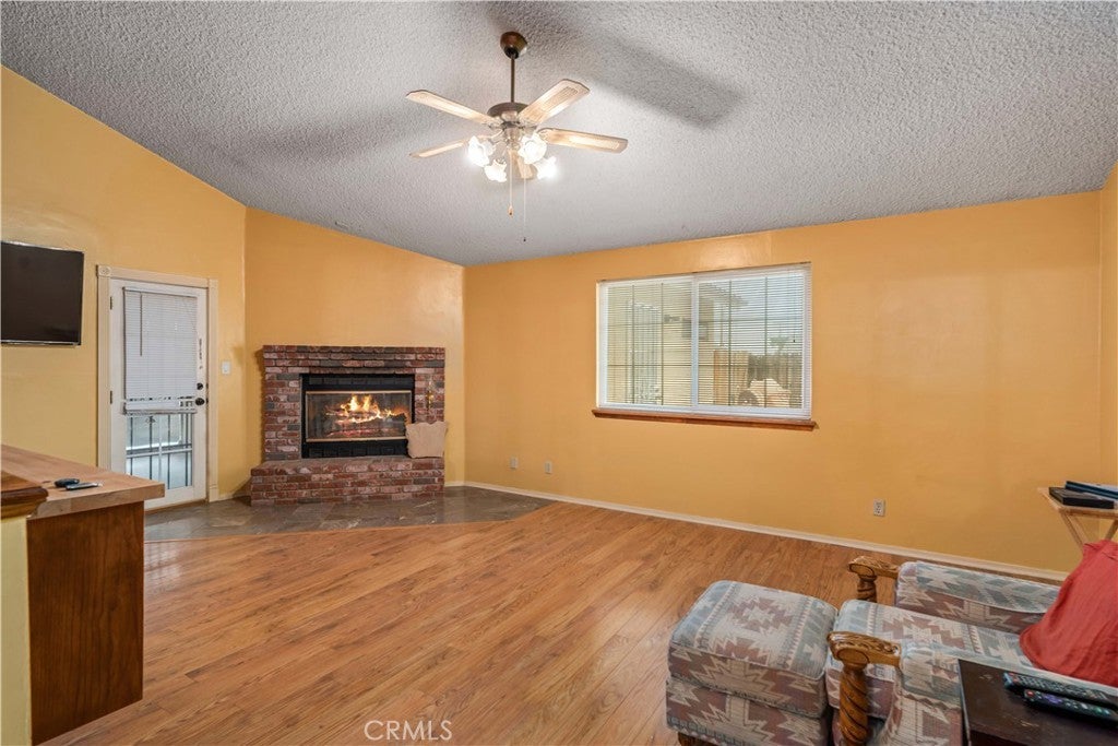 Well-maintained and energy-efficient 3-bedroom, two full bath single-story home with extensive upgrades and flexible living space. Features laminate and wood-tile flooring throughout. The living room offers a pellet stove and a ceiling fan. The family room includes laminate flooring, a brick hearth fireplace, and built-in cabinetry. Permitted 22' x 13' bonus room with separate entry, mini-split system, and dedicated solar panels covering utilities for that room—possible ADU or guest suite (buyer to verify with city). Ideal for extended family, home office, or rental-style use. The kitchen features tile flooring and counters, with a microwave included. Dining area with laminate flooring. Both bathrooms are full baths and have been updated with tile counters and tile floors; the second bath includes a walk-in shower. Bedrooms feature upgraded flooring and updated closet doors. Additional highlights include a heat pump with new ducting, hardwired security cameras, a whole-house vacuum system plumbed, updated windows (including atrium windows, approx. 8 years old), rain gutters, an enclosed patio with a ceiling fan, a wood-fenced backyard, and a shed. The garage offers 220V wiring with a compressor included, plus a washer and dryer; all appliances stay. The main house roof is less than one year old. Solar installed in 2022 at approx. $138/month, covering all Edison electric usage. Move-in ready home offering energy efficiency, versatility, and strong potential for added value. Call today won't last long!!!