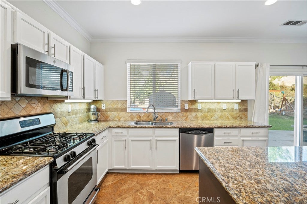 Welcome Home to one of the most sought-after neighborhoods, Hasley Hills. This charming two-story home provides over 2800 square feet of quality interior living space, with 4 bedrooms, 2.5 baths, and an extra-large bonus room. The welcoming entry flows toward a sprawling first floor. The home has numerous features, including an open-concept floor plan, a separate dining room, a large kitchen, a family room, and a living room. The living room has custom cabinets with decorative shelving. The gorgeous kitchen offers a large center island and breakfast bar. Additional kitchen features are beautiful granite countertops, a stone backsplash, lots of cabinets, and stainless steel appliances. The full-sized laundry room is adjacent to the kitchen, leading to the 2-car garage for total convenience. The kitchen and family spaces are both brightened by views out to the patio and onto the large backyard. As you make your way upstairs, you will find the loft area, which is a great space for a study nook or office. The primary bedroom offers double vanity sinks, a shower with a separate tub, and a walk-in closet. Two additional bedrooms include plenty of space and large closets. The secondary bathroom has a double sink vanity. Additionally, the extra-large bonus room is the perfect place to create a home theater, watch sports, play board games, or even be easily converted into an additional bedroom. The home is located on a quiet cul-de-sac with NO MELLO ROOS, low HOA with easy freeway access, and walking distance to shopping centers. There are award-winning schools nearby, and lots of recreation opportunities such as Castaic Lake and the Castaic Sports Complex, which also has an exciting mountain bike park. Call today for a private showing!!!