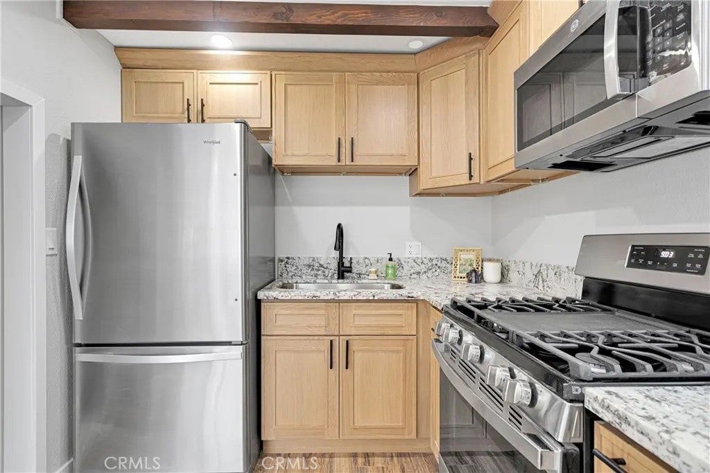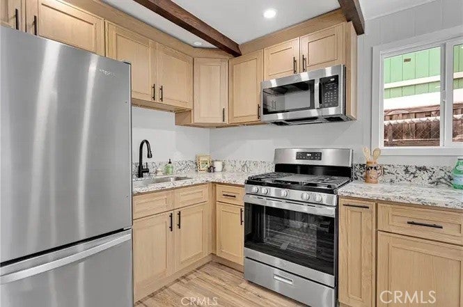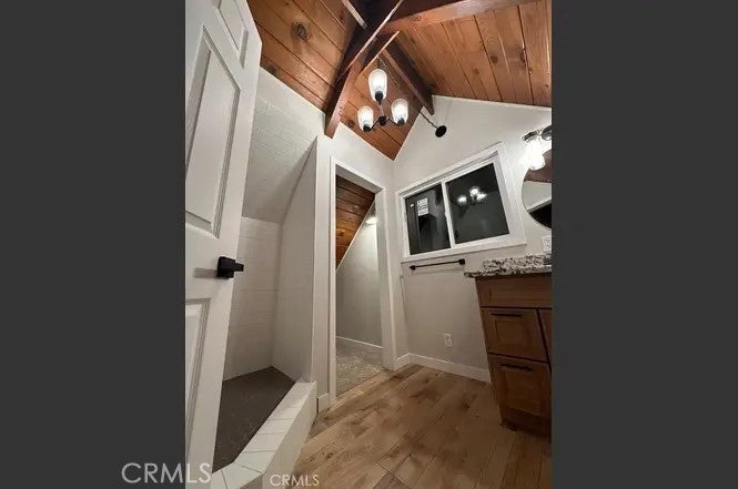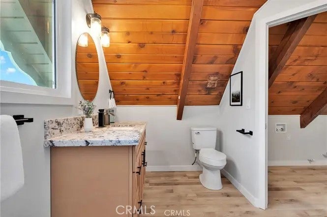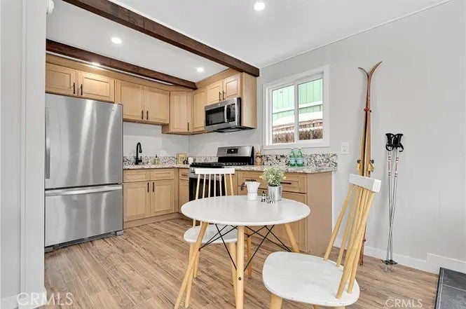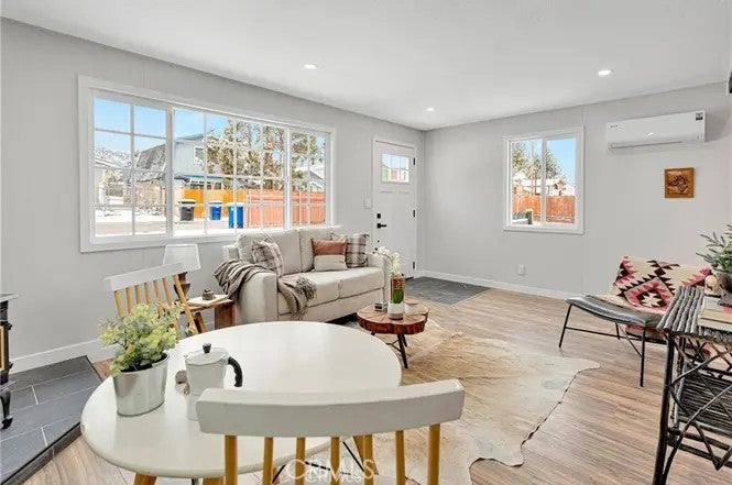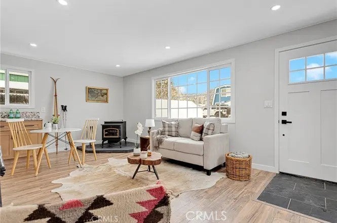 The perfect comfort space in the midst of Big Bear's winter wonderland! Welcome to your completely remodeled cabin in the mountains. Two bedrooms and bathrooms, a thoroughly modernized interior and a large back patio to enjoy the charms of life away from it all. It gets even better in the details, with a pellet stove to warm yourself and gorgeous new cabinets and floors. Tenant occupied until May 1, 2026. Come discover this beautifully redone gem in the heart of California's resort paradise!