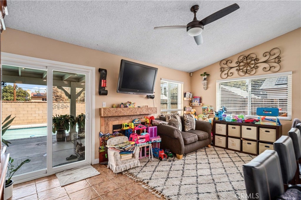 BEAUTIFUL POOL HOME - Step inside and be greeted by soaring vaulted ceilings and a bright, open layout. Tile hallways flow into a cozy, while dual access points lead you to the updated kitchen featuring stainless steel appliances and modern finishes. The adjacent family room offers a warm and inviting fireplace, perfect for relaxing evenings. A bonus room just off the garage provides flexible space and can easily serve as a 4th bedroom, home office, or gym. The primary suite features a double-door entry and a spacious layout for your private retreat. Escape the heat in the backyard oasis with an inground pool with an updated pump and a full-length covered patio for optimal shade. There is a fire pit area for late-night entertaining. You'll love this home, perfect for year-round outdoor living. Additional highlights include a new HVAC system, new energy-efficient windows, and a solar system to keep energy costs low. Don't miss this ready gem with all the upgrades - your summer sanctuary awaits!