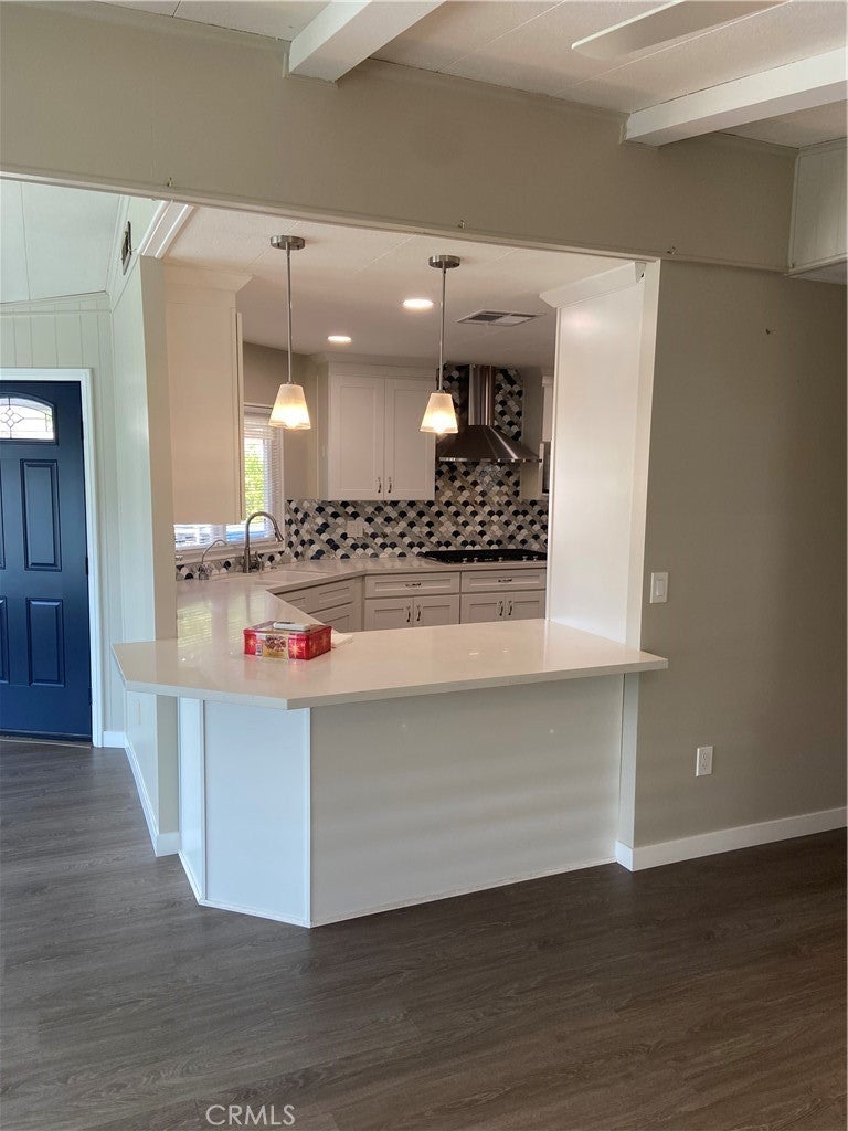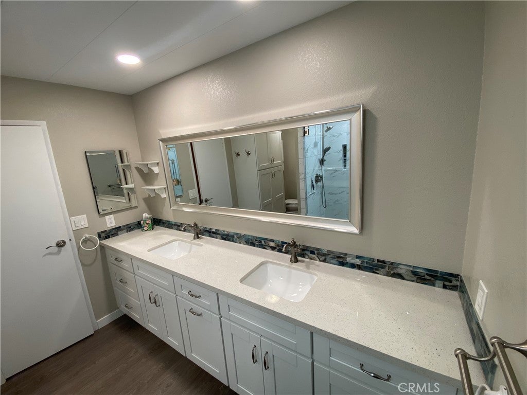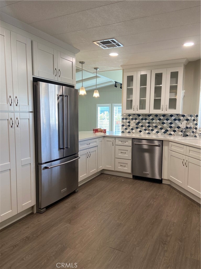 Looking for Quiet Relaxation? You don't want to miss this Beautifully Remodeled Home in a 55+ park. 6 years ago with designer vinyl plank flooring throughout. The Kitchen was completely gutted and reimagined with quartz counters, all new cabinets and stainless appliances, Open to both Living Room and Family Room. The remodel included the Primary Bath Room which features Dual Vanity with custom lighting, Quartz counters. Separate bath and shower. Enjoy the year round amenities such as: 9-hole golf course, Olympic-sized pool, spa, steam rooms, clubhouse, billiard and card rooms. Carport facilitates 2 cars and a motorcycle and a storage shed. There is ample guest parking throughout the park. Check with Park Manager regarding RV parking.