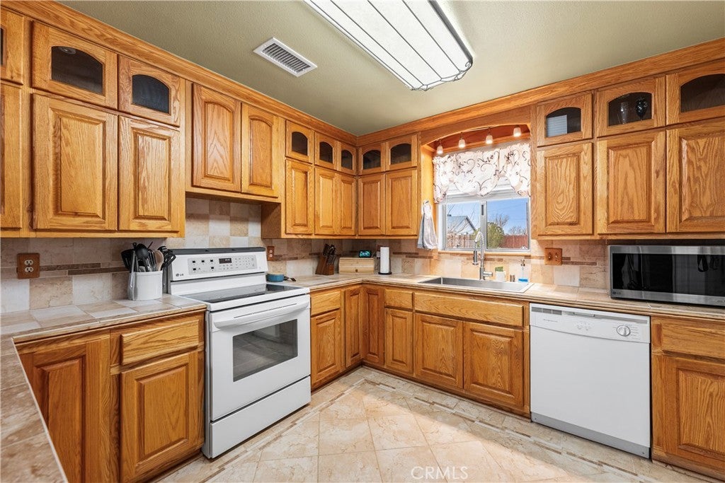 Welcome to this beautifully landscaped 3-bedroom, 2-bathroom home located in the heart of California City! Offering great curb appeal and a thoughtfully maintained yard, this home is perfect for both relaxing and entertaining. Step inside to find a spacious living room with durable vinyl plank flooring and a striking fireplace as the centerpiece—ideal for cozy evenings and large furniture setups. The kitchen has been tastefully renovated with custom tile flooring that continues into the dining area, refinished countertops, and a beautiful tile backsplash that perfectly complements the flooring. A generous pantry and ample cabinet space make the kitchen as functional as it is stylish. The primary suite includes a private en-suite bathroom and enough space for a full bedroom set. Two additional bedrooms offer flexibility for guests, home office, or hobbies. Out back, you’ll enjoy a covered patio and a fully landscaped yard, ready for outdoor dining or quiet mornings. Conveniently located near local schools, parks, and shopping, this home blends comfort, style, and practicality in one great package!