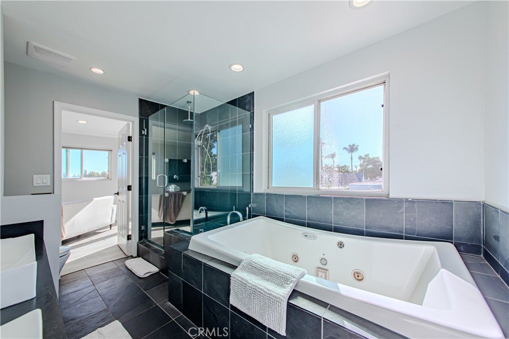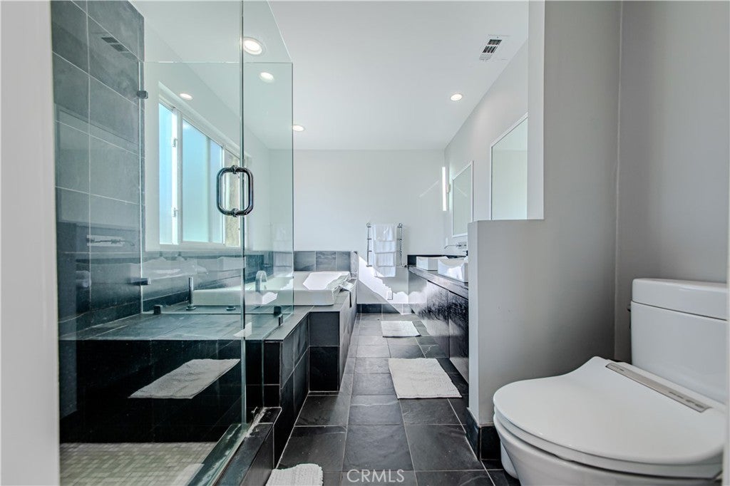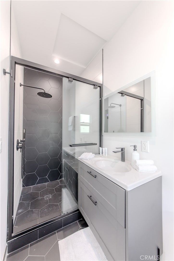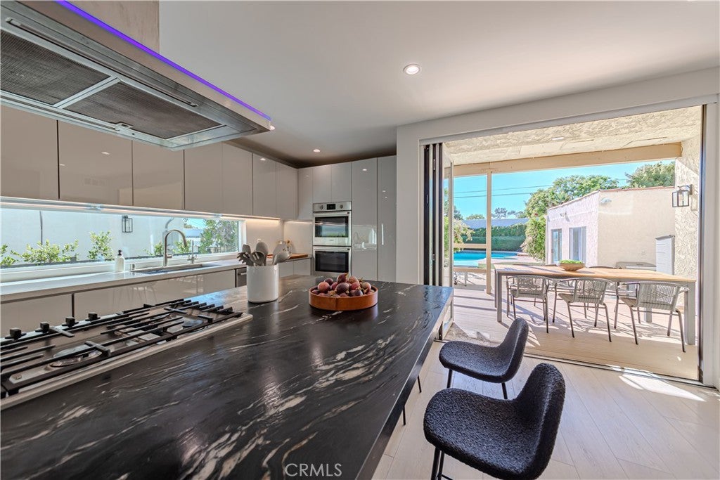 Available fully furnished and turnkey for short, midterm, or long term rentals! Spanish Gem on the outside, fully renovated and transformed into a modern masterpiece on the inside! You will be wowed the moment you walk through the front door and step foot into the large open floor plan, beautifully lit up by all the windows, recessed lighting, and panoramic folding patio doors that create an indoor/outdoor living space with a brand new deck. Fully custom kitchen with new stainless steel Bosch & Thermador appliances, sleek cabinetry, and unique quartzite island with convenient bar seating. Large laundry room the size of a bedroom with ample storage space and extra fridge located conveniently behind the kitchen. 2 spacious bedrooms, and 2 full bathrooms downstairs, 2 bedrooms including a primary suite with a private balcony overlooking the pool upstairs. Plenty of mature and lush landscaping, with fruit trees in the front and backyard. This property has one of the largest lots in the area and features a saltwater pool and spa. BONUS 477 SF STUDIO UNIT WITH QUEEN BED, BATHROOM & KITCHENETTE IN THE BACKYARD BY THE POOL INCLUDED. All this is located in the heart of West Hollywood, within walking distance to LA's hottest restaurants and shopping, and minutes from the Grove and all that Beverly Hills has to offer.