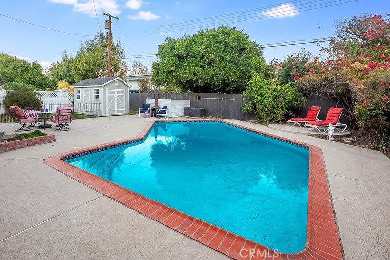 Welcome to this beautifully UPDATED West Hills entertainer’s home, where thoughtful design meets everyday comfort. Nestled on a quiet, tree-lined street, this home features a sparkling in-ground POOL, SOLAR PANELS, and BATTERY BACK-UP, along with a versatile BONUS ROOM that could easily serve as a FIFTH BEDROOM. The 7,769 sq. ft. lot welcomes you with a front lawn, colorful flowerbeds, raised brick planters, and shade and fruit trees that enhance the inviting covered entry. Inside, the bright, open floor plan flows effortlessly, offering approximately 1,844 sq. ft. of living space. The family room is filled with natural light from large bay windows, while the custom tiled fireplace adds warmth and character. The chef’s kitchen is well equipped for everyday living and entertaining, featuring ceiling-height cabinetry, gleaming countertops, a breakfast bar, and stainless steel appliances, including a Frigidaire® self-cleaning five-burner gas range with Arietta® ventilation hood and a Frigidaire® dishwasher. Adjoining the kitchen, the dining room showcases crown molding and French doors that open to the outdoors, creating a comfortable indoor-outdoor connection. The home offers four bedrooms and two and a half bathrooms, including an oversized primary suite with abundant natural light, dual closets, and a private en suite featuring a dressing and vanity area, along with a glass-enclosed step-in shower set apart for privacy. Downstairs, the bonus room with backyard access is ideal for an office, hobby space, or additional bedroom. An indoor laundry room with checkerboard tile helps keep daily life organized. Step outside to a private backyard retreat complete with a sparkling in-ground pool, open patio, fenced grassy area, vibrant flowerbeds, and an oversized storage shed, well suited for entertaining or quiet evenings outdoors. With a two-car garage, central air and heat, and a desirable West Hills location, this home blends modern convenience with comfortable living in an established neighborhood.