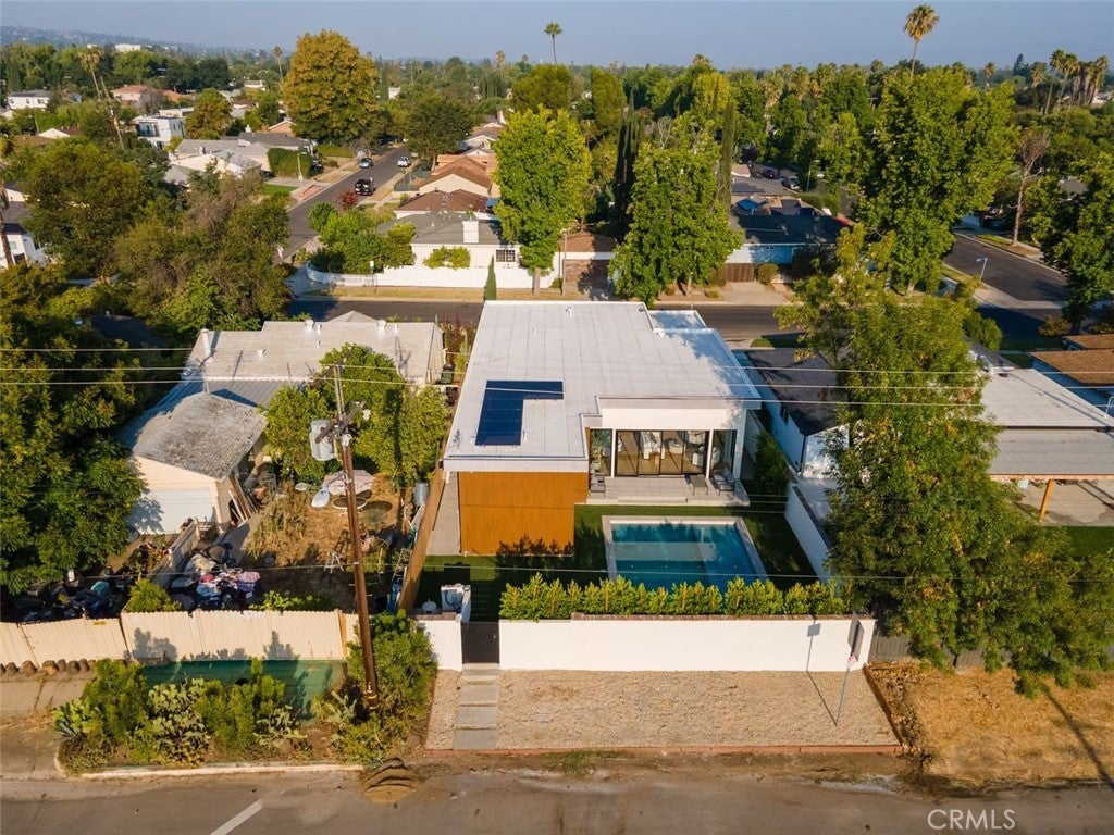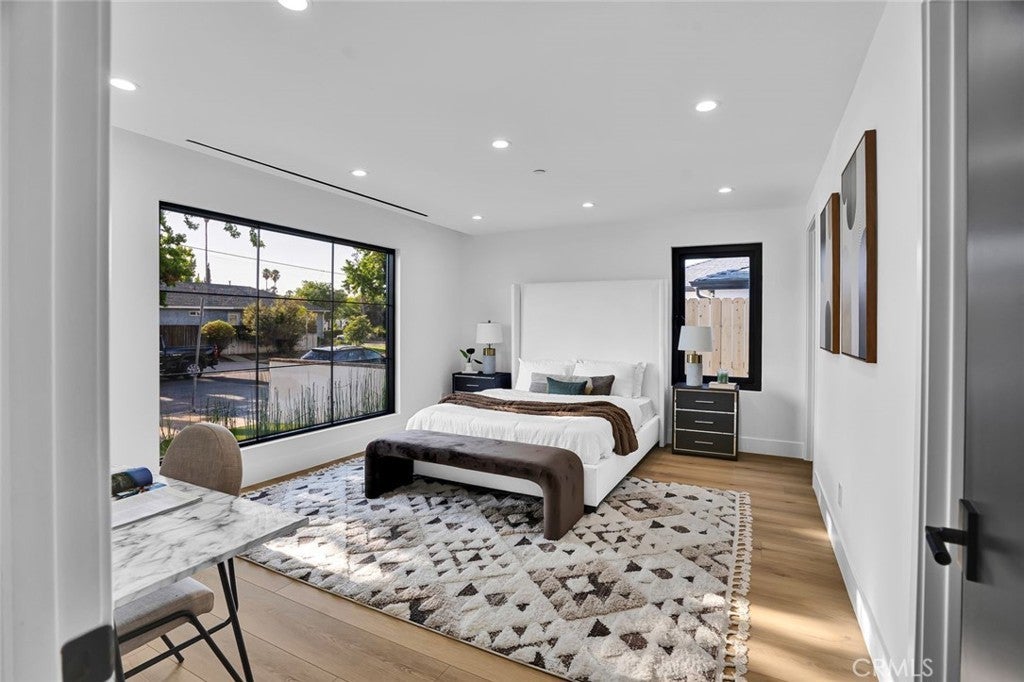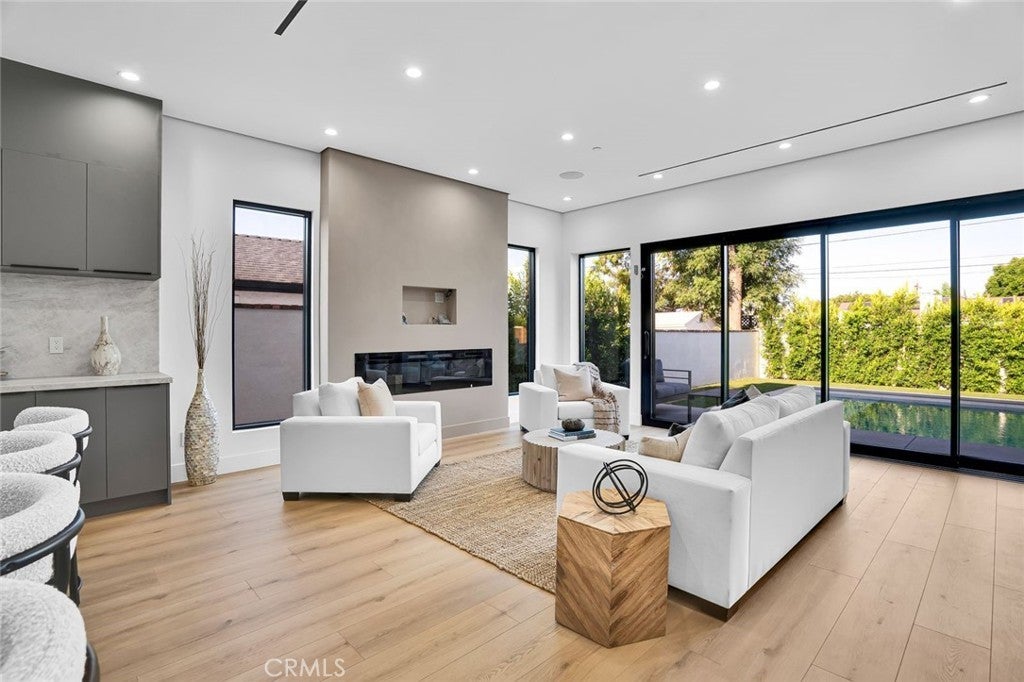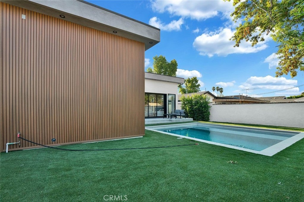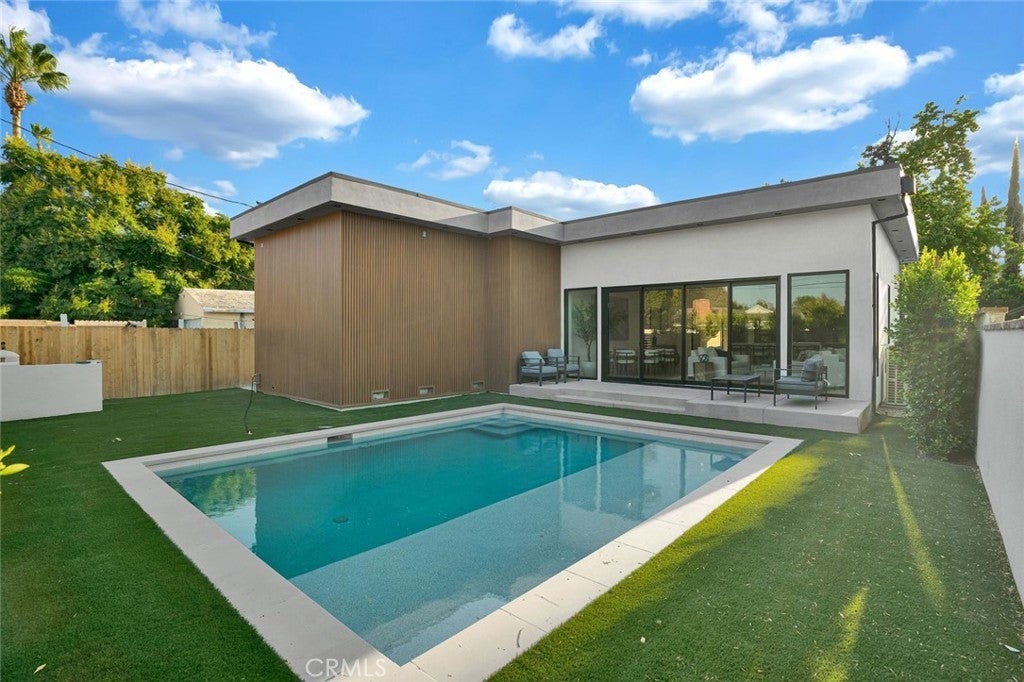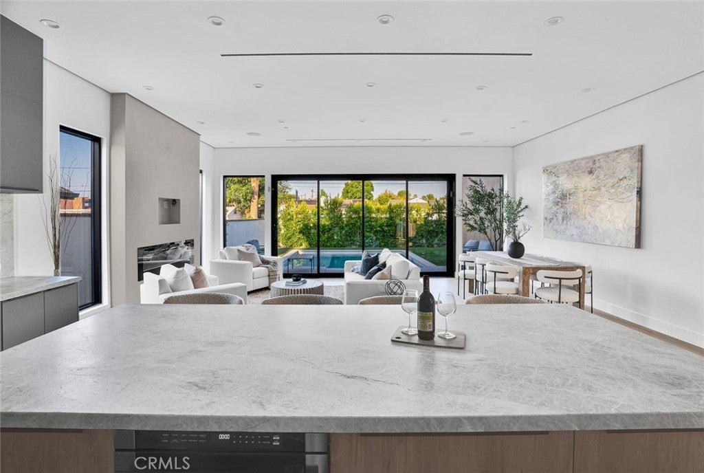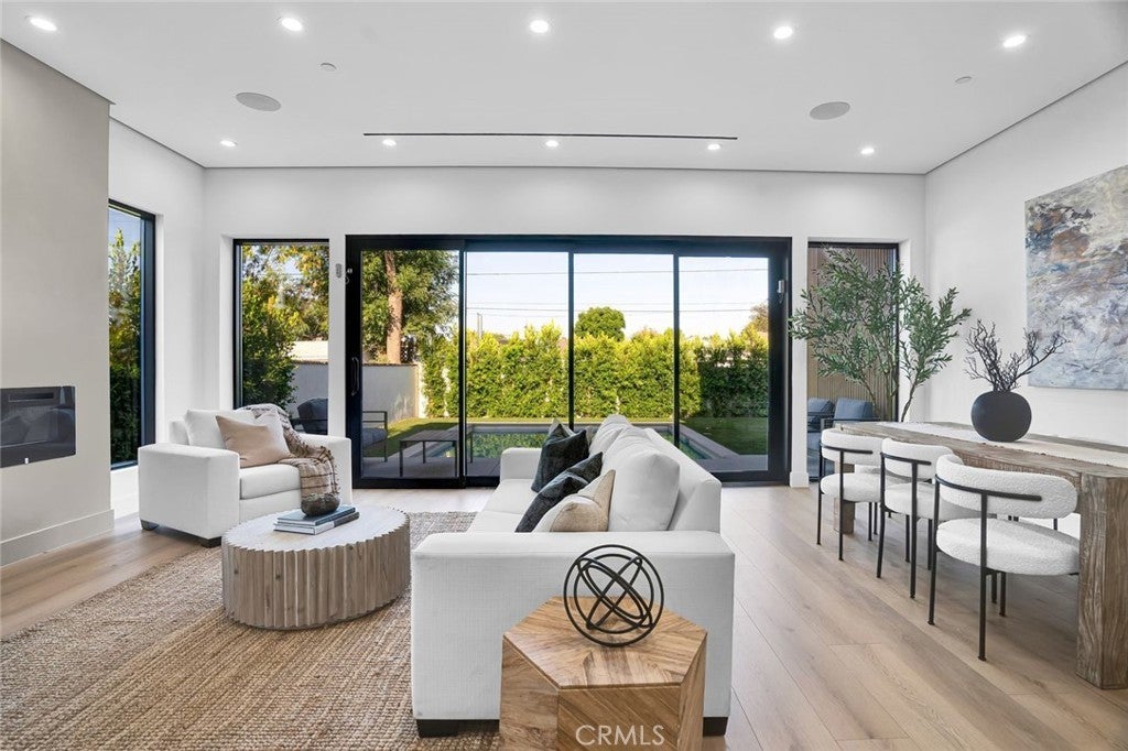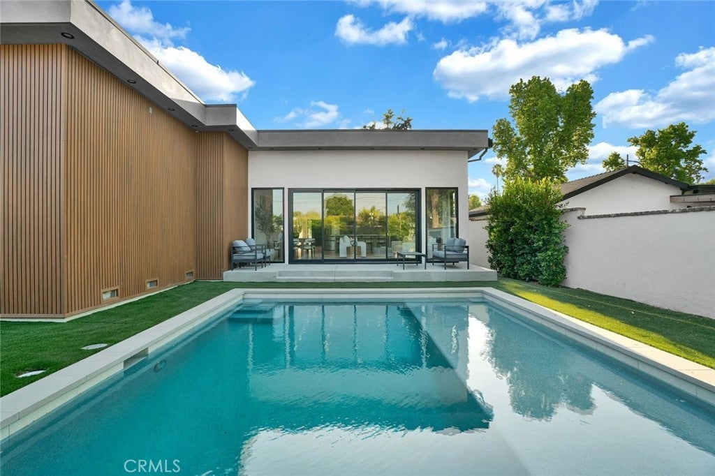 Come see this beautifully almost brand new- 3-bedroom, 3.5-bathroom pool home in Encino, offering 2,107 sq. ft. of stylish living space. The impressive 12-foot-high entry ceiling and pivot front door create a grand first impression, while high ceilings of 10 feet, throughout the house, make the home feel open and spacious. The layout includes a generous junior suite and a large primary master bedroom with a stunning walk-in closet and fireplace. The brand-new chef’s kitchen has plenty of cabinets, brand new appliances and features Taj Mahal natural stone countertops and backsplash, opening to the dining and family room for effortless entertaining. Recessed lighting throughout the house, family room has a modern fireplace. Large sliding doors flood the space with natural light and connect you to the backyard retreat. Outside, enjoy the sparkling Baja-style pool with mini pebble plaster finish, surrounded by drought-resistant landscaping and synthetic grass for year-round beauty and low maintenance. This modern home has been thoughtfully upgraded with new heating and air conditioning, updated electrical and plumbing, and built-in sound speakers in the living area. This beautiful home has a laundry room with ample cabinets. There is a solar panel system. Located close to shops, parks, and quick access to the 101 Freeway, this home blends convenience with luxurious California living.