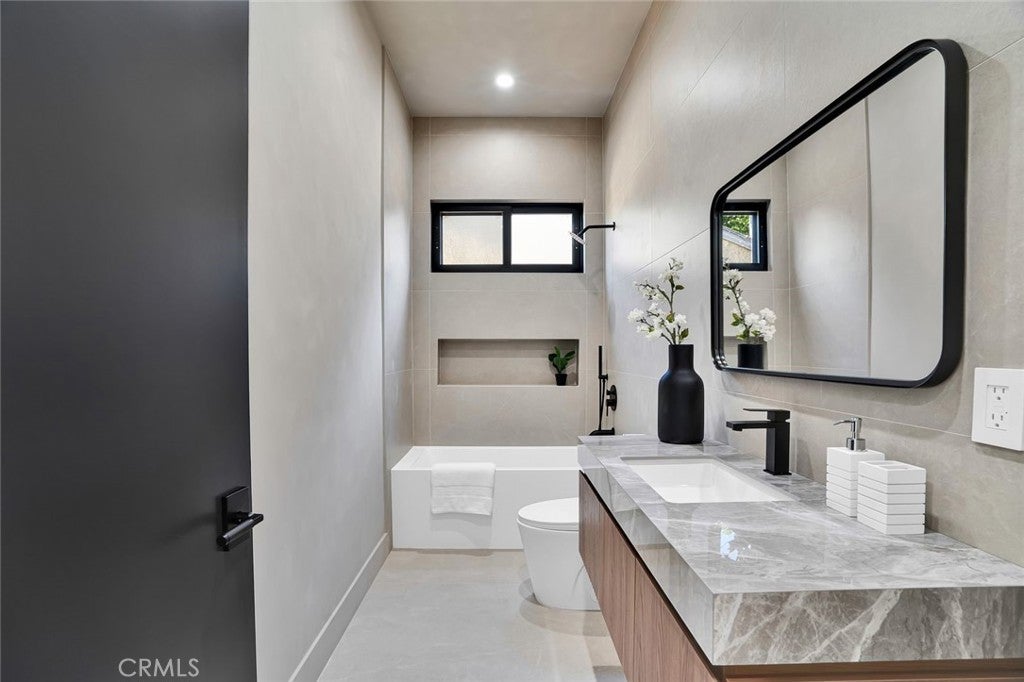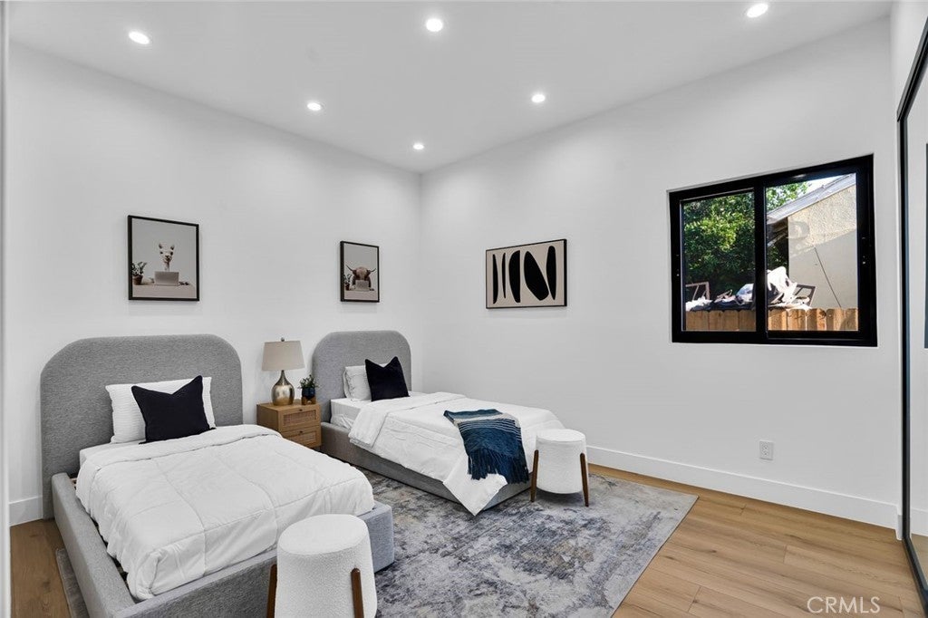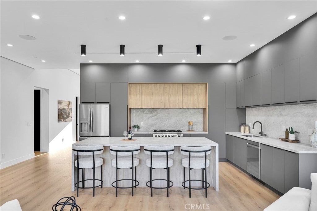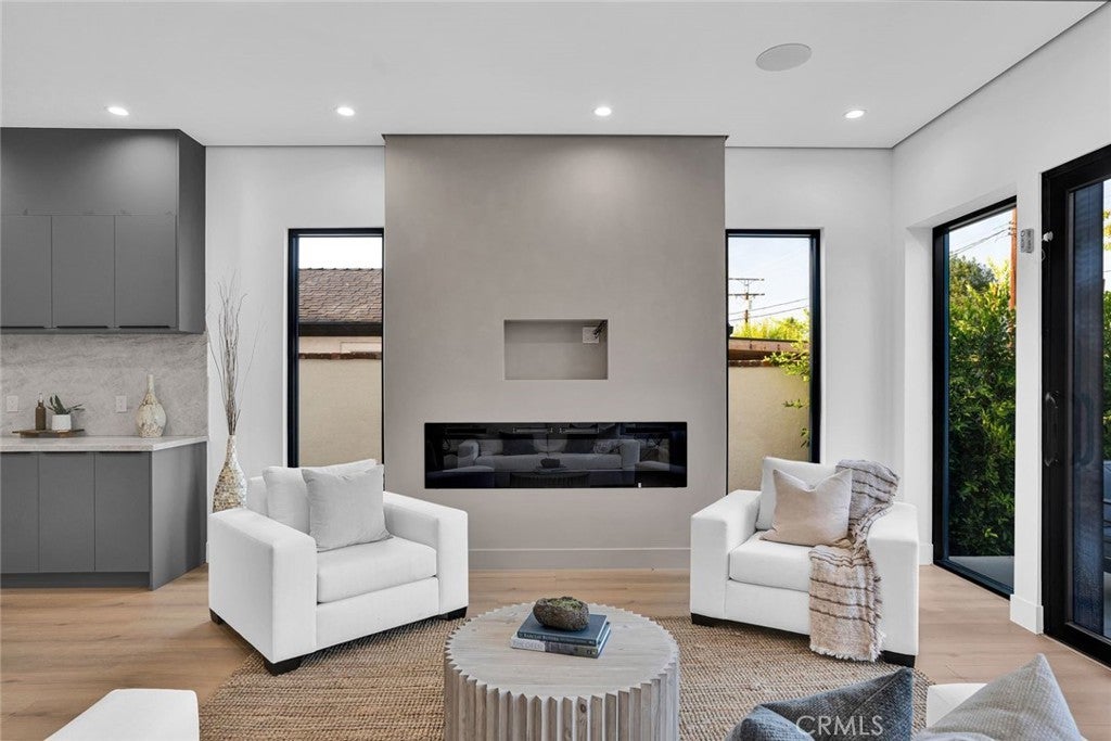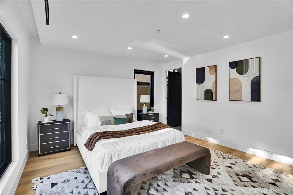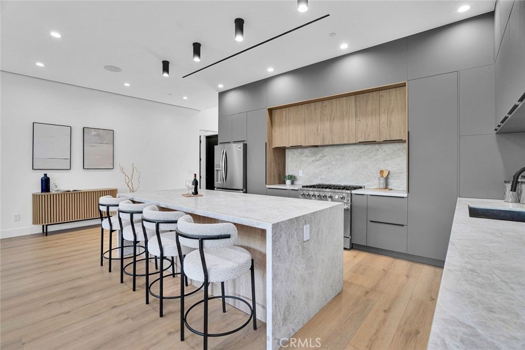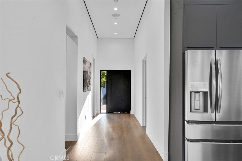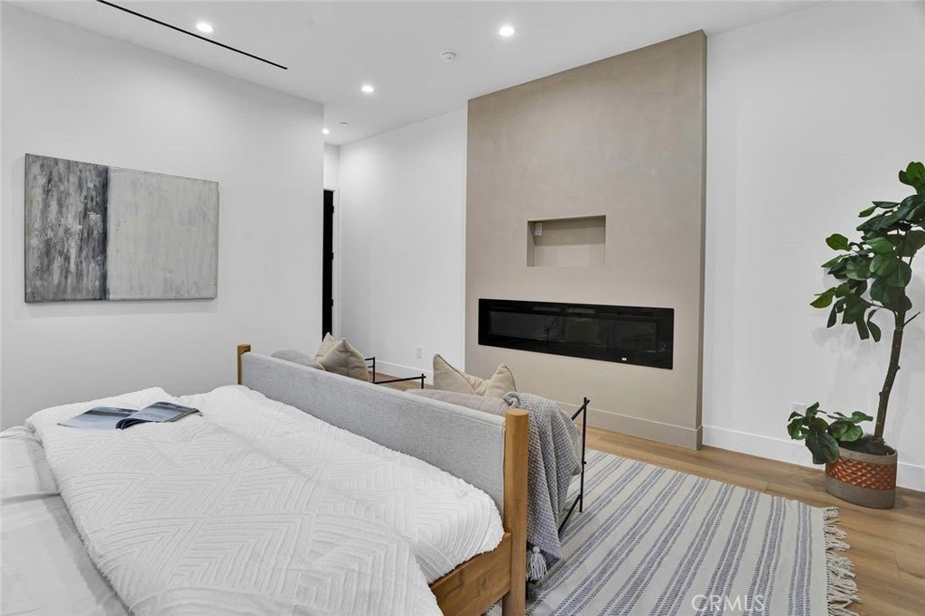 Come see this beautifully almost brand new- 3-bedroom, 3.5-bathroom pool home in Encino, offering 2,107 sq. ft. of stylish living space. The impressive 12-foot-high entry ceiling and pivot front door create a grand first impression, while high ceilings of 10 feet, throughout the house, make the home feel open and spacious. The layout includes a generous junior suite and a large primary master bedroom with a stunning walk-in closet and fireplace. The brand-new chef’s kitchen has plenty of cabinets, brand new appliances and features Taj Mahal natural stone countertops and backsplash, opening to the dining and family room for effortless entertaining. Recessed lighting throughout the house, family room has a modern fireplace. Large sliding doors flood the space with natural light and connect you to the backyard retreat. Outside, enjoy the sparkling Baja-style pool with mini pebble plaster finish, surrounded by drought-resistant landscaping and synthetic grass for year-round beauty and low maintenance. This modern home has been thoughtfully upgraded with new heating and air conditioning, updated electrical and plumbing, and built-in sound speakers in the living area. This beautiful home has a laundry room with ample cabinets. There is a solar panel system. Located close to shops, parks, and quick access to the 101 Freeway, this home blends convenience with luxurious California living.
