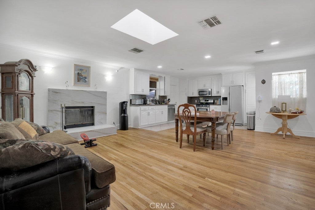 Welcome to your ideal family home in the heart of Lake Balboa. This charming and beautifully 3-bedroom 2-bathroom home is perfect for family living, offering comfort, functionality, and a fantastic location. The spacious open floor plan seamlessly connects the living and dining area, making it easy to host family gathering. Step inside find gleaming hardwood floors that add warmth and charm throughout. Smooth ceiling, cozy granite fireplace, natural light fills the open concept living space. The remodeled kitchen is both refined and functional, featuring granite countertop and custom white cabinets all opening to the dining area for easy hosting and convenience. Step outside to your own private retreat with patio, perfect for outdoor entertaining. This move-in ready home truly has is all-modern upgrades, Solar system, expanded Bonus room perfect for office or gym. Garage conversion with no permit. Don't miss the opportunity to make this wonderful home your own!! This home also features recent system updates, including a brand new HVAC less than a month, Condenser and ducting. This perfectly positioned home on a large 8,777 flat lot in the highly sought-after Lake Balboa neighborhood, close to parks, restaurants, shopping, and commuter routes, this home offers the best of comfort, style, and location.