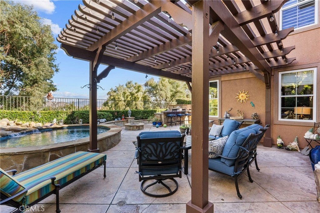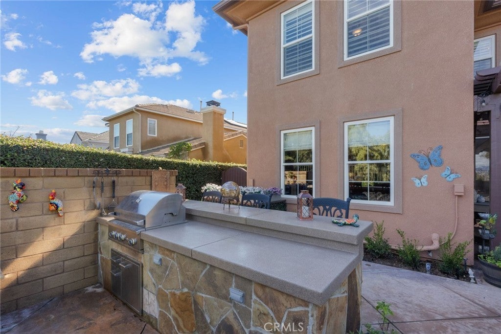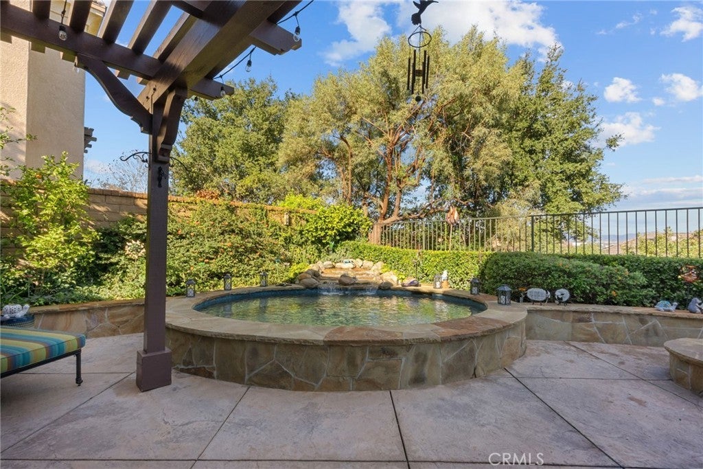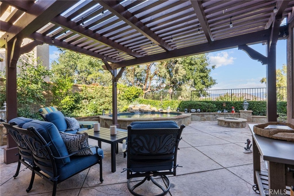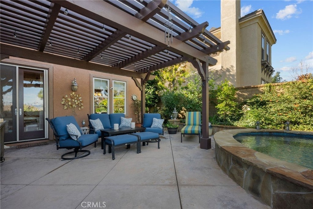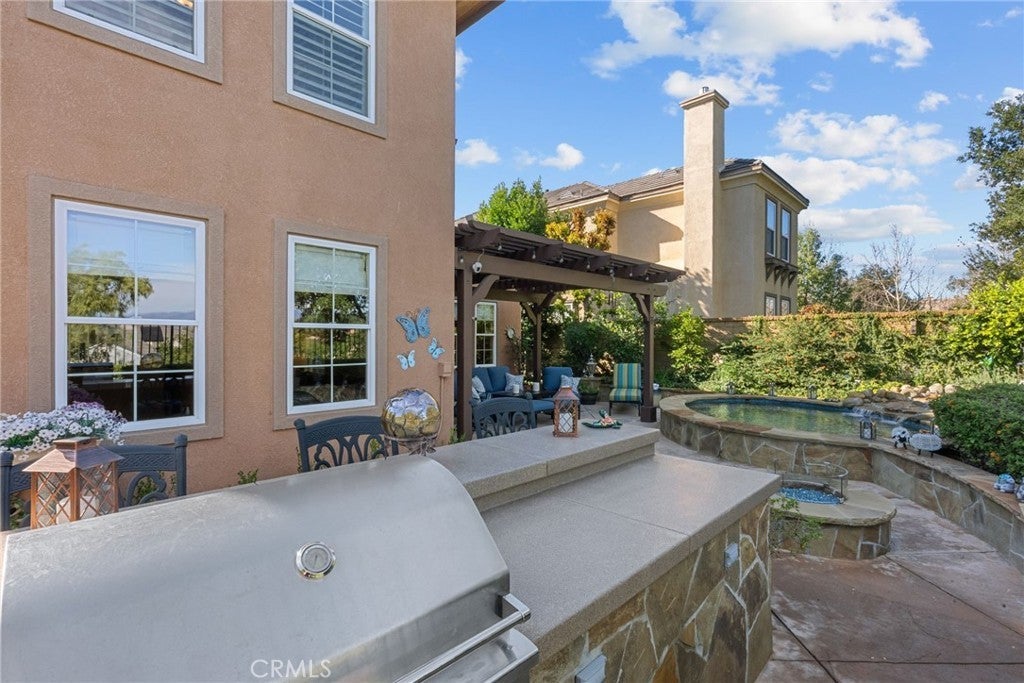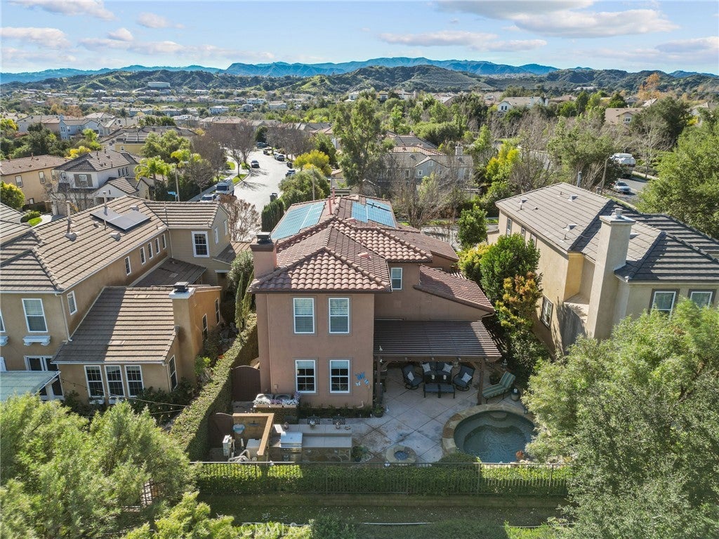Welcome to this Gorgeous Gated Valencia Westridge Property! This Former Model has been significantly upgraded & enhanced with top-of-the-line designer finishes, showcasing Model Home Pride of Ownership. After purchasing the home in 2015, the owners have done amazing remodeling & upgrades to this stunning home! This beauty features travertine flooring & wood-look tile upstairs, along with high-end luxurious touches throughout. This is the home you've been dreaming of, with Formal Living & Dining Rooms wrapped around a charming Atrium/Patio area, perfect for relaxing & enjoying the peaceful surroundings. French Doors, custom window treatments, & an advanced smart security system with video & intercom system throughout. These are all the details you would dream of if money were no object, & they are all already installed. Entertainers' Chef's Kitchen boasts a huge color-contrasting stone countertop island with a breakfast bar featuring a Stainless Steel 5-burner cooktop. The rest of this amazing kitchen features a double oven, a built-in Integrated Refrigerator, custom cabinets, a Stone countertop & a custom backsplash, opens to the separate spacious family room with a designer fireplace & custom built-in cabinetry with a flat panel TV overlooking the lovely backyard with beautiful valley views, numerous water features, two fire pits, an outdoor kitchen, and huge Spa with a waterfall! The formal dining area off the kitchen offers plenty of room for entertaining guests! Ascending the custom staircase leads to the Primary Suite, which offers impressive views to be appreciated every morning. The Suite features a walk-in closet and a spacious bath with a separate tub & shower. Plus three additional bedrooms, a full bath and Laundry room. Huge 9.66KW Solar System with Battery Back-up to keep the electric bill low & affordable. The original builder offered an optional 5th bedroom/den & full bathroom downstairs (in lieu of the 3rd car garage bay; please see floor plan). Enjoy access to world-class resort amenities nestled within the TPC Oaks Golf Course, ideally situated west of the 5 Freeway within walking distance of top-rated schools—Oak Hills Elementary, Rancho Pico Junior High, & West Ranch High. Westridge residents enjoy exclusive amenities, including two pools, tennis & sports courts, a clubhouse, & pickleball courts. Just steps away from The Oaks Club, offering PGA TOUR golf & social membership opportunities—all with no Mello-Roos tax & a low HOA fee.
