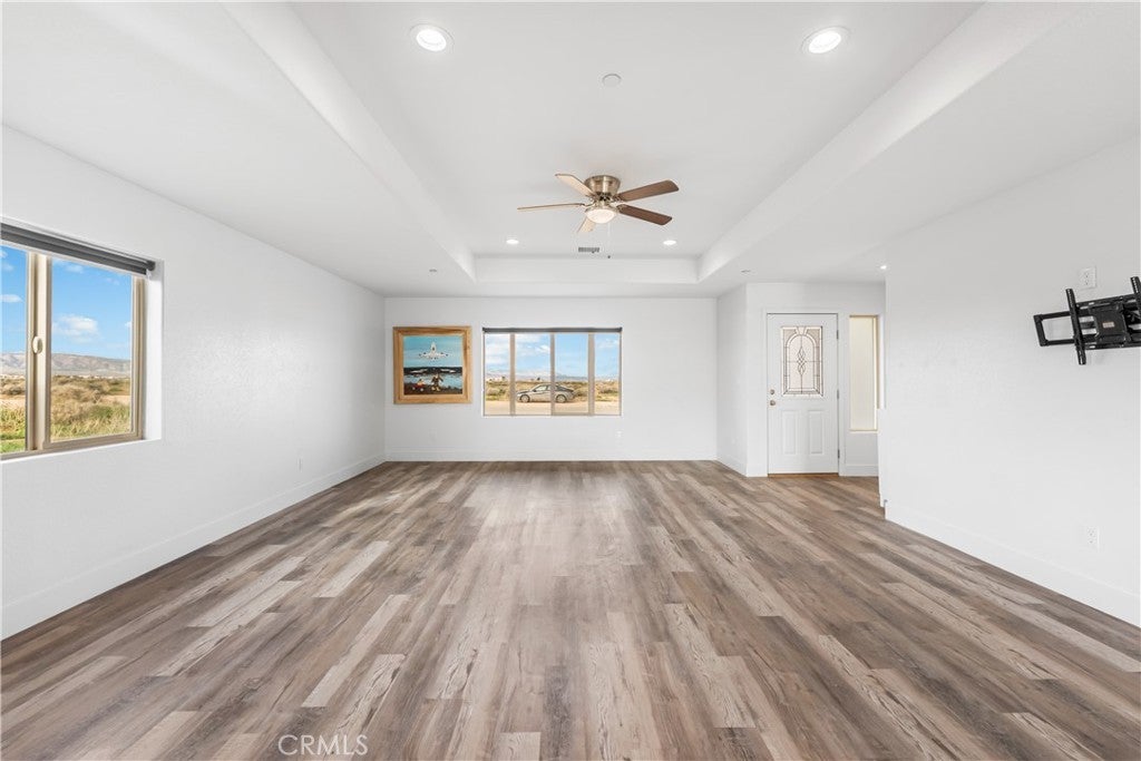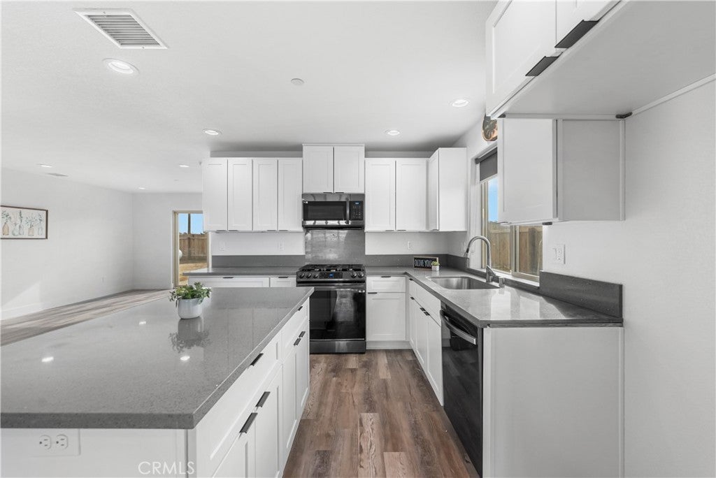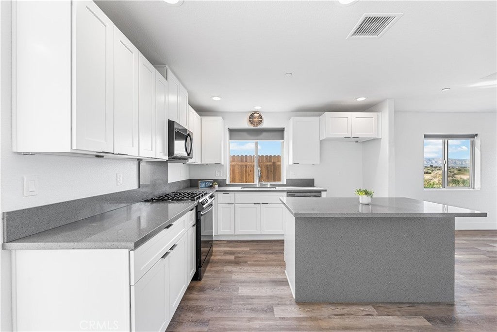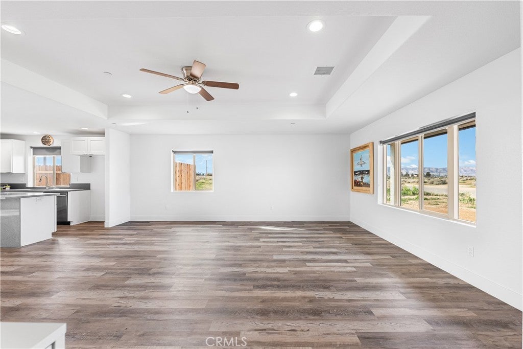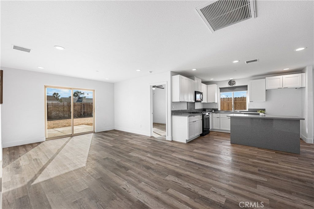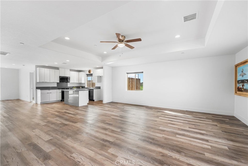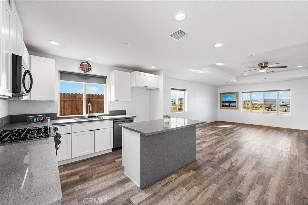 Located in the heart of California City, this spacious 4-bedroom, 2-bathroom home offers an unmatched view of the surrounding mountains and the flexibility you’ve been looking for! With RV access, there’s plenty of room for your desert toys, outdoor gear, or additional vehicles. Inside, you’re greeted by a large living room with soaring ceilings that create a bright and open feel. The kitchen is a showstopper, featuring sparkling gray quartz countertops, clean white cabinetry, and ample space for all your favorite appliances and gadgets. Whether you're a home chef or just love to entertain, this kitchen checks all the boxes. The adjacent dining area is generously sized to accommodate a full table, but versatile enough to be used as a second living area, office, or playroom. The primary suite offers a peaceful retreat with a private en-suite bathroom complete with dual sinks and great storage. Throughout the home, you’ll find beautiful wood grain vinyl plank flooring that combines warmth and durability. Enjoy peaceful desert sunsets, open skies, and easy access to local schools, shopping, and major highways. With its combination of space, views, and function, this home is ready for your next chapter!