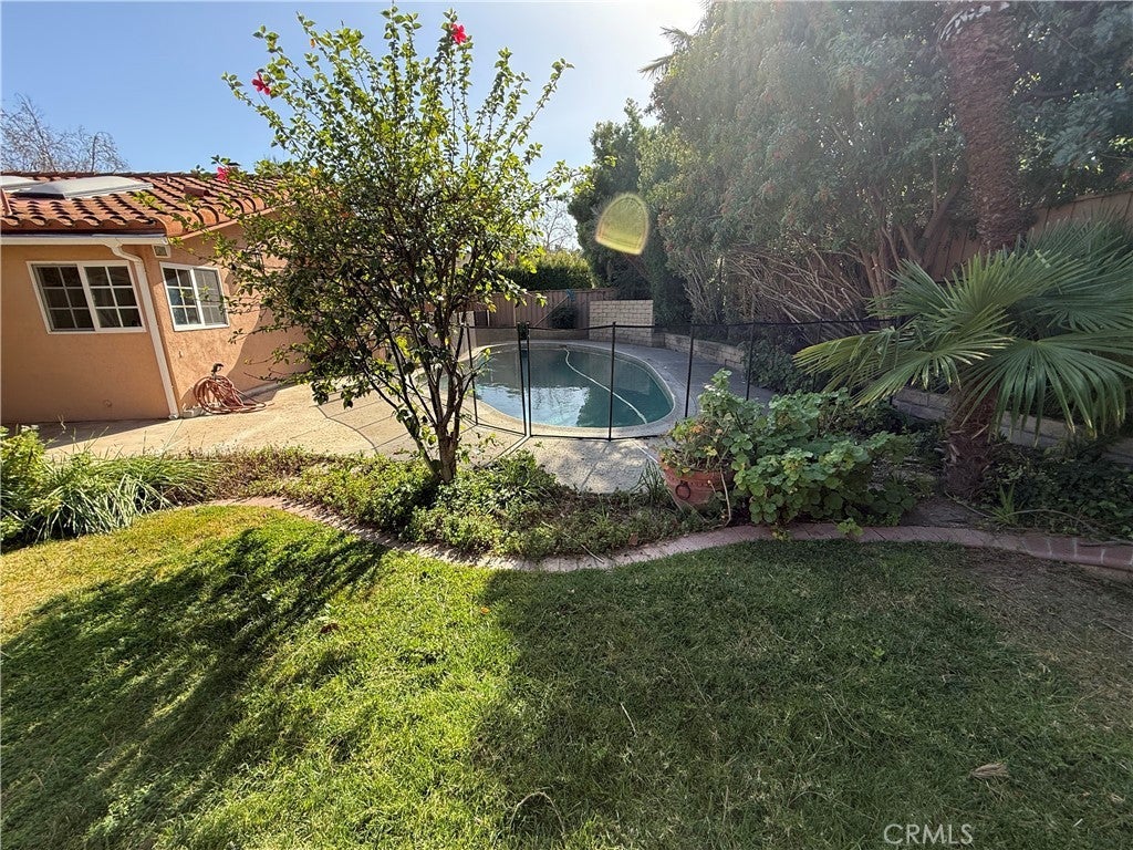 Beautiful one story 4 bedroom 2 bath home remodeled to increased square footage and to maximize natural lighting with five skylights and an open floor plan. Gourmet kitchen has a new 30 inch electric double oven with convection cooking options and new Bosch dishwasher. Additional appliances include a 5 burner gas cooktop, microwave, refrigerator with a water and ice dispenser. Cabinets are a light honey wood with dramatic dark granite countertops. Large kitchen Island perfect for baking and entertaining. Most of the house has Italian style white tile flooring with a slight marbled accent. Two of the smaller bedrooms have carpet. The master bedroom and second largest bedroom can easily fit a king sized bed. The master bath has a shower with a separate bath tub. The hallway bathroom has a shower tub combo with a two sink vanity. Some of the bedrooms have mirrored closet doors. The backyard has a pool that is shaped like a pond with pebbled coating. The pool is surrounded by mature landscaping which creates additional privacy. The plants included a variety of fruit trees including hybrid trees with multiple fruits per tree, pomegranate, pluot and plum varieties, loquat, kumquat, mint. There are also a variety of flowering plants. Stackable washer dryer located inside. Two car detached garage with EV charger and high ceilings with lots of shelves for ample storage. The neighborhood has sidewalks and street lights and is perfect for walking in the day or evening. Close to several parks, hiking trails and shopping centers with an extensive variety of delicious dining options from casual to fancy. Nearby to several gyms, yoga studios and YMCA. Short drive to the local beaches and close to several golf courses. Westlake Village is an upscale area with a warm sense of community that offers many options for an active lifestyle.