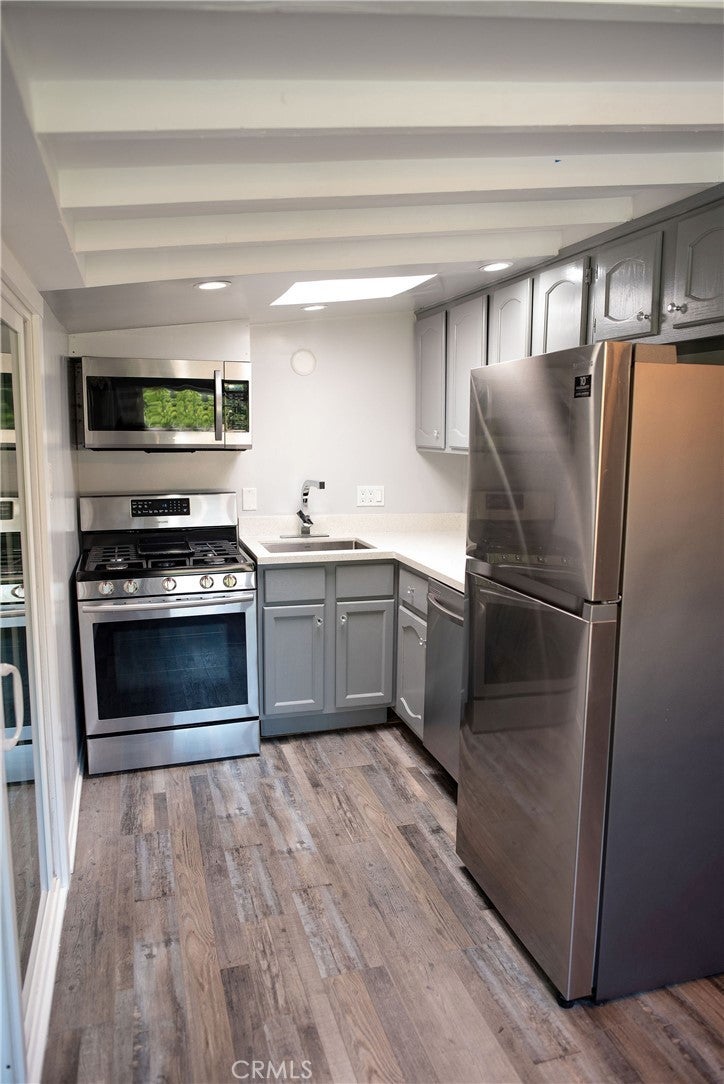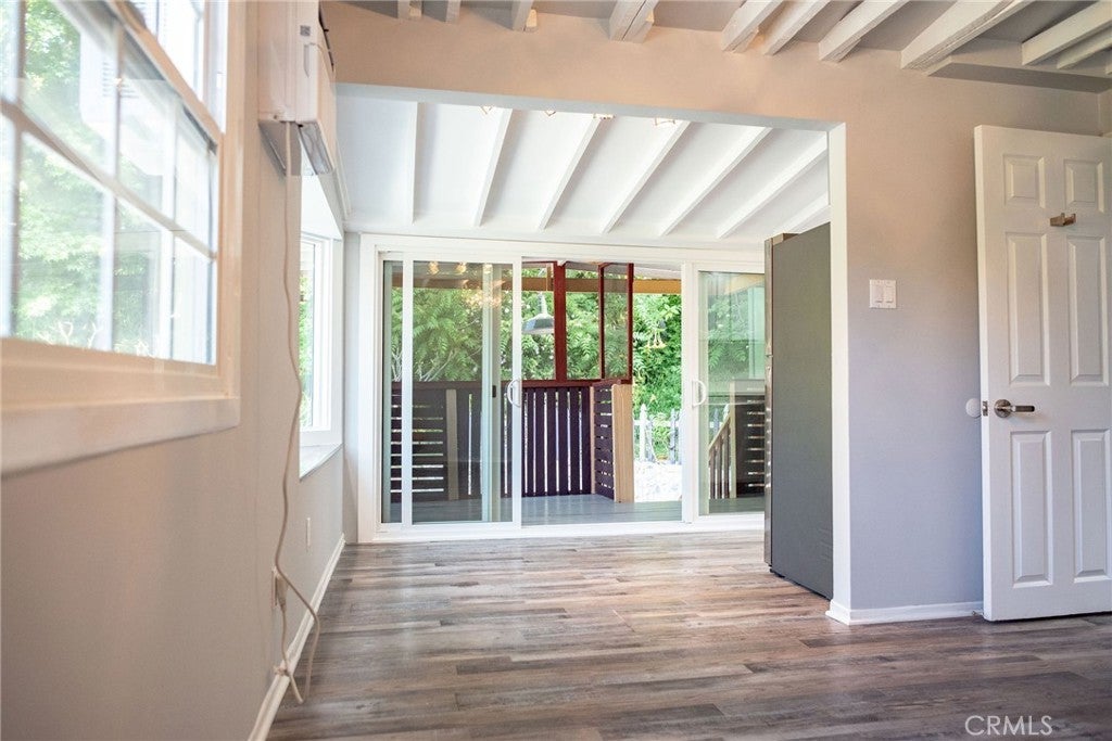 This newly remodeled apartment is located in the upper reaches of Little Santa Anita Canyon. Originally built as a get-away retreat for hikers, it will work it’s magic on you, too. Upstairs of duplex with screen porch, large glass patio sliders and extensive lush garden views. Very Private !Eat in kitchen with bay window seats .ALL NEW stainless refrigerator, Dishwasher, 5-burner stove with center griddle and convection oven, an over the range microwave oven with fume hood. This unit features Hardwood floors, Beamed ceiling, Beautiful newly renovated bath, Large closet, Heating and Air Conditioning, Recessed lighting, Short walk to Mary's Market and hiking trails. The property is a virtual retreat; wooded with plenty of shade, 6 small ponds, abundant wildlife… Santa Anita Creek flows right by the property. Cross the footbridge for morning coffee at Mary’s Market. Immediate access to some the very best hiking and mountain biking in all of Los Angeles! Onsite Laundry. Reserved Parking at additional charge.