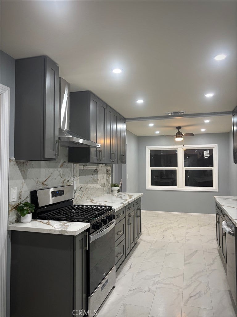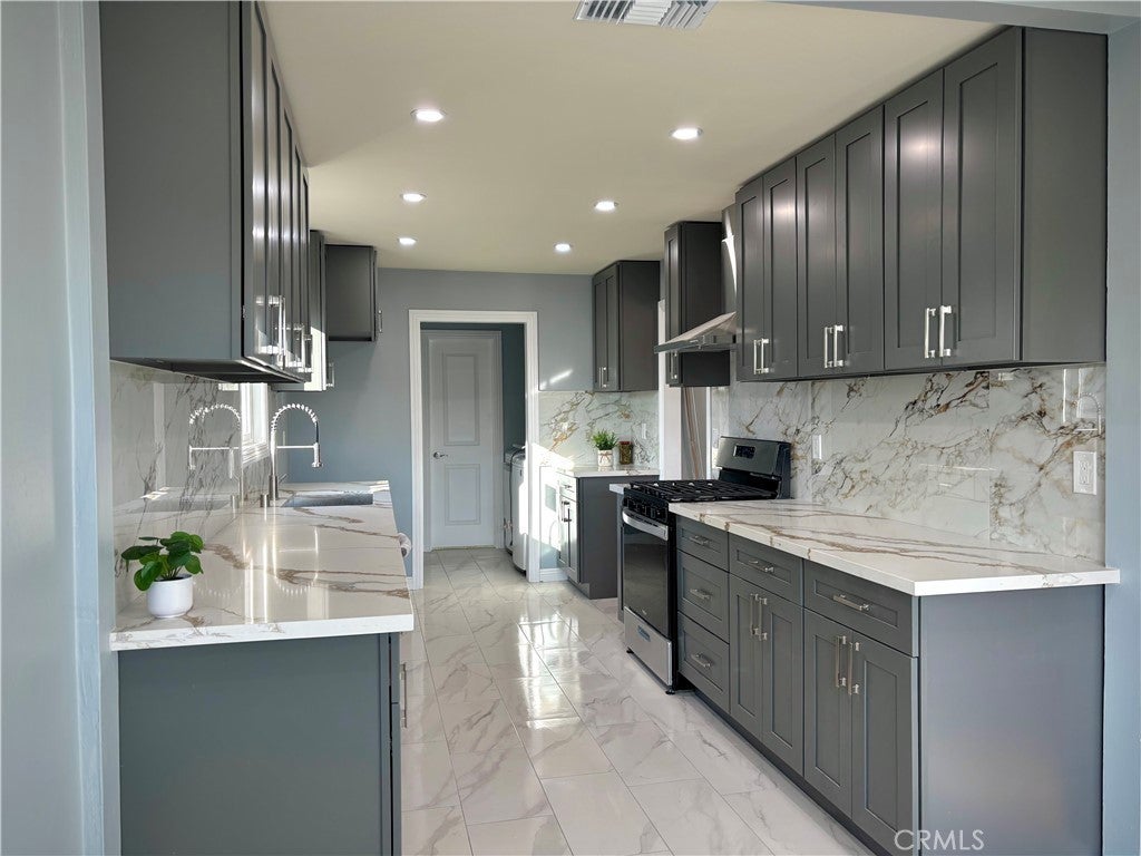 Welcome to this beautifully remodeled home , featuring spacious rooms filled with natural light and modern touches . Enjoy the elegance of recessed lighting , updated appliances , laminate flooring , ceiling fans , and a beautifully landscaped front and backyard perfect for relaxing or entertaining family and friends . Nestled in a friendly and convenient neighborhood , this home offers three bedrooms and two bath , the perfect blend of comfort and style . Sec 8 and LACDA vouchers are accepted . l
