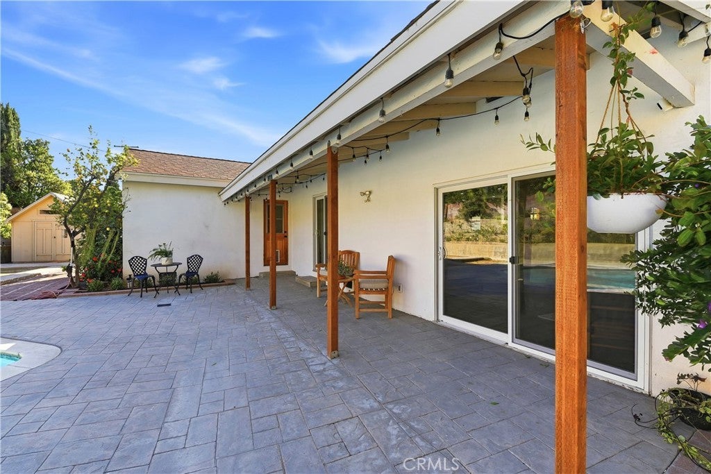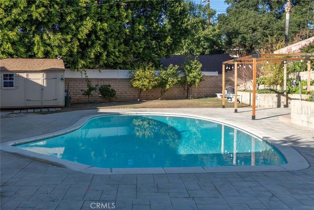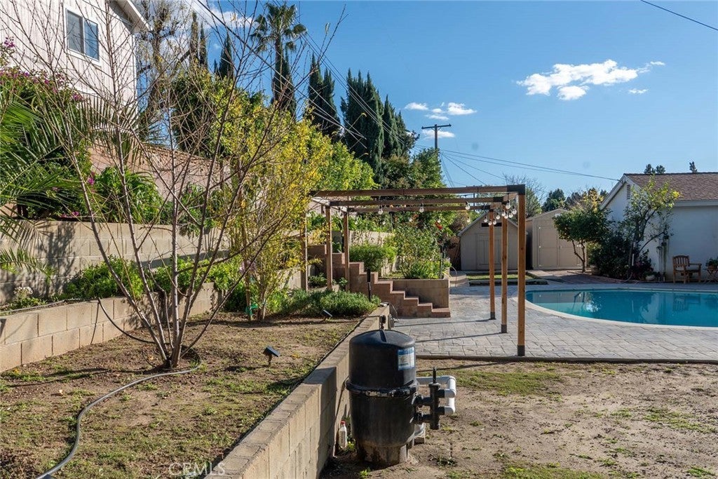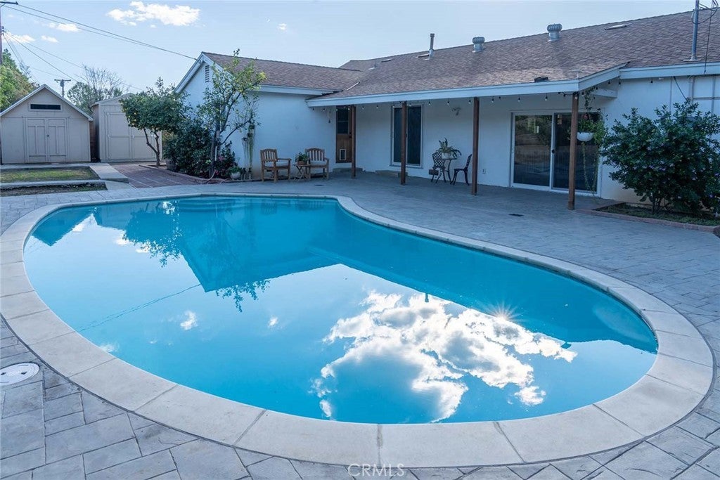 A rare opportunity to own a beautifully updated single-story home tucked away on a cul-de-sac, featuring 1,823 sq ft of living space with an expansive 11,761 sq ft lot. This 4-bedroom, 2.5-bath, with a sparkling pool offers wonderful upgrades with a spacious outdoor setting creating an ideal space for everyday living and entertaining. Step into an open concept living room with a cozy fireplace, dining area, new sliding doors and windows allowing natural light to fill the home. The updated kitchen has quartz countertops, ample kitchen cabinet space, with a large pantry and peninsula seating. Step outside to the completely refinished pool, over 15 fruit trees, and 3 storage sheds for tons of storage. The front yard is freshly landscaped with an automatic sprinkler system. The home is packed with upgrades such as new HVAC, electrical throughout, recessed lighting, new insulation in attic, all new doors including the front door, plantation shutters, exterior stucco and more. This home has been kept within the family for over 60 years and is being offered for the first time. This home reflects years of thoughtful improvements, with room for the next owner to add their own vision. A rare combination of location, lot size, upgrades, shopping, freeway access - this is a home that tells a story and invites the next chapter.