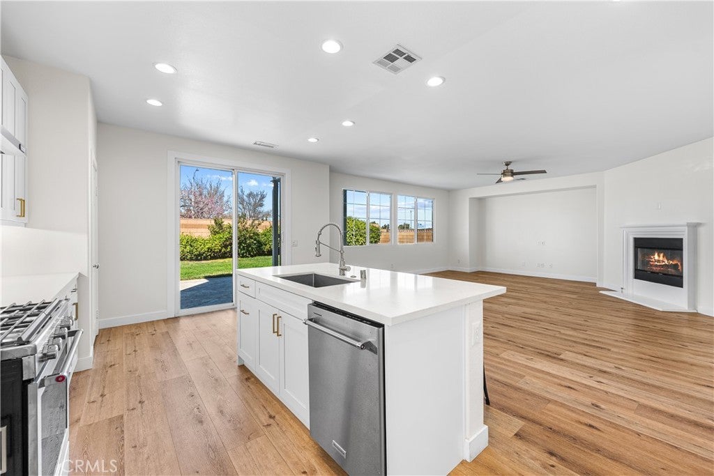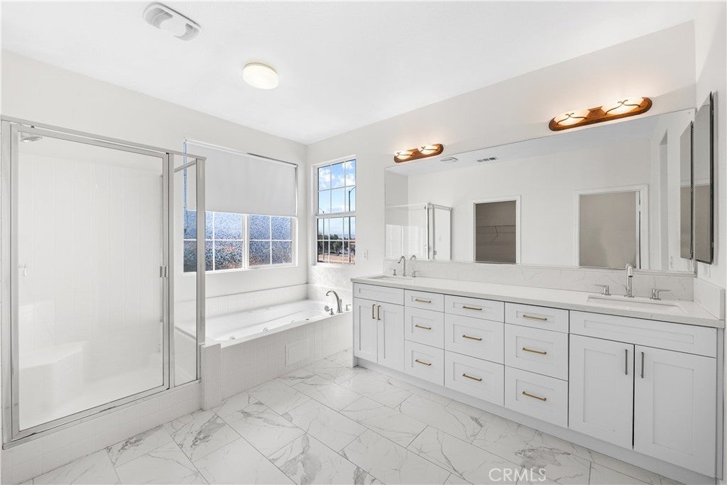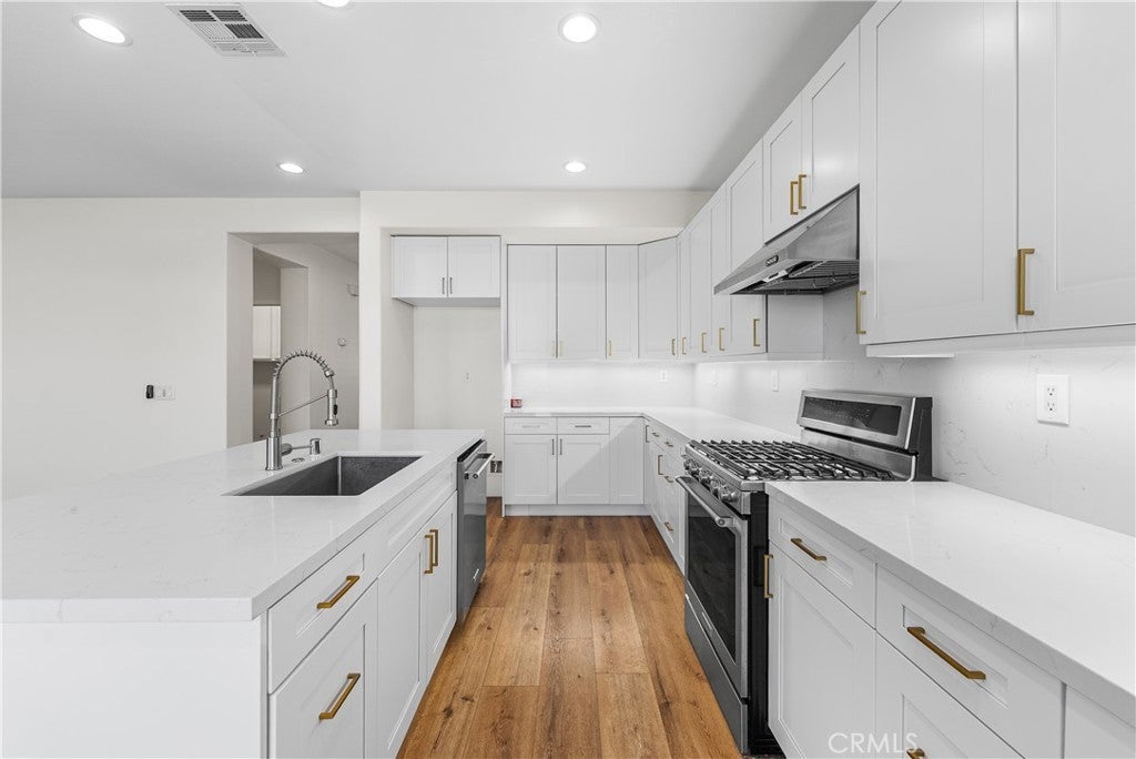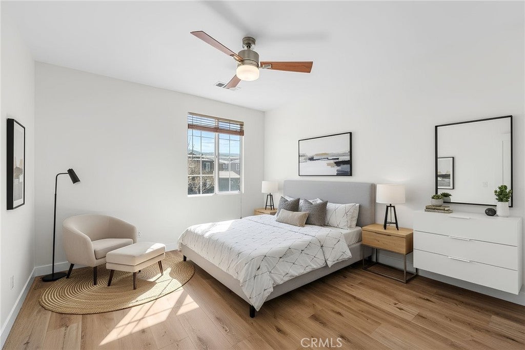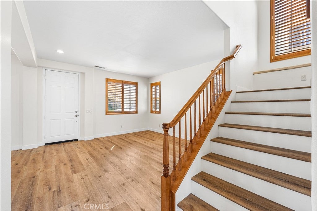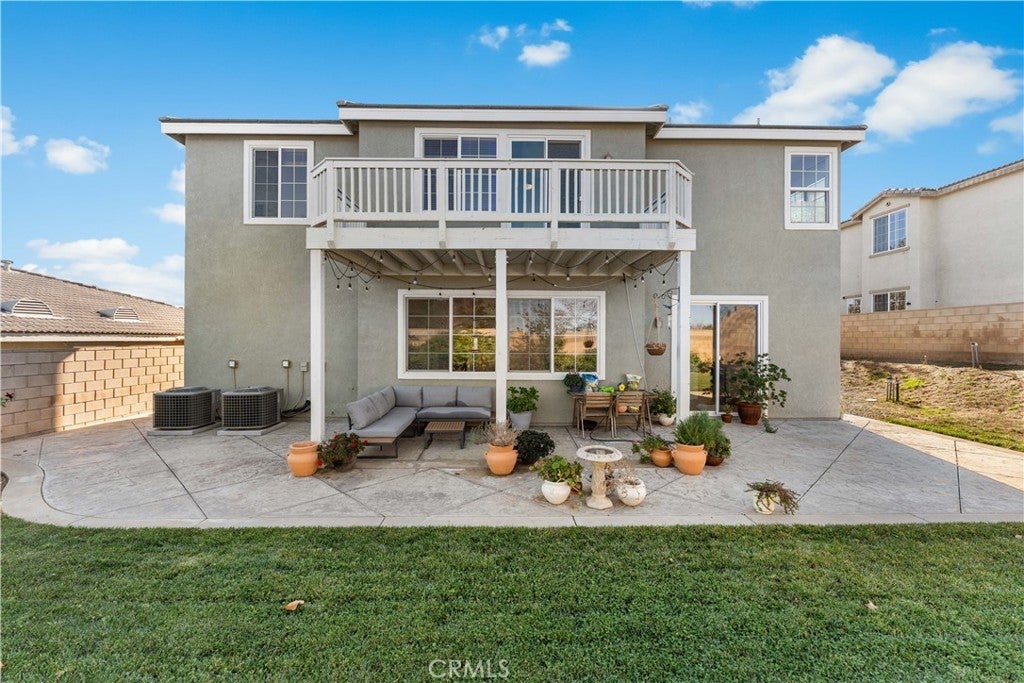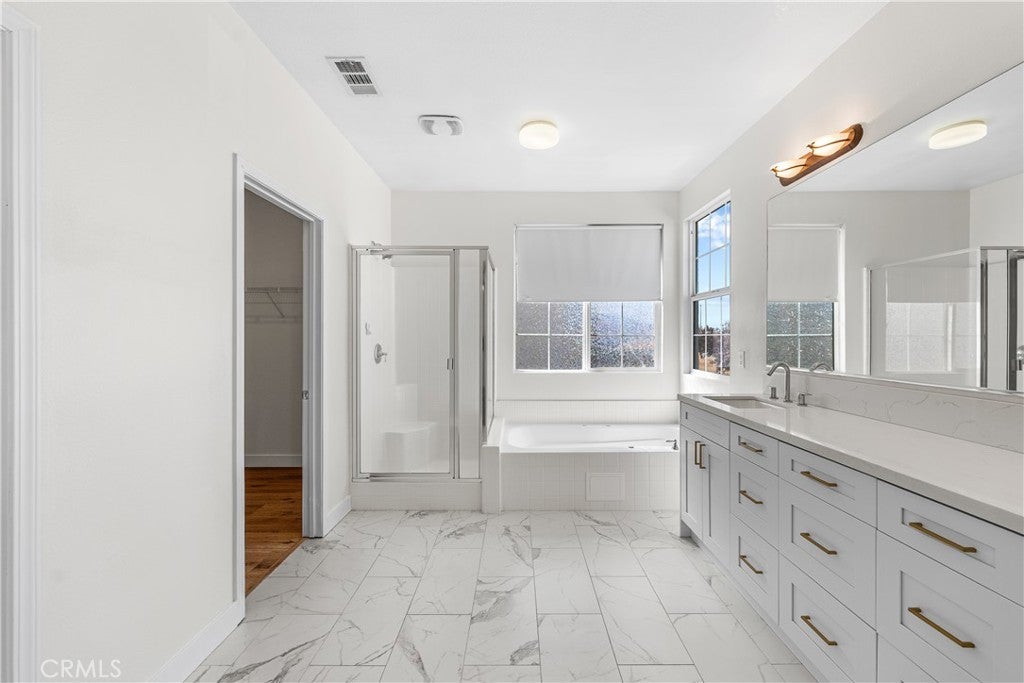 Price Improvement! Fully remodeled West Palmdale two-story home ideally located within walking distance to Greg Anderson Academy, Arnie Quinones Park, and major shopping. No HOA or Mello Roos. This spacious residence offers 2728 Sqft of living space with 4 large bedrooms and 2.5 bathrooms with an open-concept layout and beautiful vinyl wood-style flooring throughout. Plantation shutters, recessed lighting, and ceiling fans in all bedrooms add comfort and style. Enjoy a formal living and dining room, plus a welcoming family room with fireplace that opens to the kitchen. The upgraded kitchen features a large center island with breakfast bar, quartz countertops, ample cabinetry with under-cabinet lighting, a large pantry, and stainless-steel appliances. The primary suite includes a private balcony with scenic town views, a walk-in closet, and a fully updated bathroom with dual sinks, jetted tub, and walk-in shower. Additional highlights include an indoor laundry room with utility sink and storage, dual A/C units, and a 3-car tandem garage. The landscaped front and rear yards provide great outdoor space, with the backyard featuring a stamped concrete patio and a sizable yard--perfect for entertaining or relaxing. Book your tour today!