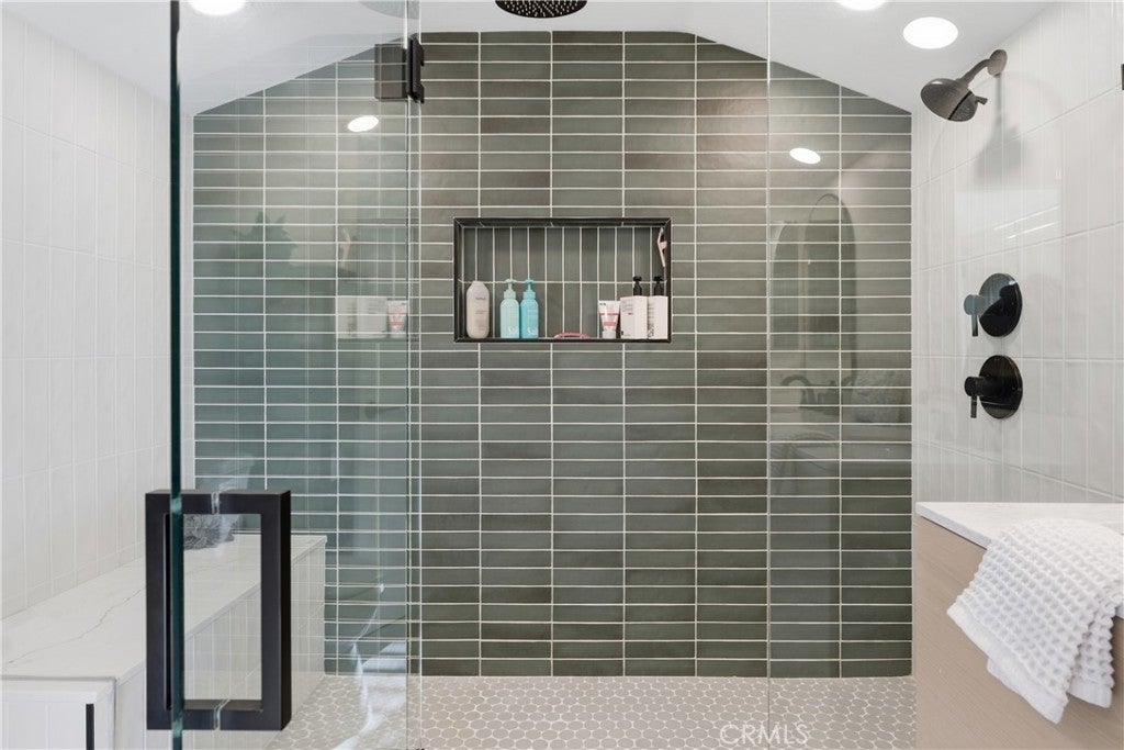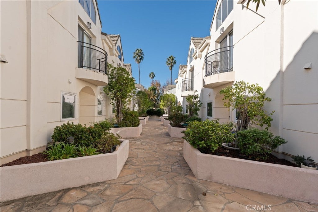 Welcome to Chelsea Court, an exclusive architectural enclave of just 16 residences tucked away in the heart of Sherman Oaks. This beautifully maintained complex features a private courtyard with vibrant landscaping, tranquil water fountains, and charming stone-paved walkways, creating a peaceful and inviting atmosphere. This fully remodeled luxury townhome offers 1,296 square feet of thoughtfully designed living space and showcases a rare private rooftop deck. Inside, the upgraded 2-bedroom, 3-bath residence features a bright and spacious open living area with soaring ceilings, new wood flooring throughout, recessed lighting, and a cozy gas fireplace. Large windows frame lush palm views, filling the space with natural light. The remodeled kitchen is both stylish and functional, complete with granite countertops and stainless steel appliances. Upstairs, the stunning primary suite boasts vaulted ceilings, a private balcony, custom shutters, dual closets, and a beautifully remodeled en-suite bathroom featuring a double vanity and an oversized walk-in shower. The secondary bedroom is equally impressive, offering its own remodeled en-suite bath, high ceilings, and a generous closet. A conveniently located stackable washer and dryer sit just outside the bedrooms for easy access. Additional highlights include two gated subterranean parking spaces with direct individual access into the unit, one of which is fully equipped for an electric vehicle charger. This home is also one of the few units in the community with a private, oversized storage room, perfect for extra belongings. Ideally located with quick access to the 101 Freeway, this highly desirable home is just blocks from Whole Foods, along with popular restaurants, shops, and neighborhood favorites—offering the perfect blend of comfort, style, and convenience.