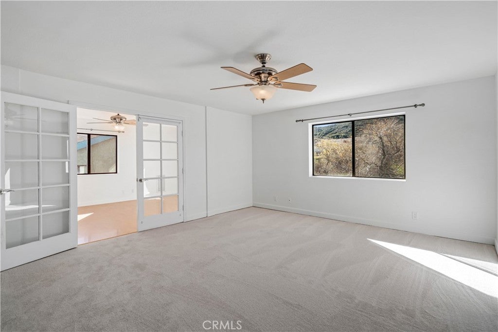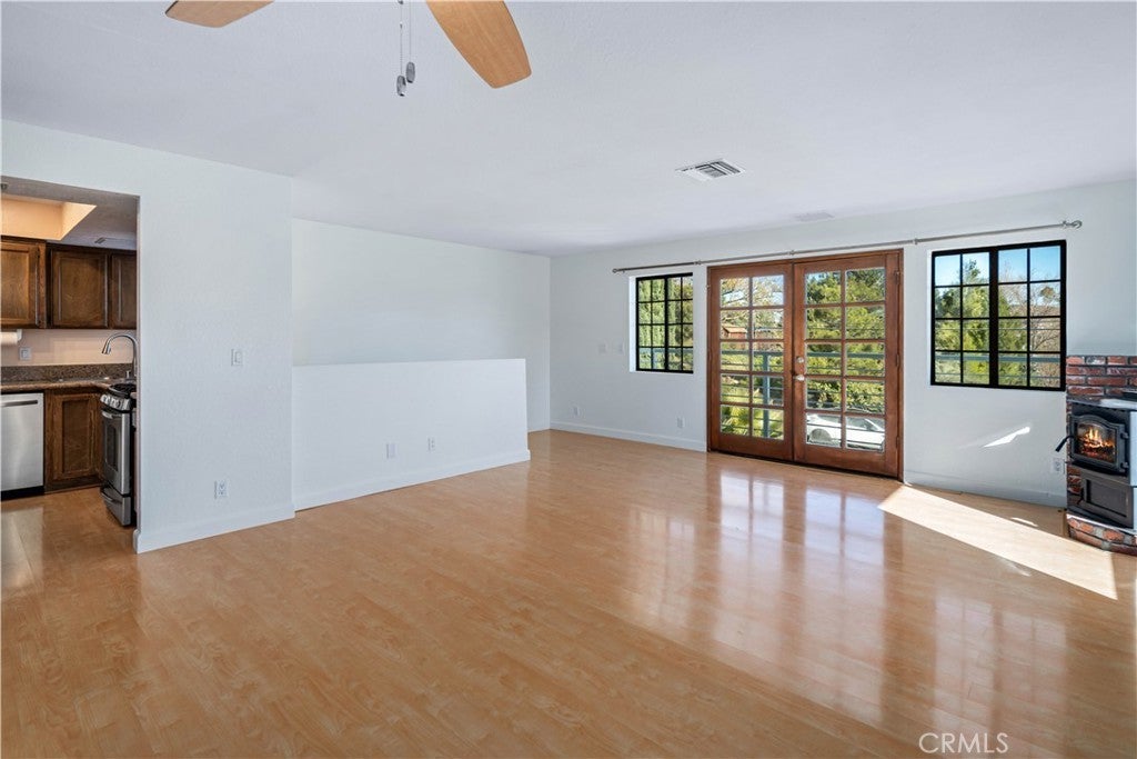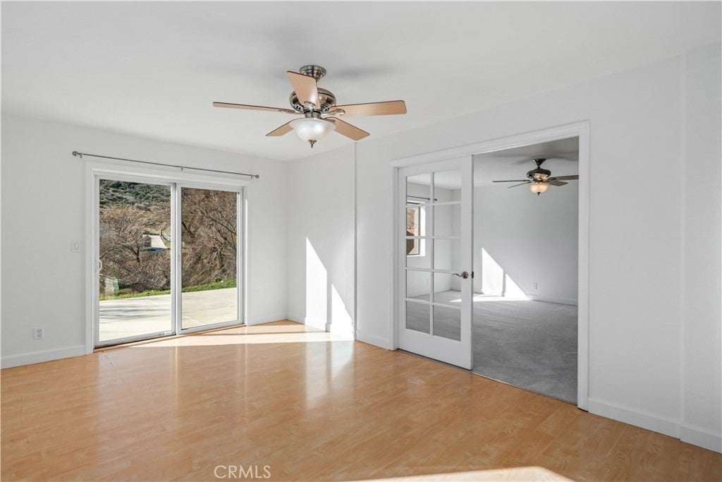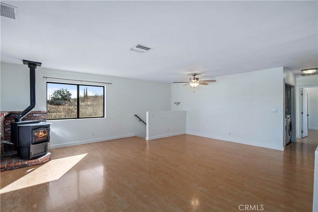 Set in the serene Elizabeth Lake community, this thoughtfully updated two-story home offers 3 bedrooms, 3 bathrooms, 1760 sf of flexible living space, ideal for a variety of living needs. Numerous improvements, including freshly painted interior and exterior, new carpeting, re-sealed windows, tankless high-efficiency water heater, make this home truly move-in ready. The upper level is filled with natural light and features a spacious living room with French doors that open to a balcony showcasing sweeping mountain views. A pellet stove with brick surround, built-in thermostat, and auto ignition provides cozy winter comfort, along w/central air, and evaporative cooling for efficient climate control. Added features include ceiling fans, wood-framed windows, laminate, carpet, and vinyl flooring. The functional kitchen offers granite countertops, stainless steel appliances, (refrigerator, dishwasher, microwave & propane range) and LED lighting. This level also includes one of two primary bedrooms with en-suite bath, a second bedroom and full bathroom, and a convenient laundry nook with washer and dryer included. The lower level functions as a private retreat, featuring the second primary bedroom with full bath, its own family room, multiple storage areas, and sliding doors leading directly to the backyard. This flexible space is ideal for guests, extended family, rental potential, or multigenerational living. Outside, the property features a 2-car attached garage and abundant paved driveway parking, gated RV access & parking, and even wired for an EV charging station (just need to add your charging plug). The deep, fully fenced backyard includes a concrete patio and large aluminum storage shed, while mature palm trees enhance the home's Southern California charm. With its peaceful hilltop setting, versatile floor plan, and beautiful mountain views, this home offers an exceptional blend of comfort, functionality, and rural-mountain living.