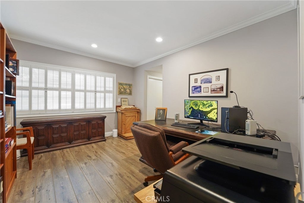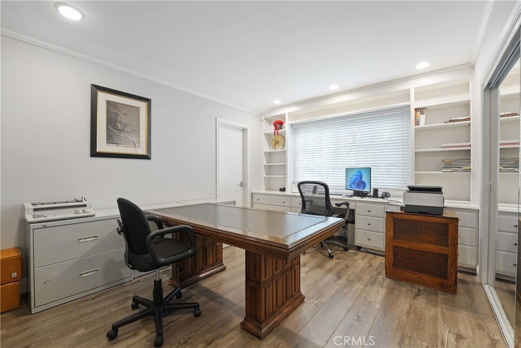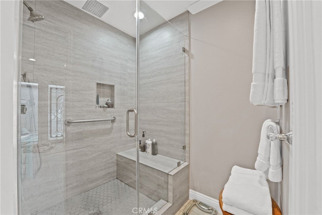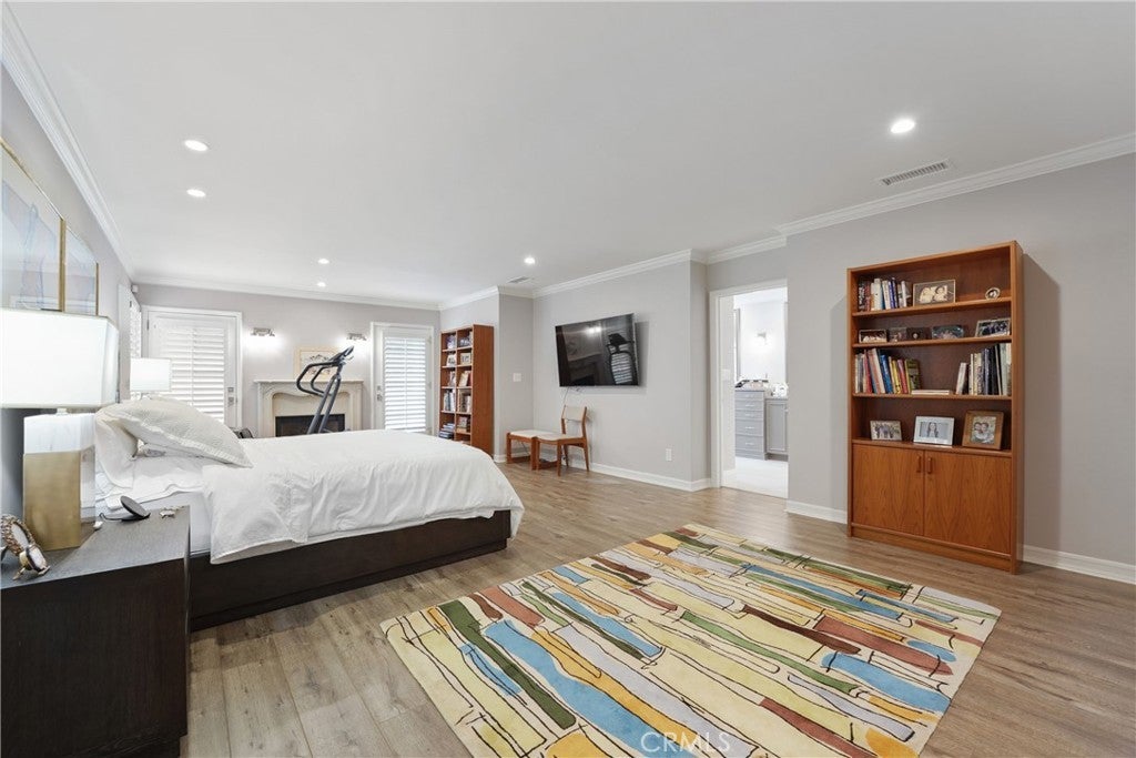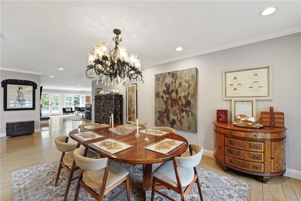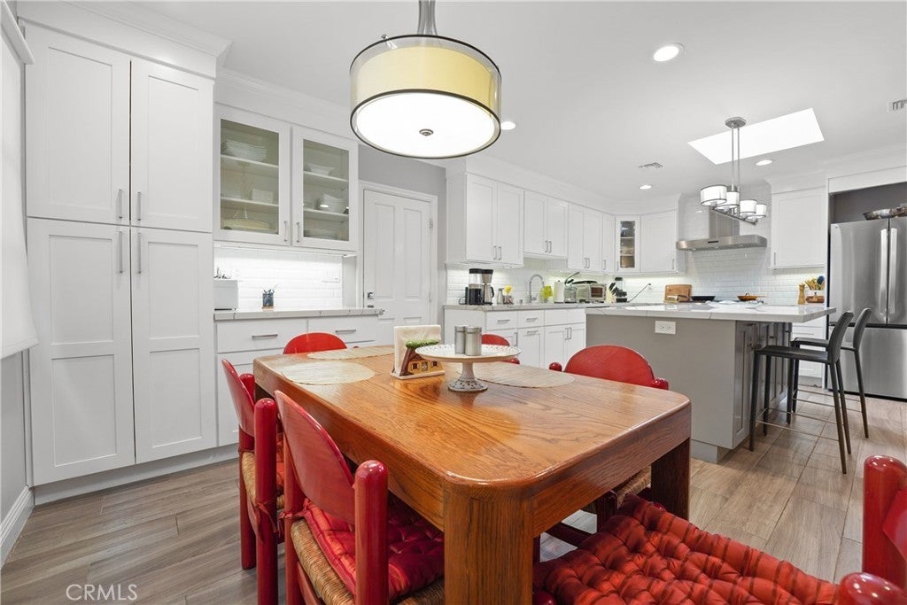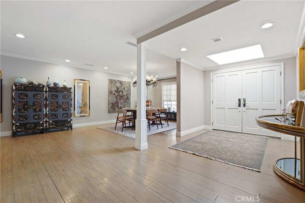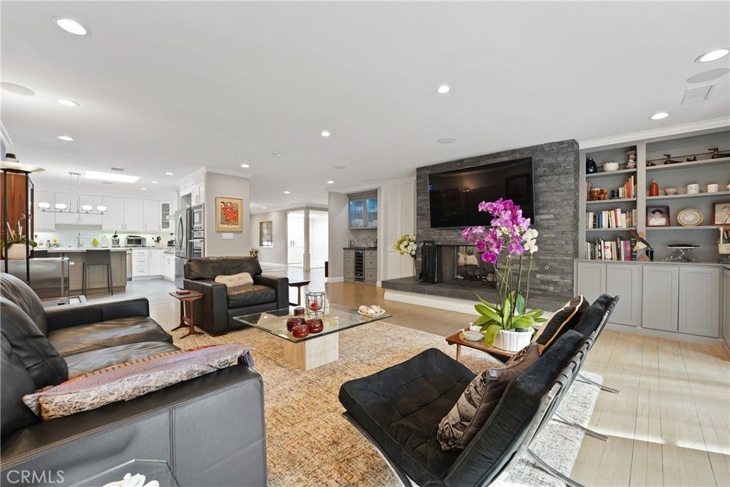 If you’ve been searching for a recently renovated home south of the Boulevard in Tarzana, this stunning 5-bedroom, 4-bath residence offers over 3,900 square feet of thoughtfully designed living space. The light-filled entry, highlighted by the first of many skylights, sets the tone for a home that seamlessly blends timeless elegance with modern style. Designed for entertaining, the expansive formal dining area flows effortlessly into the open-concept living and family rooms, anchored by a striking double sided fireplace and accented by a built-in bar. The chef’s kitchen is both beautiful and functional, featuring high-end appliances, custom cabinetry, a massive island with Carrara-marble-inspired quartz countertops, and ample seating, perfect for cooking, gathering, or casual conversation. The grand primary suite is a true retreat, centered around a romantic fireplace and complemented by an impressive walk-in closet. The primary bath includes a private, enclosed spa room overlooking the backyard, creating a serene space for year-round relaxation. Outdoors, lush landscaping surrounds a gated pool, expansive patio, and covered outdoor kitchen, creating an ideal setting for hosting guests or enjoying every day California living.