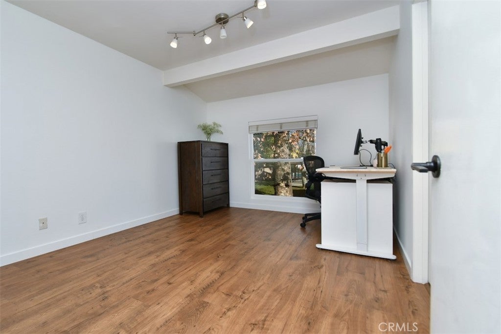 Tucked away in the quietest corner of a secure and gated community, this generously upgraded townhome with an explosive rooftop deck offers an impressive amount of space, storage and lifestyle upgrades! Remodeled kitchen featuring new tile floors, quartz countertops and stainless steel appliances. Separate dining area with ample space for a large table, and an inviting living room with additional space near the entry door for a desk, workout or play area. Half bath and direct access to the full size 2 car garage complete the thoughtfully laid out downstairs. Upstairs hallway provides access to your massive west facing rooftop deck with warm and radiant natural light, complete with BBQ grill and water hookups and is an ideal space for outdoor entertaining or relaxation. The large master bedroom also provides direct access to the deck as well as and an en suite, dual sink bathroom. The second bedroom offers peaceful views of mature trees and landscaping as well as generous closet space. The well-maintained complex features park-like grassy areas perfect for dog walking and mature trees throughout. Community amenities include a heated pool available May through October, as well as a gazebo and picnic tables for outdoor enjoyment. Central AC and Heat, low HOA dues and an ideal location that provides easy access to the coveted Adams Hill and Atwater Village neighborhoods, is walking distance to the world class dining and shopping at the Americana, and is a short drive away from all major freeways and studios.
