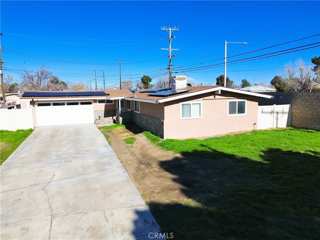 Welcome home to this charming 4-bedroom, 2 bath residence tucked away at the end of a quiet cul-de-sac in a desirable West Lancaster neighborhood. Offering both comfort and peace of mind, this well-maintained home is perfect for families or first-time buyers ready to put down roots. Inside, you'll find laminate flooring throughout and thoughtfully updated bathrooms, creating a clean, modern feel. The home is equipped with four mini-split A/C and heating units for efficient, customizable comfort year-round. Additional upgrades include a brand-new garage door, tankless water heater, water softener, and an installed Level 2 EV charger- adding convenience and long-term value. Step outside to a low-maintenance backyard featuring attractive desert landscaping, vinyl and block fencing, and multiple storage sheds- ideal for extra storage or hobbies with minimal upkeep. With a solar lease helping to manage energy costs and a location that offers both privacy and accessibility, this home checks all the boxes for comfortable, efficient living. Don't miss the opportunity to make this move-in-ready home your own!