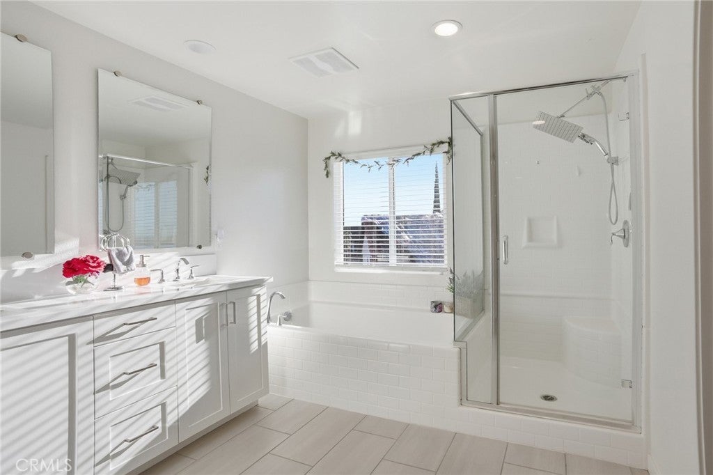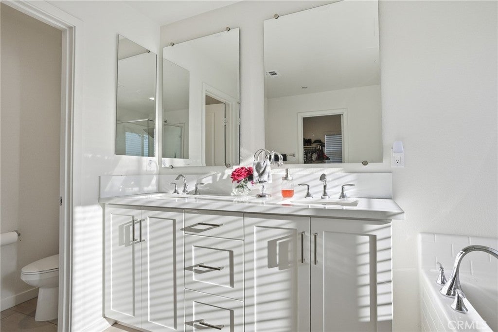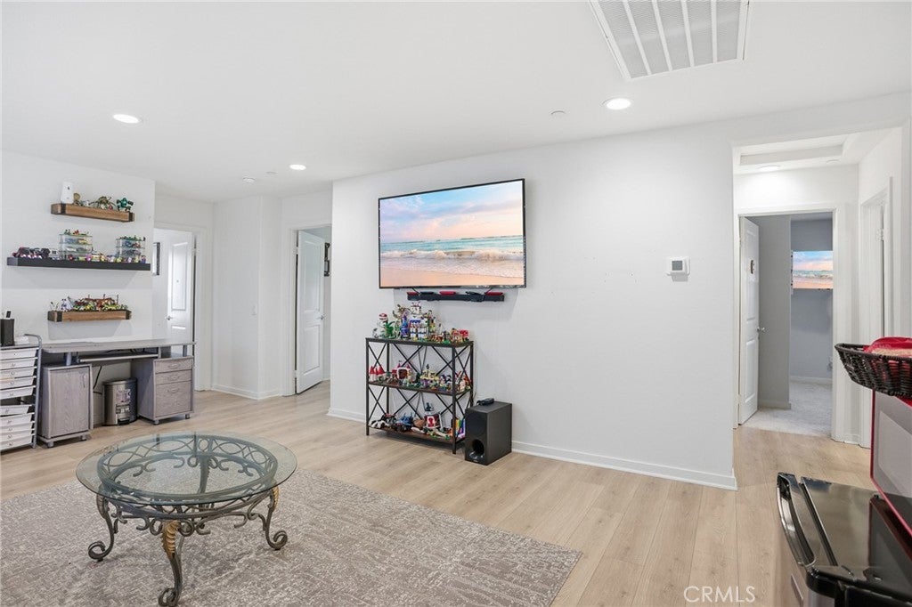 Welcome to this spacious 5-bedroom, 4-bathroom home offering 2,923 sq. ft. of beautifully designed living space in a desirable Quartz Hill neighborhood. Upgraded light fixtures throughout enhance the bright, modern feel, while the smart home system allows you to manage lighting, security, garage door, and cameras through convenient apps. The kitchen features quartz counter tops, a large center island with seating, ample cabinetry, and included appliances. Quartz counters continue throughout all bathrooms for a cohesive, high-end look. A hallway kitchenette with a small sink connects to a private living space with its own entrance, ideal for a mother-in-law suite or ADU. This suite includes a stackable washer and dryer and has separate access to both the front and backyard. The primary suite offers a spacious bedroom and a luxurious bath. Upstairs, a large loft provides flexible space for a family room, office, or game room. A downstairs bedroom with a full bathroom is perfect for guests or multi-generational living. Additional highlights include a tank less water heater, 12 paid solar panels, separate central A/C systems, an electronic file of house materials, and an active new builder foundation warranty. The 3-car garage offers ample storage with possible RV access. The backyard features artificial turf, and both the front and back yards are designed for low maintenance. Conveniently located near shopping, schools, parks, and commuter routes, this home offers space, flexibility, and modern upgrades in one exceptional property.