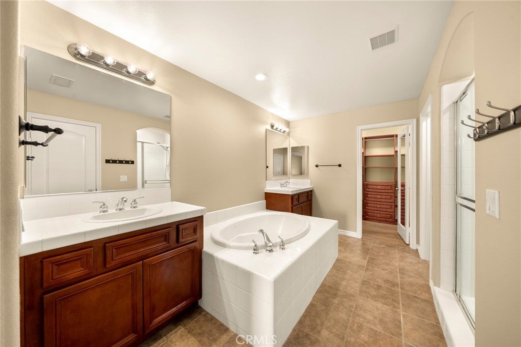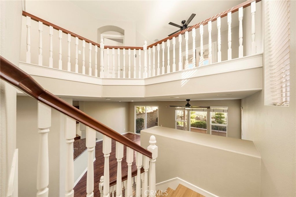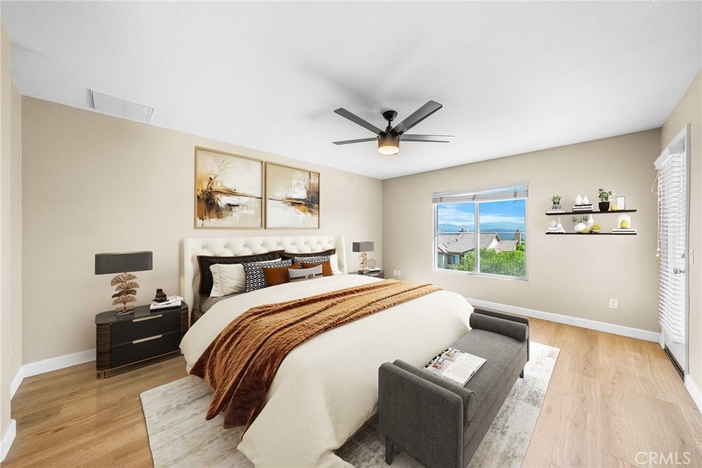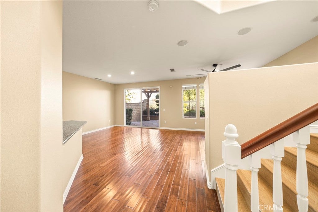 NO MELLO-ROOS TAX | Panoramic City & Mountain Views | Gated Community!!! Welcome to Bella Ventana, an exclusive enclave within the prestigious Westridge TPC Private Golf Community in Valencia. This beautifully upgraded 1,960 sq. ft. 3 bed & 3 bath with a great view, luxury paired home offers an exceptional blend of elegant design, comfort, and resort-style living. Upon entry, you are greeted by an abundance of natural light and hardwood flooring throughout, complemented by new laminate flooring upstairs, new ceiling fans, a custom built-in entertainment center, and a warm, inviting fireplace—perfect for both everyday living and entertaining. The chef’s kitchen is thoughtfully designed with extensive cabinetry, granite countertops, stainless steel appliances, and a brand-new dishwasher, creating a functional yet sophisticated space. The adjacent backyard features a covered patio, ideal for outdoor dining, relaxation, or hosting guests. Upstairs, the primary suite serves as a private retreat, featuring custom closet organizers, a spa-inspired bathroom, and French doors opening to a private balcony showcasing breathtaking views of the Santa Clarita Valley, city lights, and surrounding mountains. Additional highlights include an attached garage with custom cabinetry and epoxy flooring, providing both style and practical storage solutions. Residents of Westridge enjoy an impressive array of amenities, including two Olympic-size swimming pools and spas, tennis and basketball courts, upcoming pickleball courts, a clubhouse for private events, and a community park with picnic areas, barbecues, and a playground. Families will appreciate the home’s walking-distance access to three top-rated schools and convenient proximity to the I-5 freeway. A unique advantage of the Bella Ventana community is that the HOA includes earthquake insurance, a rare and valuable benefit not commonly found elsewhere. This is more than a home—it’s a lifestyle opportunity in one of Santa Clarita’s most sought-after communities. Schedule your private showing today and experience the best of Westridge living.
