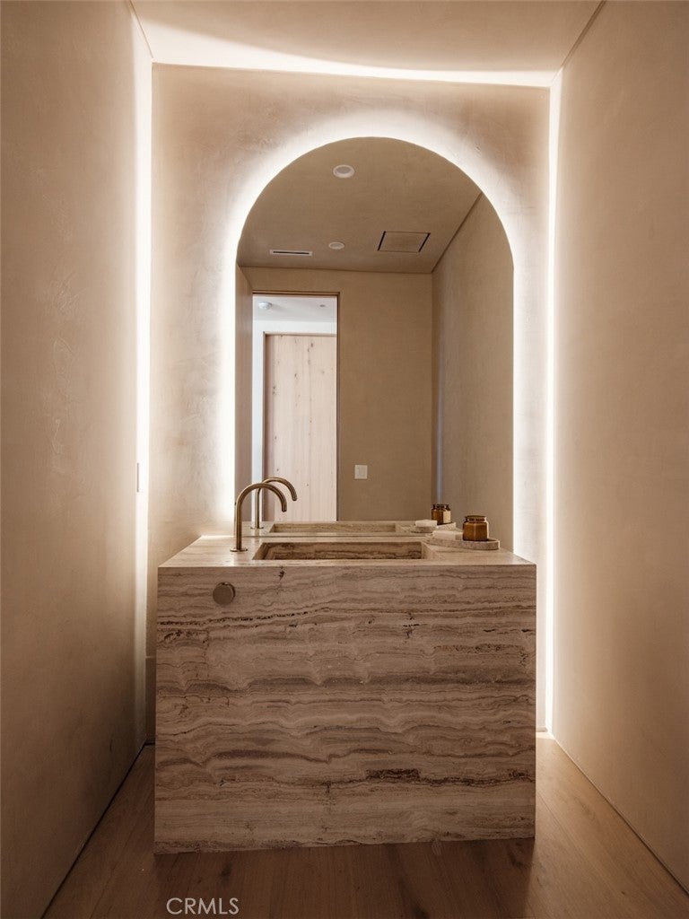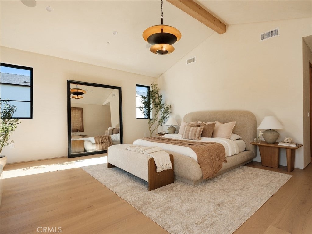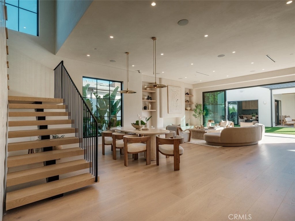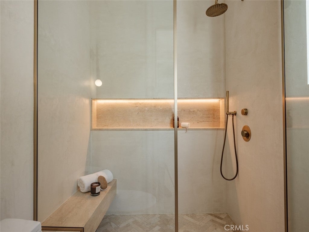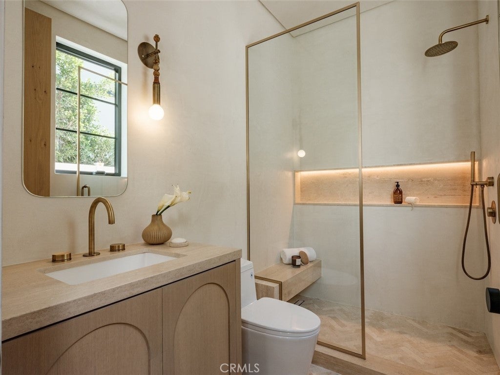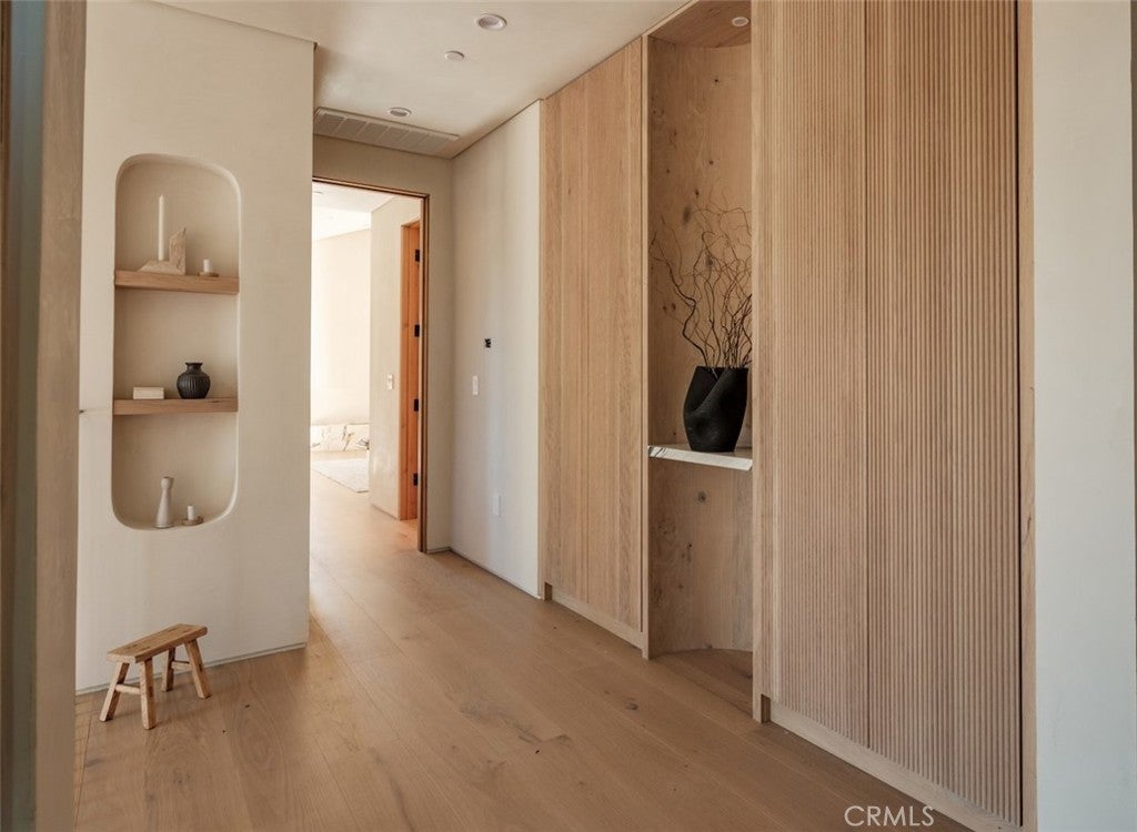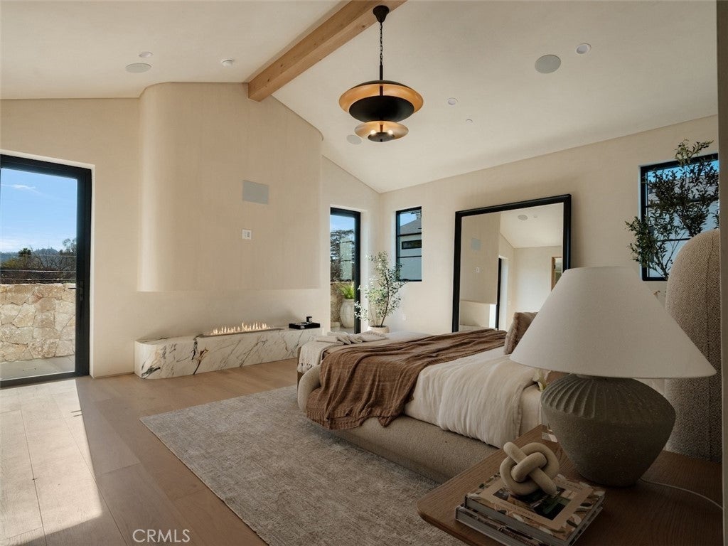 Introducing this breathtaking, one-of-a-kind home that blends sculptural architecture with warm organic materials for a serene, modern living experience. This custom-built home is situated within the highly esteemed Colfax Charter School District. Boasting 5BD/5.5BA, the property also includes a spacious casita offering open living space with an additional bedroom and bathroom. Upon entering the home, you’re welcomed by hand plastered walls, curved aesthetics, and continuous wide-plank oak flooring that guides you through sun-filled spaces. The chef’s kitchen is an organic showcase, centered around a gently rounded island, sculpted curved ceiling, rustic oak cabinetry, marble countertops, high-end appliances, and a walk-in pantry. The expansive family room features a sculpted fireplace wrapped in hand-finished brushed plaster and rustic curved shelving that enhances the warmth and texture of the space. Large sliding doors create a seamless transition between indoors and outdoors, revealing a resort-like sanctuary with a shimmering pool, spa, covered patio with a seating area and fireplace, and an outdoor cooking area, surrounded by lush greenery for ultimate privacy. The lower level features a cozy movie theater, an ensuite guest bedroom, and a powder room. Upstairs, the primary suite becomes a retreat of its own, boasting a softly rounded fireplace, a generous walk-in closet, and a large balcony with views of the tranquil, tropically landscaped yard. The spa-inspired primary bathroom offers a soaking tub, walk-in shower, and dual vanities finished in micro-cement and natural stone. Three additional ensuite bedrooms and a large laundry room complete the upper level. Enhanced with premium features including Control4 smart technology, whole-home surround sound, a security system with cameras, and energy-efficient solar panels, this home is both luxurious and thoughtfully connected. Located in the highly coveted community of Valley Village.