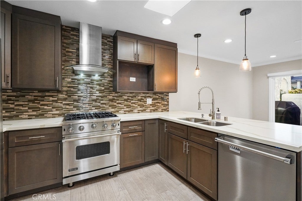 Redone 1 Story unit. Feels Like a House. Only 1 Common Wall. No One Above or Below. Stunning Gourmet Kitchen with Viking Stove. 3 Bedrooms, 2 Baths, just across the Street from the Lake, Shops & Restaurants. Open Floor Plan. Great Patio !! The Home Features Hardwood Floors, LED Recessed Lighting, Duel Pane Windows & Doors. Central Air & Heat. Private 2 Car Garage. Huge Primary Suite with Sitting Area, Double Vanity Bath, and Large Walk in Closet. Washer & Dryer in Unit. Community Pool & Spa.