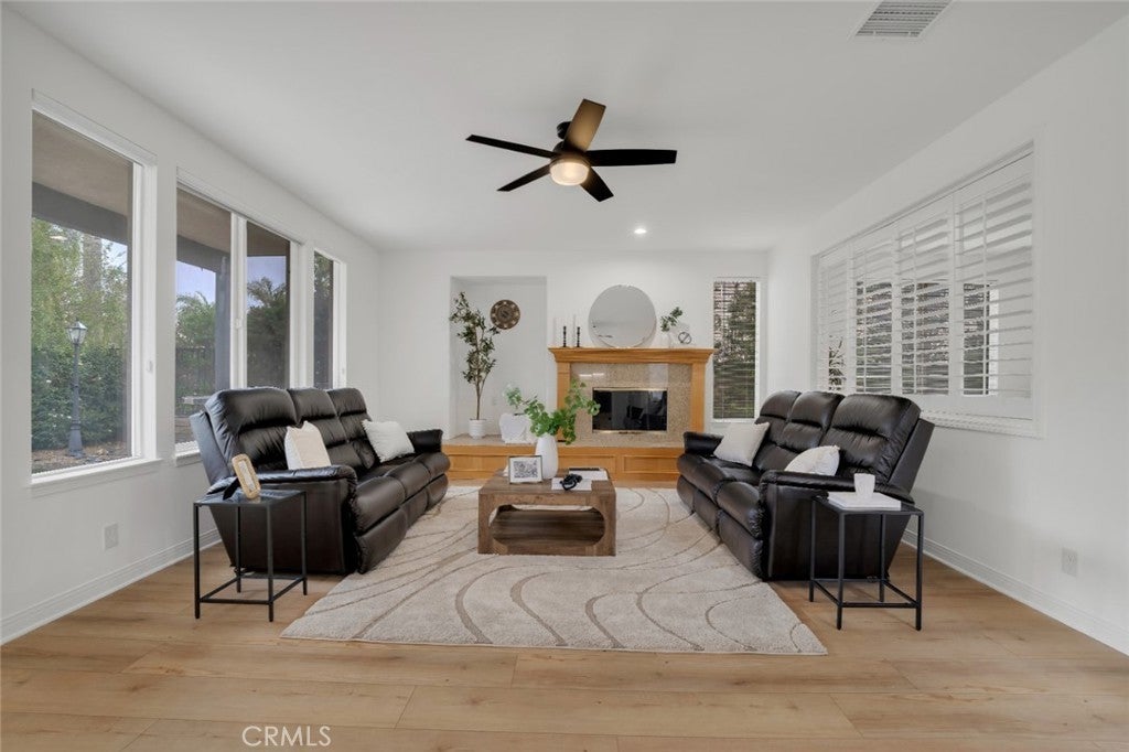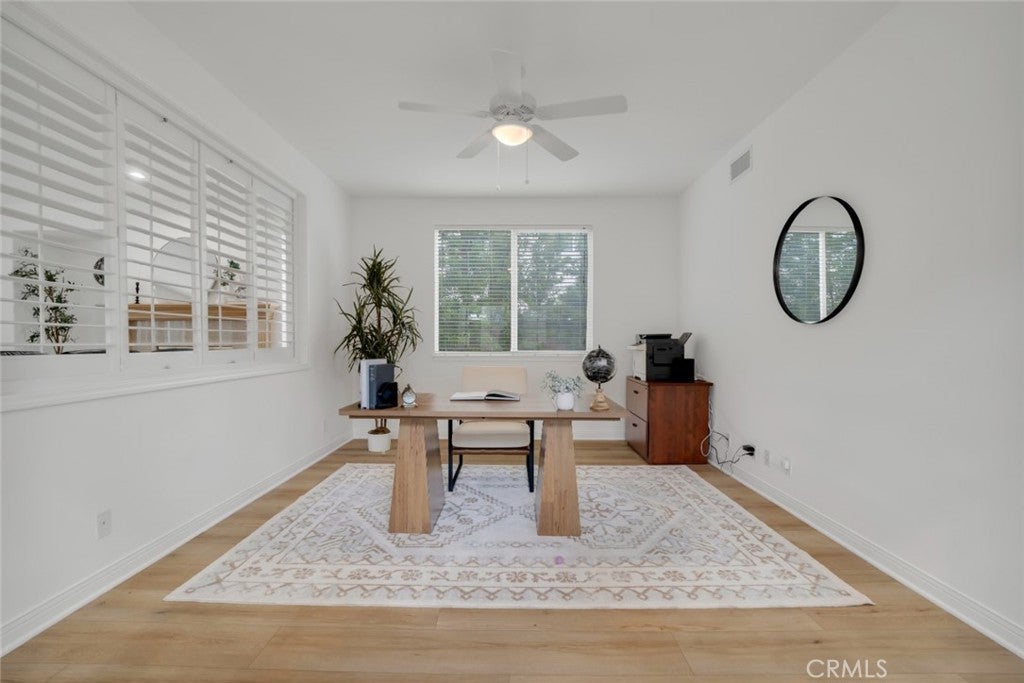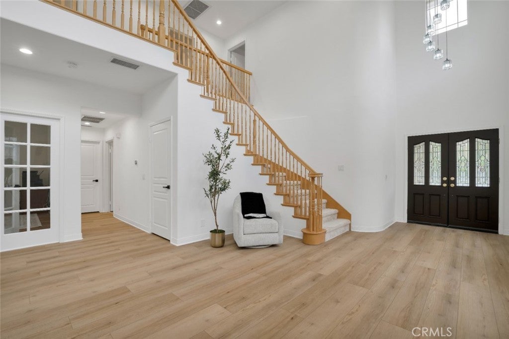 Set within the prestigious, gated Villagio Estates in Porter Ranch, this beautifully maintained two-story 4 bed, 4 bath + den residence offers an exceptional blend of refined living, thoughtful updates, and the security and exclusivity of a controlled-access community. Spanning approximately 3,300 square feet, the home reflects a high level of care and pride of ownership, with attractive architecture, stacked stone accents, and a welcoming formal entry that immediately conveys quality and sophistication. Step into soaring two-story ceilings, abundant natural light from clerestory windows, and striking new lighting fixtures that highlights the openness of the formal living/dining space. Fresh paint, new flooring throughout the house, newly remodeled kitchen, new bathroom fittings, lighting fixtures, door hardware, kitchen appliances and so much more! The home’s thoughtful upgrades and high-end finishes reflect meticulous care and pride of ownership throughout. French doors open to a private office or den with a plantation shuttered passthrough to the adjacent family room, which could be converted to act as an additional bedroom if desired. The inviting informal living space has a cozy, raised-hearth fireplace and seamlessly flows into the stunning kitchen. Beautifully appointed with two tone shaker cabinets, white quartz countertops, marble backsplash, brand-new stainless-steel appliances, and convenient central island. The adjoining, sunny breakfast nook has both breakfast bar seating and room for informal dining surrounded by windows. Upstairs, the generous bedroom layout includes well-sized bedrooms, a full Jack-and-Jill bath, a secondary en-suite bedroom with walk-in closet and ¾ bath, and a spacious primary suite featuring vaulted ceilings, French doors to a private balcony with hillside views, dual walk-in closets, and a luxurious en-suite bath with jacuzzi tub, oversized glass shower, dual sinks, and vanity area. The outdoor space offers a wide patio, built-in BBQ, and a decorative pond with smartphone operated waterfall feature, creating a serene setting for entertaining or quiet evenings. Set within a controlled-access community close to shopping, dining, parks, and top-rated schools, this move-in-ready home delivers generous scale, refined finishes, and the confidence of a residence that has been carefully maintained and tastefully designed for comfort, quality, and long-term enjoyment. Don’t miss this one!