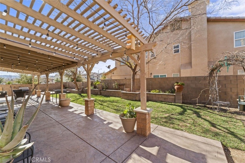In a quiet, family-friendly West Lancaster neighborhood, this corner-lot home is ideal for a large family. Built in 2005, it offers nearly 3,000 square feet of modern living. Enter through double doors into a bright space with high ceilings and crown molding. Engineered wood floors flow through the formal living, formal dining, and family rooms, with sliding doors to the backyard. The spacious kitchen showcases granite countertops, abundant cabinetry, a central island with bar seating, and stainless appliances—including a double oven and vented hood—opening to a family room with a fireplace. Downstairs offers a private guest suite; upstairs, a loft, primary suite, and two more bedrooms. Outside, a stamped concrete patio, grassy area, raised brick flower beds with an irrigation system, a partially covered pergola, and a concrete pad ready for a gazebo or lounge area. The three-car garage is right out front. Near shopping, AV College, and the freeway, this move-in ready home is priced to sell!