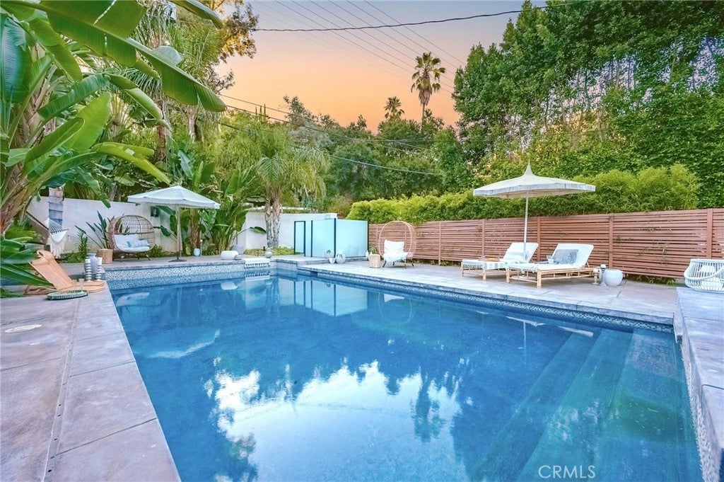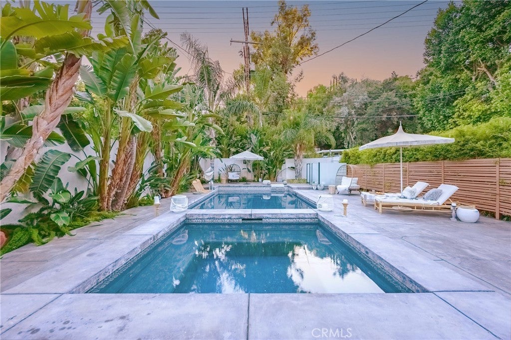 Tucked away, just south of the Boulevard in prime Woodland Hills, sits this California Luxury Dream Hideaway, where California allure meets Bali enchantment. This secluded retreat boasts a gated property with lush greenery and a stunning saltwater pool and spa. This home features elegant living areas and a remodeled kitchen dressed with quartz counters, new cabinetry and stainless steal appliances. Upstairs, find three bedrooms, including a primary suite with a spa jet tub. This home also features a fully equipped guest house which includes a full kitchen and bath. Experience the epitome of luxury living in this serene escape. Conveniently located near Woodland Hills golf course, Ventura Boulevard, Topanga Mall, The Village, many shops and restaurants, 101 and 405 freeways. This home is available for long or short term rent and can come furnished or unfurnished. The owner pays for pool and gardening Services. Charging station available for electric cars.