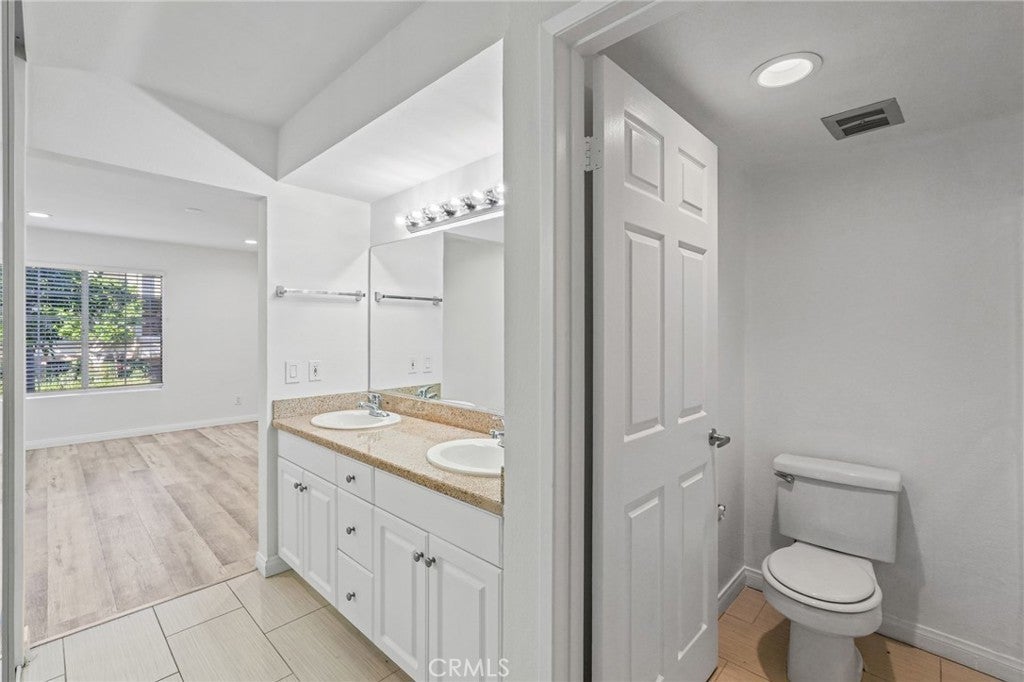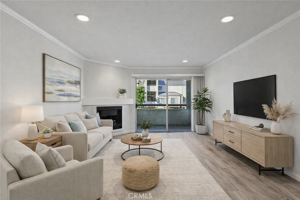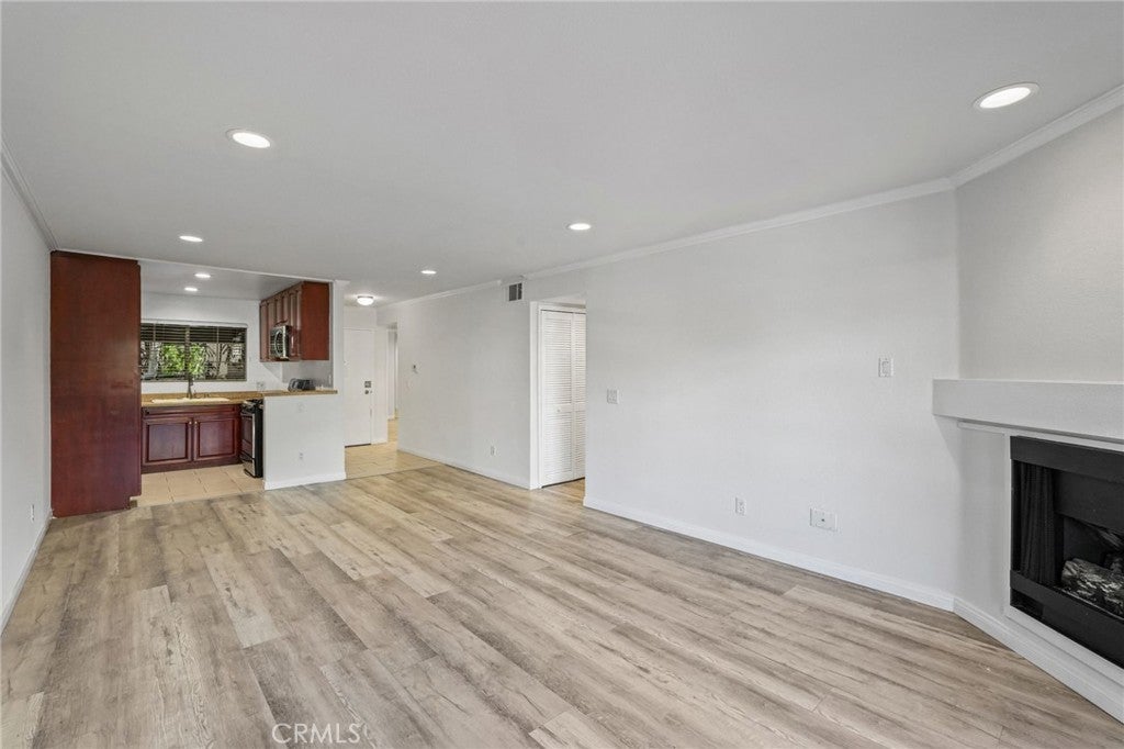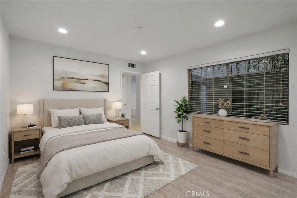 Experience elevated, resort inspired living at The Met in Warner Center, where privacy, light, and convenience come together seamlessly. This beautifully maintained 2 bedroom, 2 bathroom residence is located on the first floor of Building 2 and enjoys a desirable west facing orientation, filling the home with warm natural light throughout the day while offering easy access to the community’s premier amenities. The thoughtfully designed floor plan creates a natural sense of separation and flow. A secondary bedroom and full bathroom are positioned near the entry, ideal for guests, a home office, or flexible living, while the primary suite is privately situated toward the rear of the home. The spacious primary retreat overlooks tranquil exterior surroundings and features a well appointed en suite bathroom with updated tile flooring, dual vanities, and a generous walk in closet. Refined finishes enhance both style and comfort, including luxury vinyl plank flooring throughout, recessed LED lighting, a gas fireplace anchoring the living space, and a kitchen appointed with granite countertops and stainless steel appliances. A dedicated dining area offers the perfect setting for hosting while remaining open to the living room and outdoor space. Sliding doors lead to a peaceful west facing balcony, ideal for outdoor dining, relaxing evenings, or enjoying the Southern California climate year round. Additional conveniences include an in unit washer and dryer and two covered parking spaces, both located close to the lobby elevator for everyday ease. Residents of The Met enjoy an exceptional array of amenities, including 24 hour guard gated security, multiple resort style swimming pools, lighted tennis courts, a full fitness center, racquetball and indoor basketball courts, and several spas, all set within lush, well maintained grounds. Perfectly positioned just moments from The Village, Warner Center Park, and a vibrant mix of dining, shopping, and entertainment, this home offers a rare blend of lifestyle, comfort, and location in one of the Valley’s most sought after communities. Some images have been virtually staged or digitally enhanced and are clearly labeled as such. Virtual alterations are intended for illustrative purposes only and may not reflect the property’s current condition. Buyers are advised to independently verify all information and features.