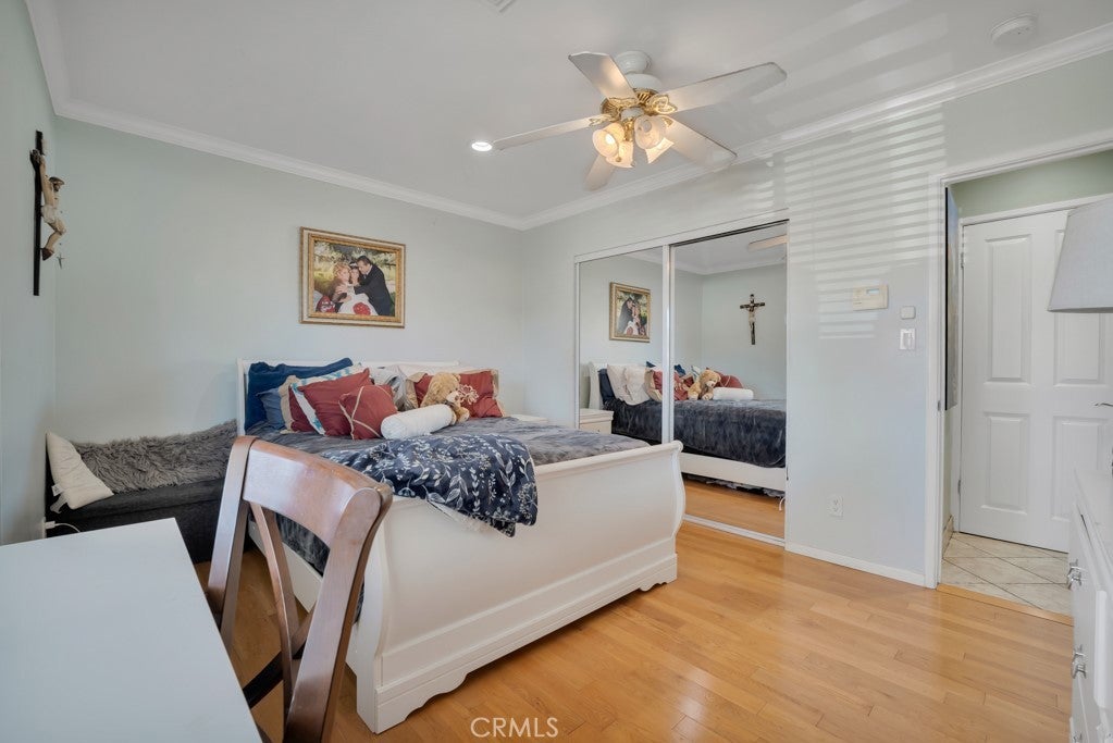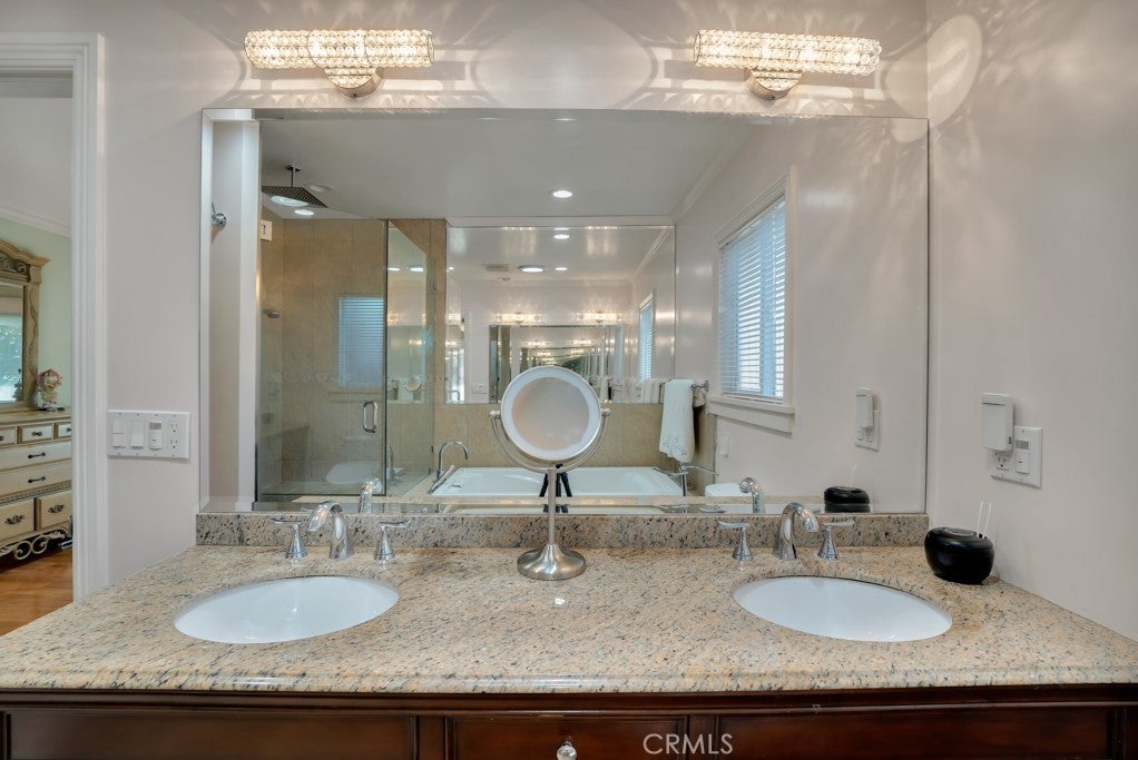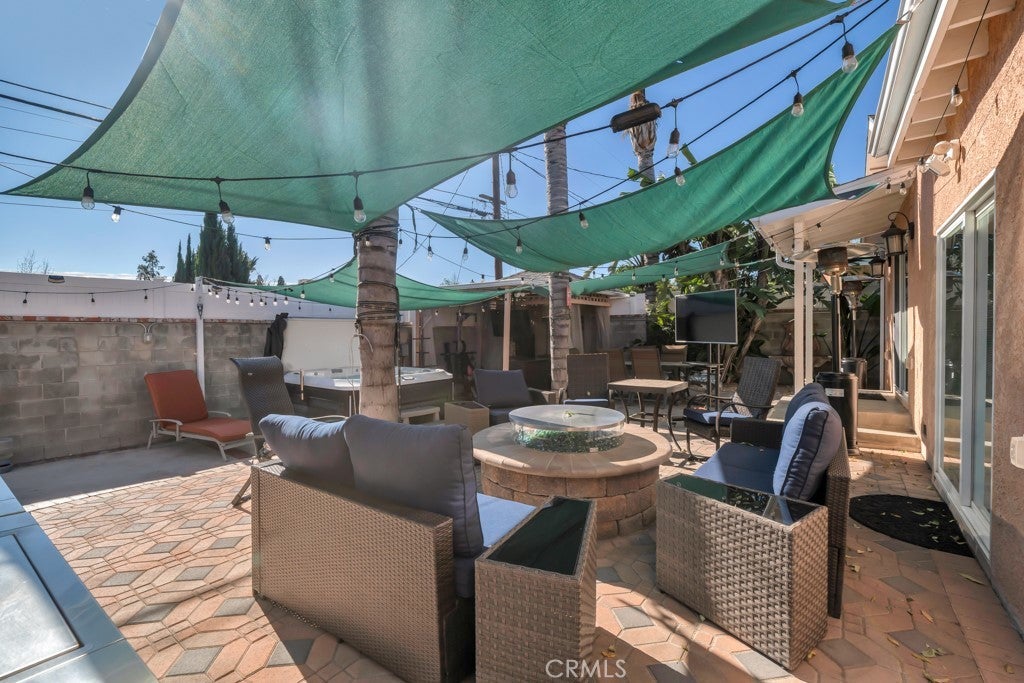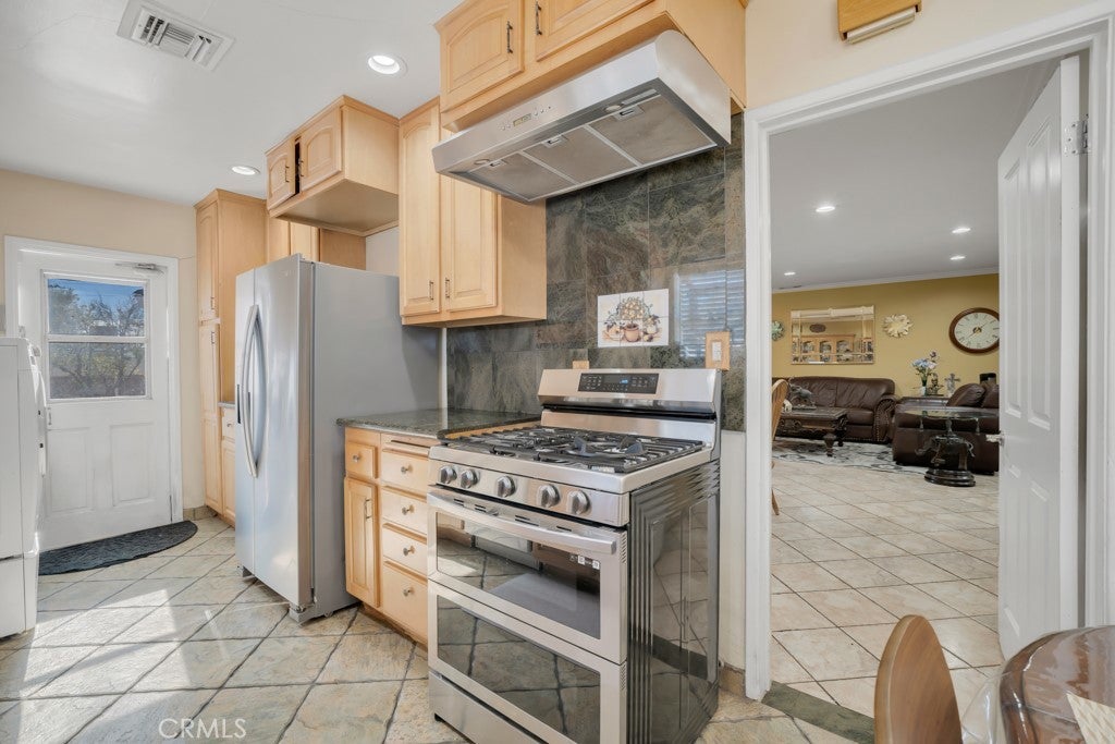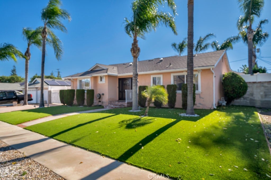 Welcome to this wonderful Granada Hills home in a highly desirable family neighborhood. The front yard features an upgraded turf grass with outdoor plugs and timers. The spacious living room has a cozy floor to ceiling marble fireplace with raised hearth, wood mantle, recessed lighting, easy care tiled floors and is conveniently open to the dining room and family room with lighted ceiling fan. The family's chef will love the remodeled kitchen with ample cabinets and counter space along with granite counters and backsplash, gas range, vent hood, dishwasher, recessed lights, large single stainless-steel basin and convenient breakfast nook with lighted fan. The large primary bedroom suite with direct access to the backyard has wood floors, crown molding, recessed lights and a lighted ceiling fan, walk-in closet and private bathroom with separate jetted tub, shower and vanity with dual sinks, granite counters and tiled floors. The large secondary bedrooms have ceiling fans and crown moldings. Some of the home’s many amenities include central air and heat for year-round comfort, double pane windows, wood and tiled flooring, copper plumbing, newer roof, tankless water heater, upgraded 200 AMP electric, and an office room, which has access to the entertainer's backyard and is equipped with high quality cabinets. There is a convenient inside laundry room. Your family will spend countless hours enjoying the entertainer’s backyard with a soothing fountain, spa tub, firepit area for BBQ and gym equipment. There is a 2-car detached garage with secure parking for multiple cars on the large paver driveway with electric gates. Close to parks, shopping and restaurants with easy access to freeways and transportation.