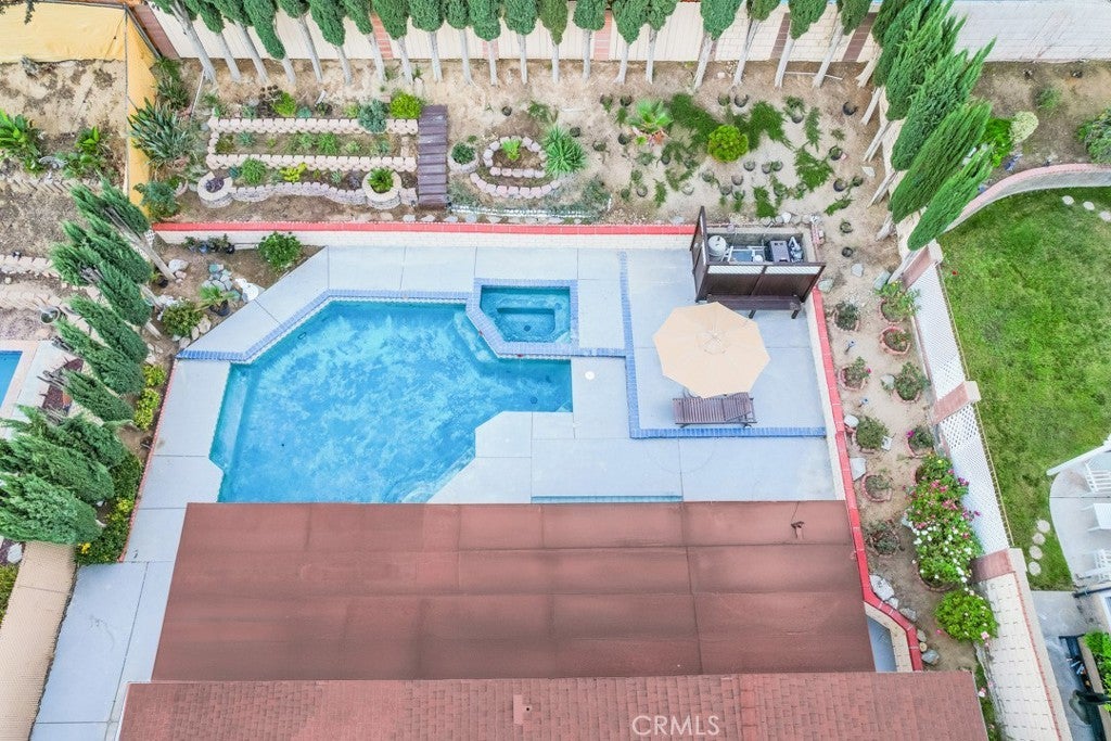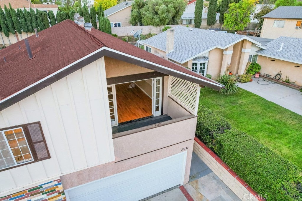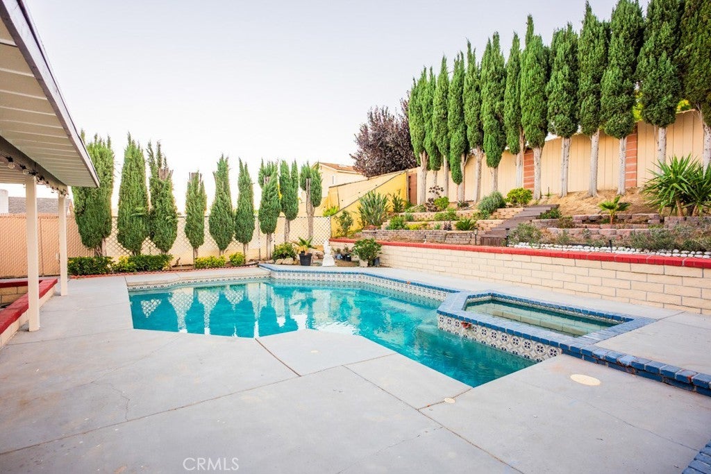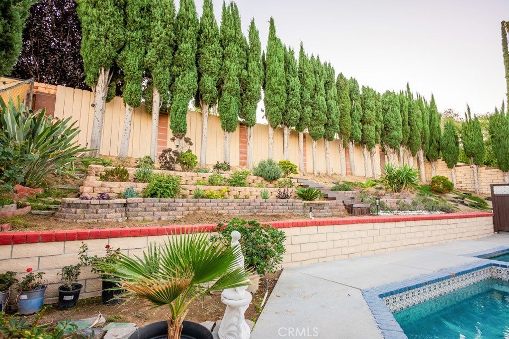 HURRY UP BEFORE IT'S GONE! NEW HVAC SYSTEM!! Downstairs Bedroom and bathroom two story home in the highly desired Monteverde tract of Valencia, a rare gem in prime location! This beautifully upgraded residence sits on a private elevated lot surrounded by mature cypress trees, offering full backyard privacy and a peaceful atmosphere. Inside, you'll find a spacious living room with a classic brick fireplace and large diamond-paned windows that fill the space with natural light. The upgraded kitchen features granite countertops, stainless-steel appliances, rich cabinetry, and a charming dining area overlooking your sparkling backyard oasis. Upstairs, the primary suite offers dual French door to a private balcony, a walk-in closet, and a dual-sink vanity with a standing shower. Additional bedrooms are spacious and bright, with plenty of flexibility for family or guests. The entertainer's backyard is a true escape — featuring a sparkling pool and spa. The front garden, elevated above street level, creates a sense of tranquility and total privacy from the moment you arrive. With a new HVAC system, no HOA or Mello Roos, and proximity to top schools, parks, and restaurants, this home offers the best of Valencia living. Make this your new home before it's gone!