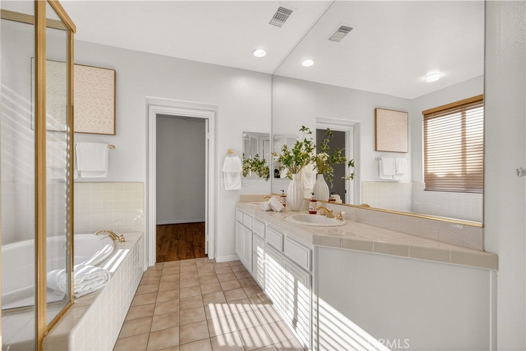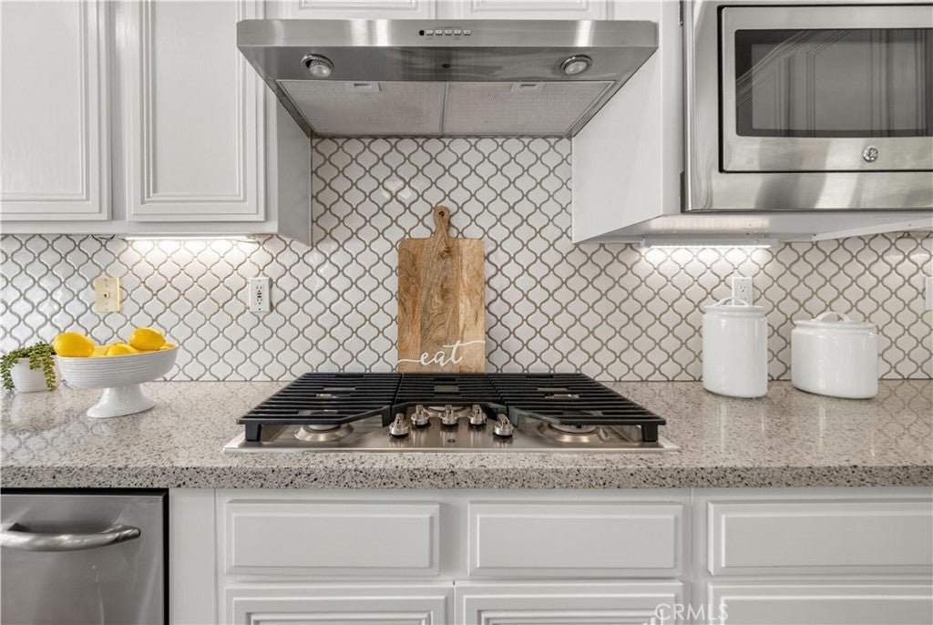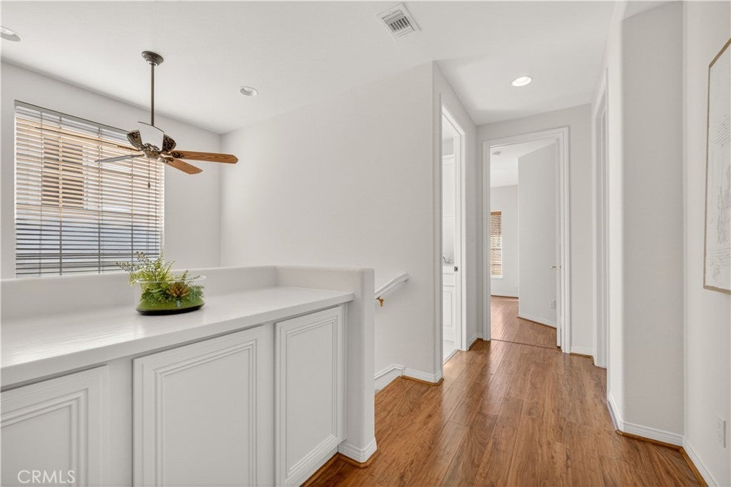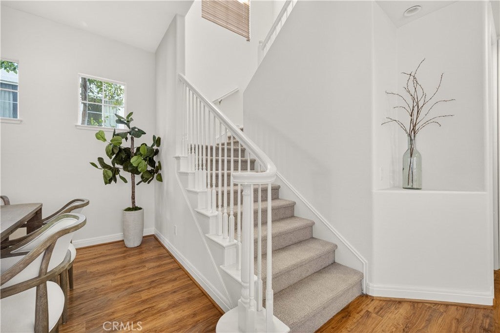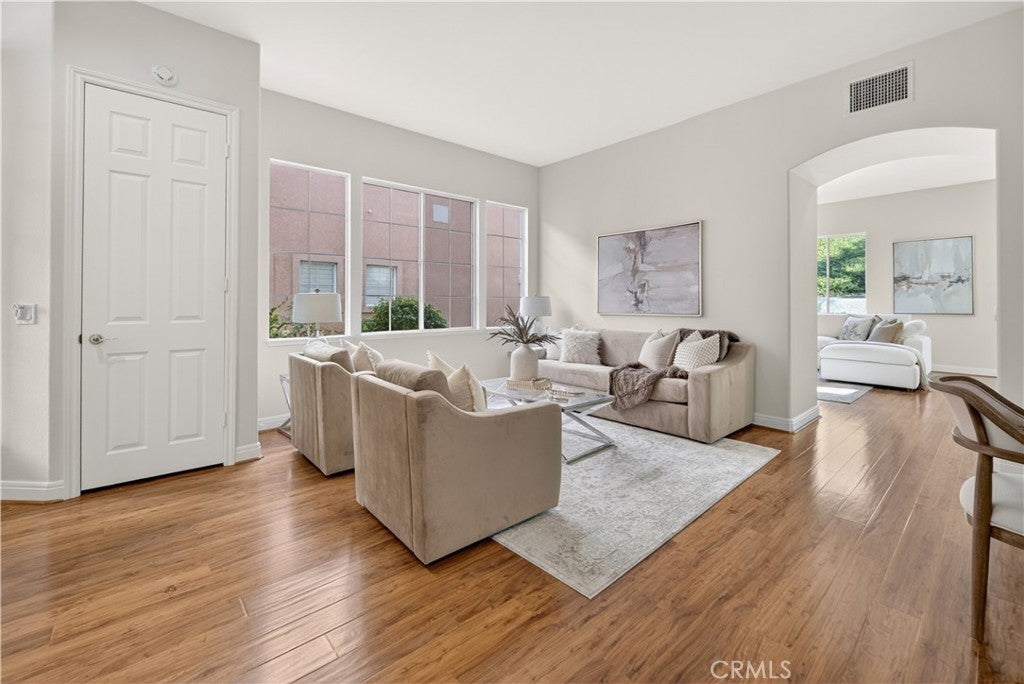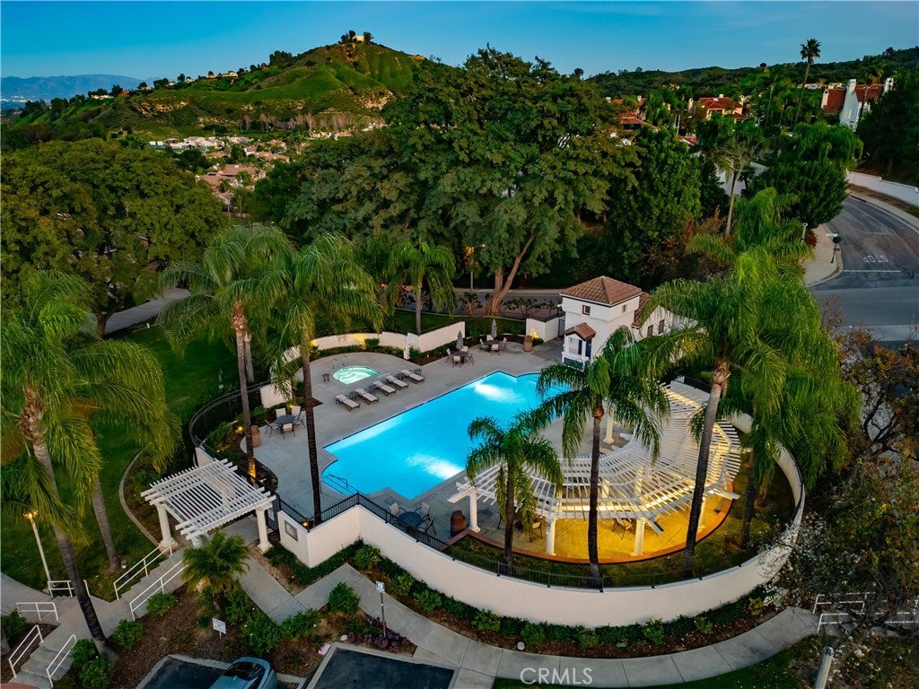 Set within prestigious Guard Gated Calabasas Park Estates, this rare Standard Pacific home blends modern upgrades with timeless design. Beyond two guard-gated entries and manicured grounds, the residence sits on a private hillside lot with fresh landscaping and convenient access to the community’s pool and spa. Inside, a soaring two-story foyer opens to a living room that flows into the dining room. Beyond this welcoming sequence, the family room and kitchen share an open-concept layout. A brick fireplace anchors the family room, while wide windows frame the hillside beyond. The updated kitchen features quartz countertops, an on-trend backsplash, GE stainless appliances, a black quartz sink and an island with extra seating. Pergo floors, new lighting fixtures and fresh paint throughout underscore the home’s move-in ready appeal, and the open sightlines between the family room and kitchen create a natural gathering space. Upstairs, the generous primary suite features a spa-like bath with a soaking tub, dual vanities and a walk-in closet. Three additional bedrooms and an upstairs laundry provide day-to-day convenience. Energy efficiency is enhanced by Tesla solar panels (leased), green certification and a high-efficiency 4-ton, 20-SEER AC unit. Fresh sod and landscaping complement the contemporary interior upgrades. Calabasas Park Estates offers guard-gated peace of mind, a community pool and spa, and beautifully maintained grounds. The property is served by the highly regarded Las Virgenes Unified School District. Close to shopping, dining, and the beaches of Malibu, this home reflects the best of the Southern California lifestyle.
