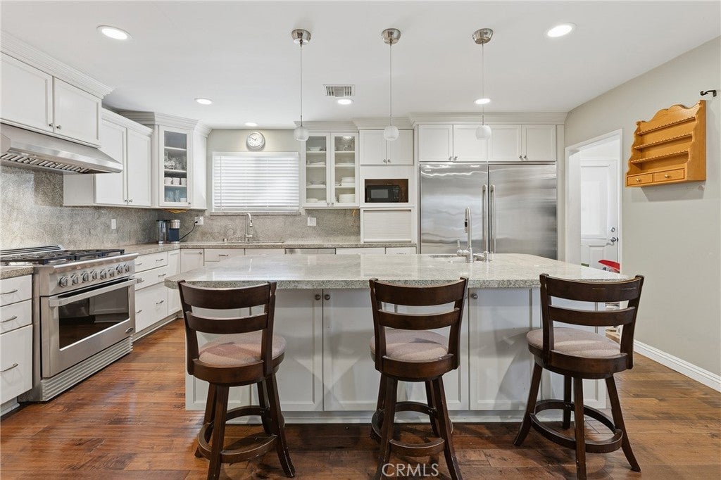 • AppliancesSixBurnerStove, Built-In Range, Double Oven, Dishwasher, Freezer, Gas Cooktop, Refrigerator, Range Hood