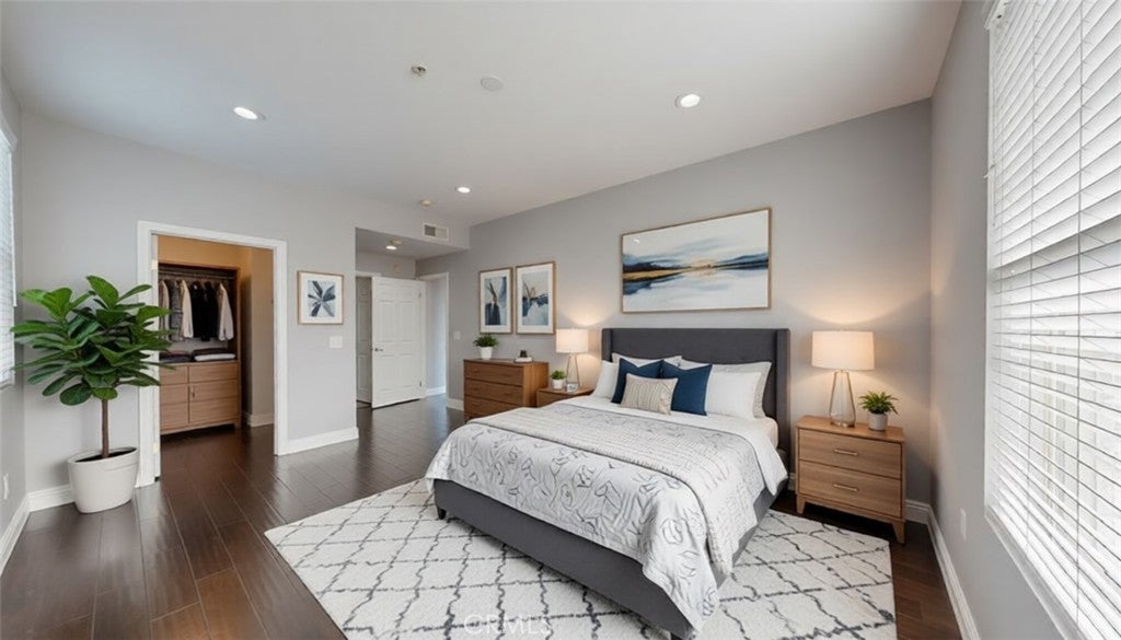 Absolutely gorgeous one level top floor unit with view. Enter into a spacious unit offering an upgraded kitchen w/plenty of counter space, gas stove and breakfast bar opening to the sunny living room with a slider to a fabulous patio with a view of the hills. Also a formal dining room offers a great space for entertaining. 2 primary suites both with en suite bathrooms. One offers a large walkin closet with a sumptuous bathroom w/a separate tub, oversized shower and double vanity. The other primary suite offers a tub/shower combo. In addition there is a conveniently located half bath and an area for side by side washer and dryer. New microwave, new dishwasher, new roof and stucco further highlights this lovely condo. This unit is bright and airy and centrally located with convenient access to restaurants, shopping and transportation. Tandem parking makes for ease. This is for your most discriminating buyers