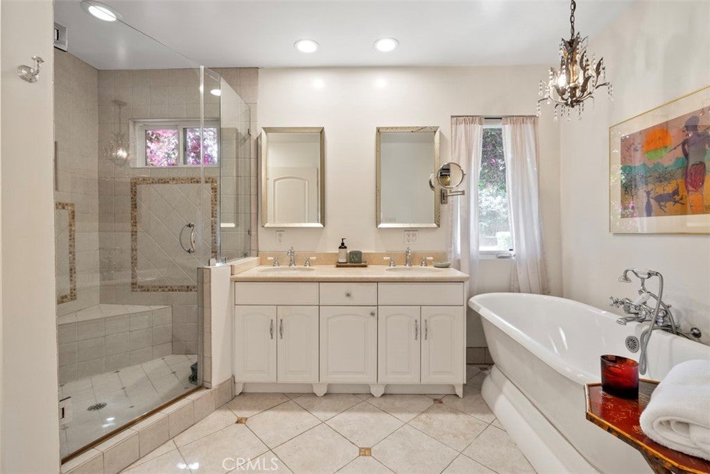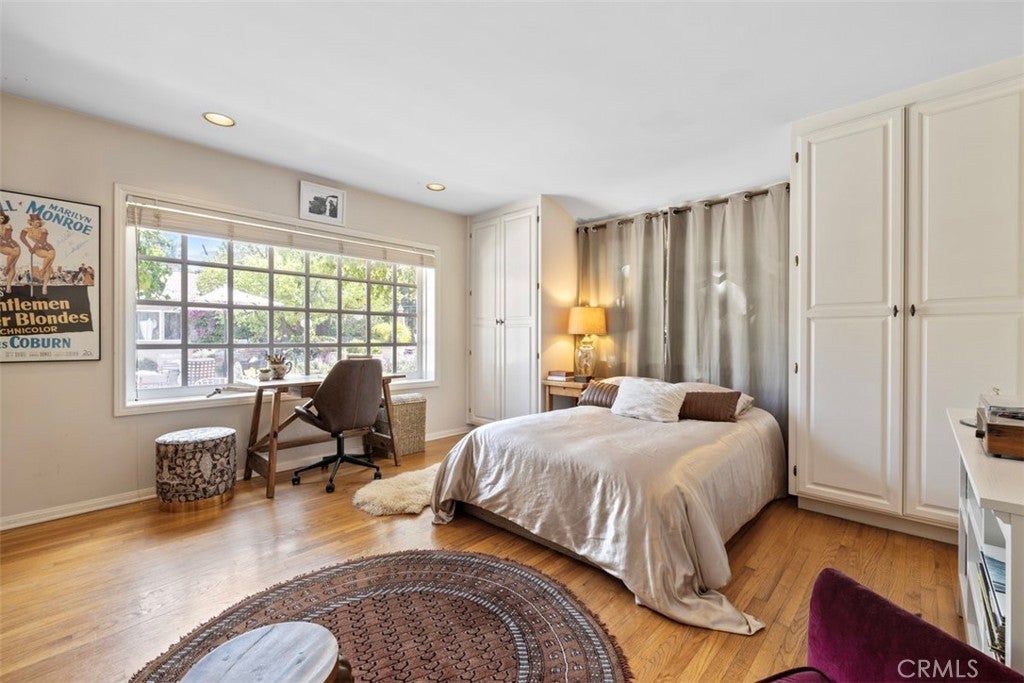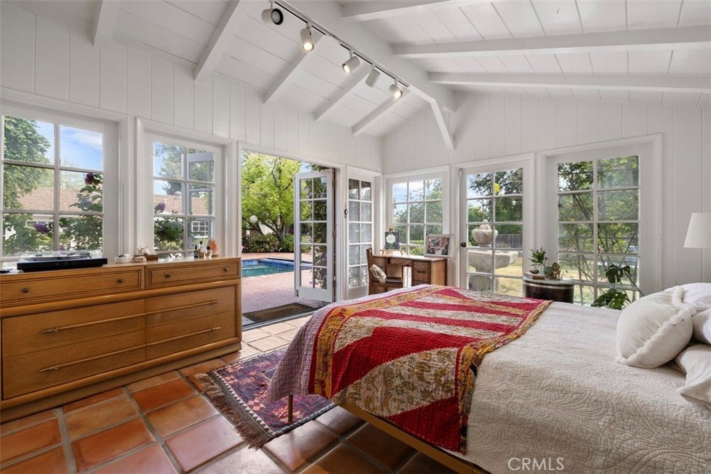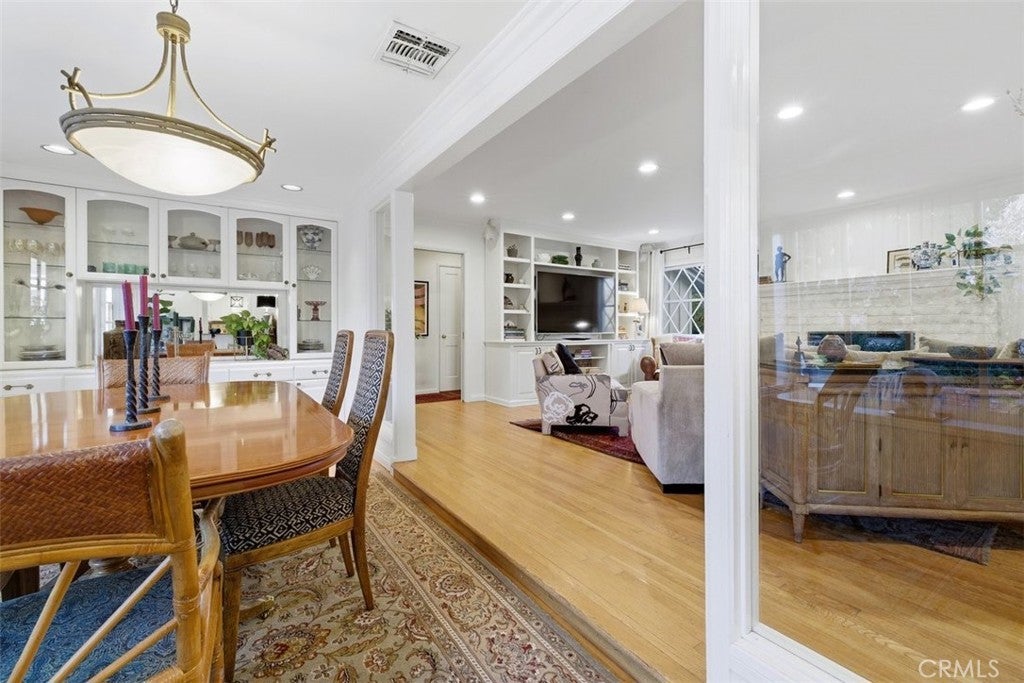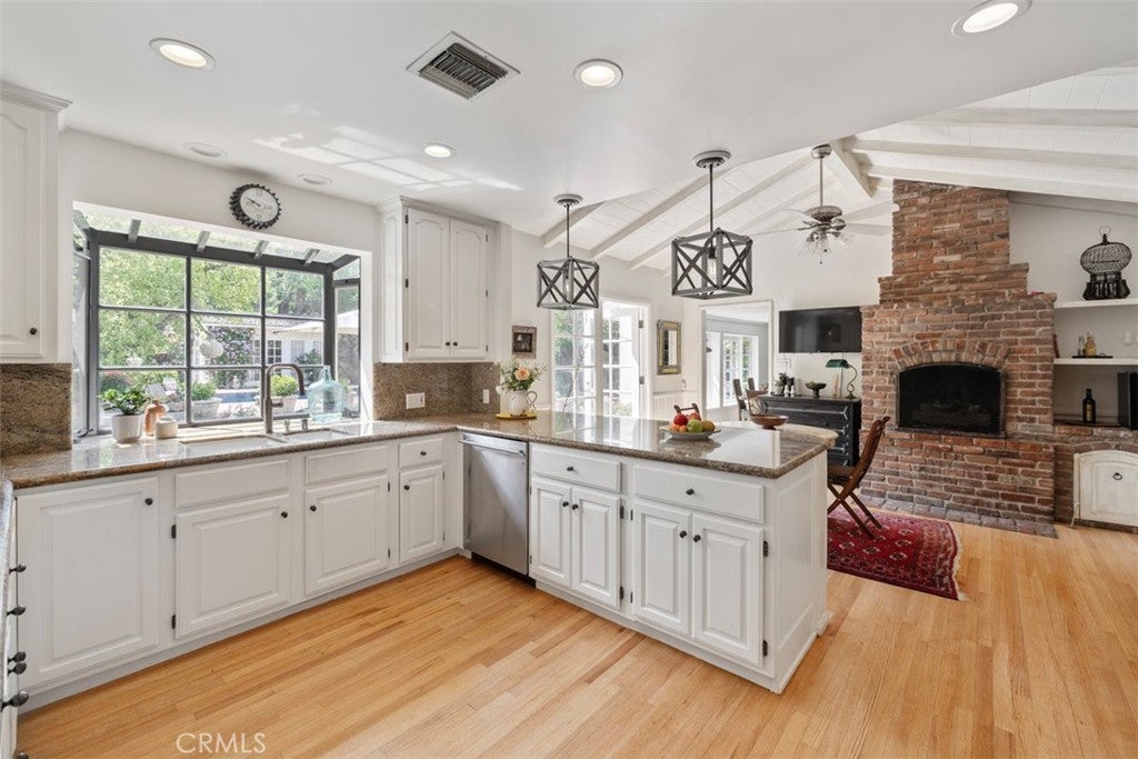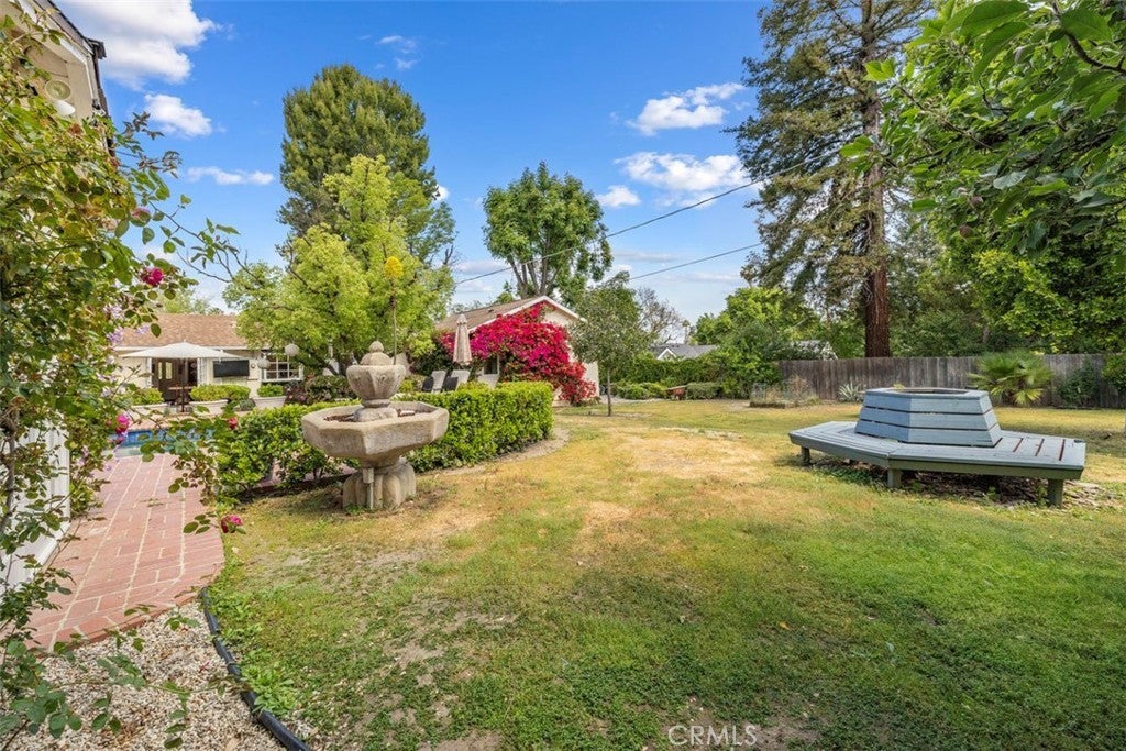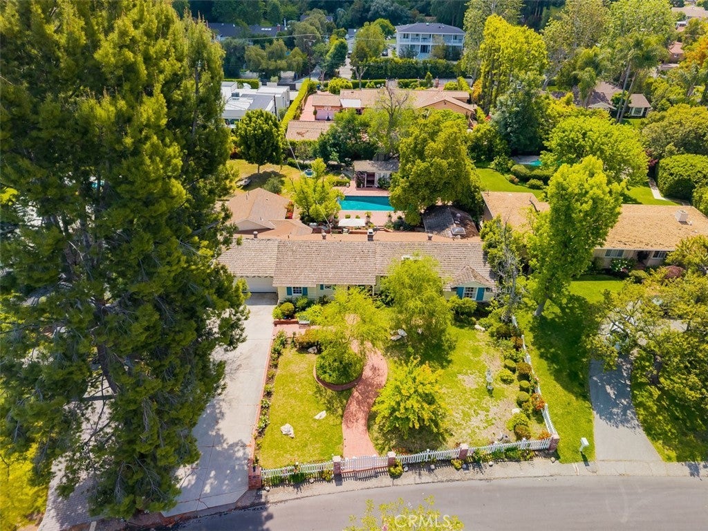 Welcome home to this sprawling gated single-story SOB estate, framed by a charming white picket fence and an expansive, lush front lawn. Designed for both entertaining and everyday living this home offers an open, airy floor plan with generous living spaces, large windows that fill the interiors with natural light, and seamless indoor-outdoor flow. The light-filled kitchen features an inviting eat-in area with its own fireplace and opens effortlessly to the elegant outdoor brick BBQ and dining area—ideal for gatherings large or small. A spacious dining room with walls of windows sits just off the family room, which is highlighted by a classic brick fireplace and serene backyard views. The private primary suite—one of four bedrooms in the main residence—features high ceilings and a remodeled bath and is tucked away at the rear of the home for a peaceful retreat. This exceptional compound embodies the quintessential Southern California indoor-outdoor lifestyle, with a resort-style pool and expansive entertaining areas perfect for warm days and cool evenings. A sun-filled 1/1 detached guest house with French doors and expansive windows provides flexible living space for guests, extended family, or work-from-home needs. Set on a 19,000+ square-foot all-flat lot, the property offers privacy, lush landscaping, and ample room to roam—all in a serene, prestigious neighborhood close to award-winning schools, shopping, dining, and recreation.