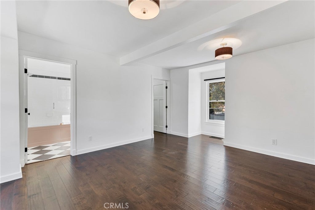 Step into timeless elegance in this renovated 1890s two-story Victorian home, nestled in the heart of historic Beachwood Canyon. This rare 2-bedroom, 2-bath home seamlessly blends classic Hollywood charm with modern comforts. Flooded with natural light, the home offers a spacious living room and formal dining area, highlighted by beautiful hardwood floors throughout. The thoughtfully designed Shaker-style kitchen features ample cabinetry and includes a stove, refrigerator, and dishwasher, making it both stylish and functional. The primary suite upstairs occupies its own private floor, offering a full bathroom, a generous walk-in closet, and ample space for a home office or retreat. The second bedroom downstairs is equally versatile, complete with its own full bathroom and a separate area ideal for a home office or creative space. Step outside to your private brick patio backyard, perfect for morning coffee, outdoor dining, or quiet evenings under the canyon sky. Additional conveniences include a separate laundry area with a washer/dryer, central air conditioning and heating, and a single-car garage. A truly beautiful and unique vintage Beachwood Canyon home, offering character, privacy, and an irreplaceable piece of Hollywood history—ready to be enjoyed today.