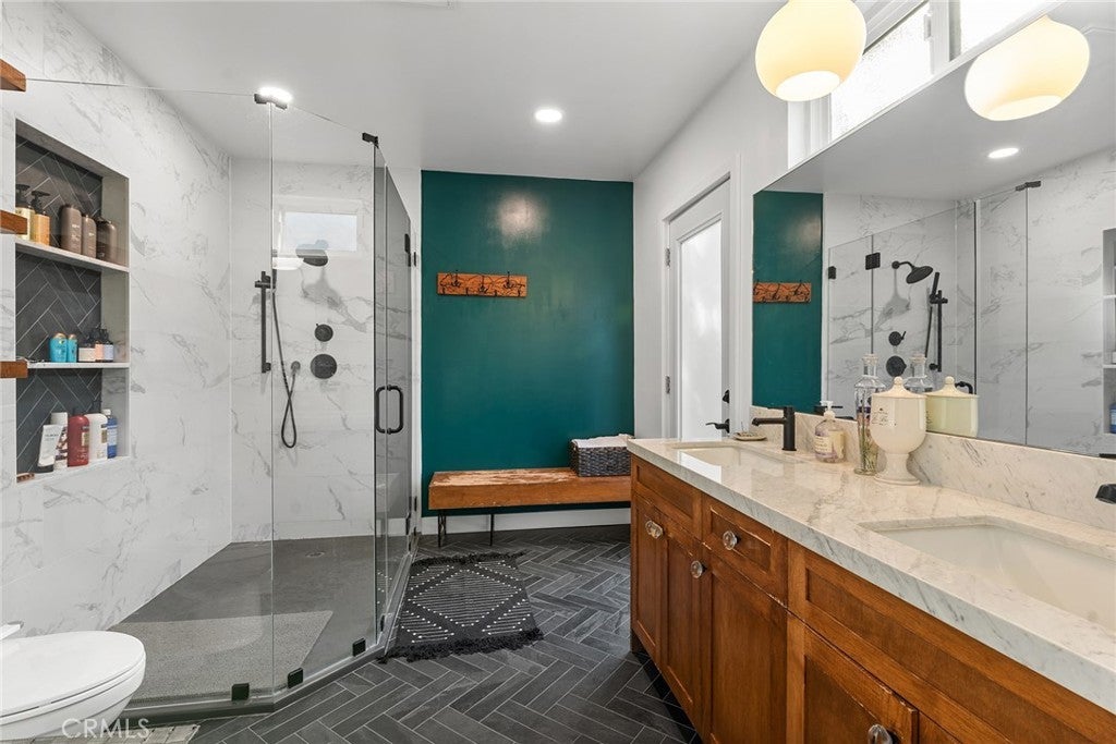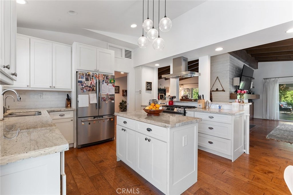 This exquisitely restored mid-century modern masterpiece, crafted by the acclaimed architect Charles Du Bois, epitomizes elegance and sophistication while harmonizing timeless design with impeccable modern enhancements. Perfectly situated on a serene, tree-lined street, this oasis invites you into a world of refined living with its expansive open floor plan, soaring vaulted ceilings, and a striking double-sided fireplace that exudes warmth and grandeur. The chef’s kitchen is a work of art, outfitted with top-of-the-line stainless steel appliances, sleek stone countertops, and custom cabinetry, making it an entertainer’s dream. The spacious dining and living areas, bathed in natural light, seamlessly transition to the meticulously designed backyard, creating an unparalleled indoor-outdoor living experience. The home offers five sumptuous bedrooms, including a versatile 5th bedroom or executive office, and a serene primary suite featuring bespoke closets and a lavish en-suite bath adorned with premium finishes. Step into the private backyard oasis, where drought-tolerant landscaping, a chic firepit, and lush fruit trees provide the perfect backdrop for relaxation or sophisticated entertaining. Thoughtful upgrades include engineered hardwood floors, cutting-edge smart home technology, and energy-efficient enhancements that cater to modern luxury living. Located in the prestigious Calabash, Hale, and El Camino school district and just minutes from the scenic Malibu coastline, this exceptional property is a short stroll to high-end boutiques, gourmet dining, and the iconic Old Town Calabasas Farmer’s Market. The property offers an unparalleled lifestyle of comfort, luxury, and convenience. Fully Furnished.
