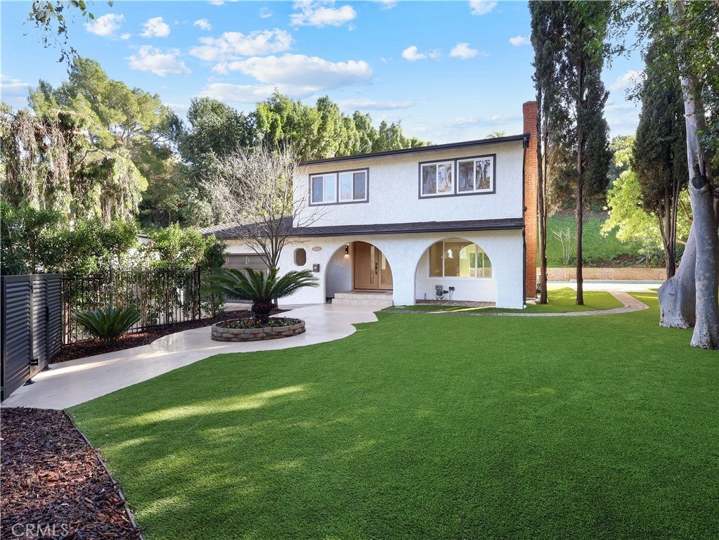 Tucked away on a quiet cul-de-sac South of Ventura Blvd in the Dona’s of Studio City, this gated and fully remodeled 4-bed, 3-bath, 2,928 sq ft home with a sparkling pool sits on a 19,715 sq ft lot, blending modern style, privacy and an indoor–outdoor lifestyle. Mature landscaping and a sweeping lawn enhance the estate feel, while wide-open living spaces and large sliding doors create a natural connection to the outdoors. The resort-style backyard features a pool, generous patio space and lush greenery - ideal for entertaining or unwinding in total privacy. Located north of Mulholland, the home is just moments from Ventura Blvd’s dining and shopping, with quick access to Hollywood, the Sunset Strip, West Hollywood and nearby Fryman Canyon hiking trails. Striking entry with a custom wood door opens to a spacious living room with fireplace, flowing into an expansive great room adjacent to the kitchen and large dining area, featuring double sliding doors overlooking the backyard and pool. The brand-new kitchen features a waterfall-edge island with quartz countertops, warm natural wood cabinetry and sleek black hardware. High-end stainless-steel appliances, including a professional-style gas range with custom hood, are complemented by a full-height quartz backsplash for a clean, contemporary finish. The primary suite is a true retreat, featuring a spa-inspired ensuite bath with a double vanity, custom wood cabinetry and an oversized walk-in glass shower with matte black fixtures. A custom walk-in closet with built-in shelving and drawers completes the suite, offering exceptional storage. In addition to the four beds and two baths upstairs, the main level offers an additional bathroom with shower, a second dining room ideal for a home office, a dedicated laundry room and direct access to the attached two-car garage. Additional upgrades include an updated HVAC system, fresh interior and exterior paint, double-pane windows, doors and a private driveway for extra parking. Located within the Carpenter Community Charter School district (tenant to verify). Experience the best of Studio City living!