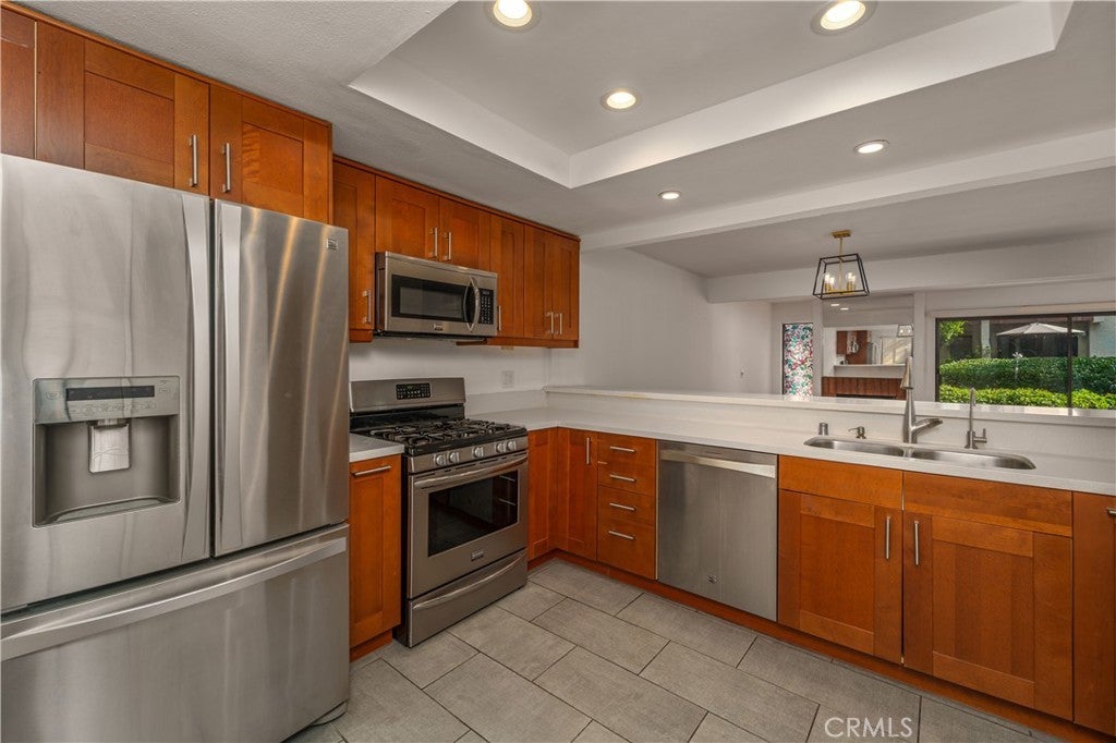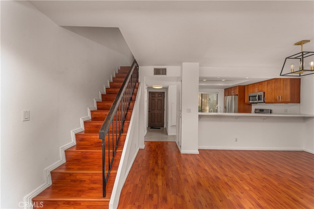 Welcome to this charming 2-bedroom, 2.5-bath, two-story townhouse, located in the resort-style community of Warner Woodlands II in prime Woodland Hills. The entry level features tile flooring, a clean open feel, and a modern kitchen with sleek cabinetry, stainless steel appliances, recessed lighting, and an inviting flow into the main living space. The light-filled living area showcases warm wood flooring, a gas fireplace, and opens to a private patio, perfect for al-fresco dining and enjoying Southern California’s year-round weather. Upstairs, the primary bedroom offers excellent closet space and a private balcony overlooking the beautifully maintained community. The secondary bedroom is generously sized and versatile for guests or a home office. A spacious upstairs hallway provides flexible use, ideal for a desk, reading nook, or additional storage. Conveniently located between the bedrooms is an in-unit stacked laundry area, providing easy access and everyday functionality. Additional features include a private two-car garage. The community offers desirable amenities, including a pool and spa, tennis courts, lush landscaping, walking paths, and peaceful meandering streams with fish and visiting ducks, creating a serene, park-like setting. Ideally located with easy access to the 101 Freeway and just minutes from Westfield Topanga, The Village, Costco, and a wide variety of restaurants, cafés, and entertainment. A rare opportunity to lease a townhouse in one of Woodland Hills’ most desirable communities.